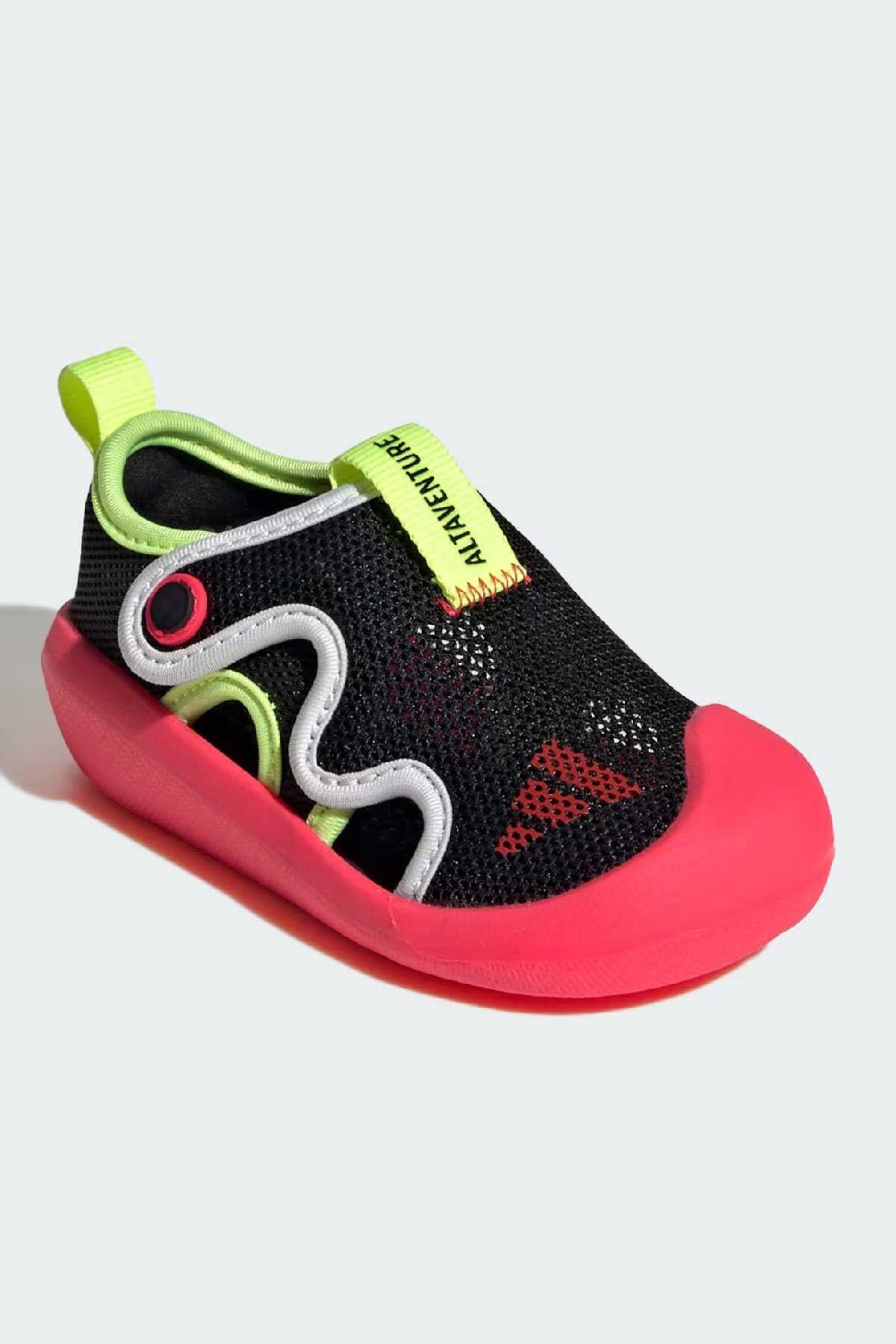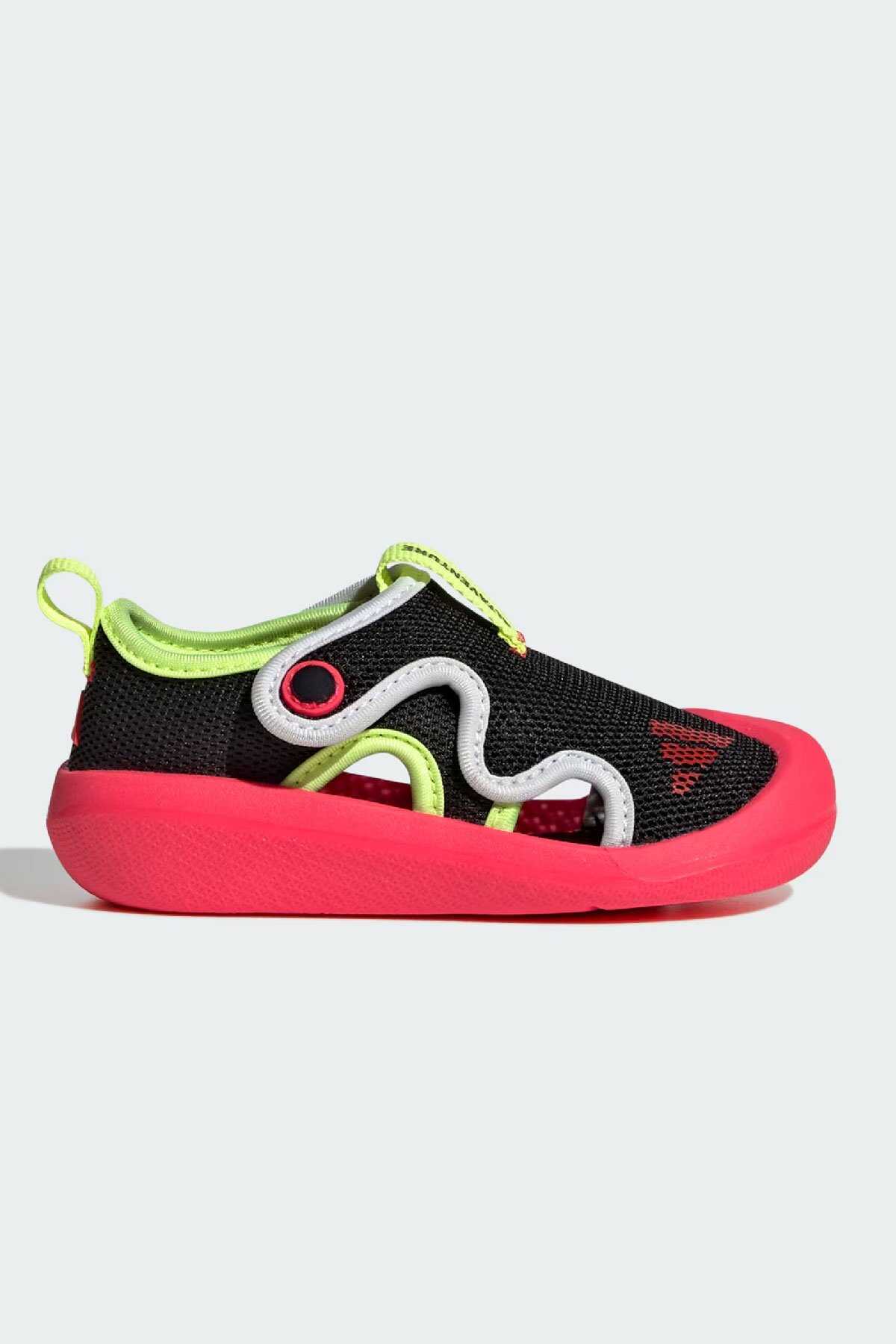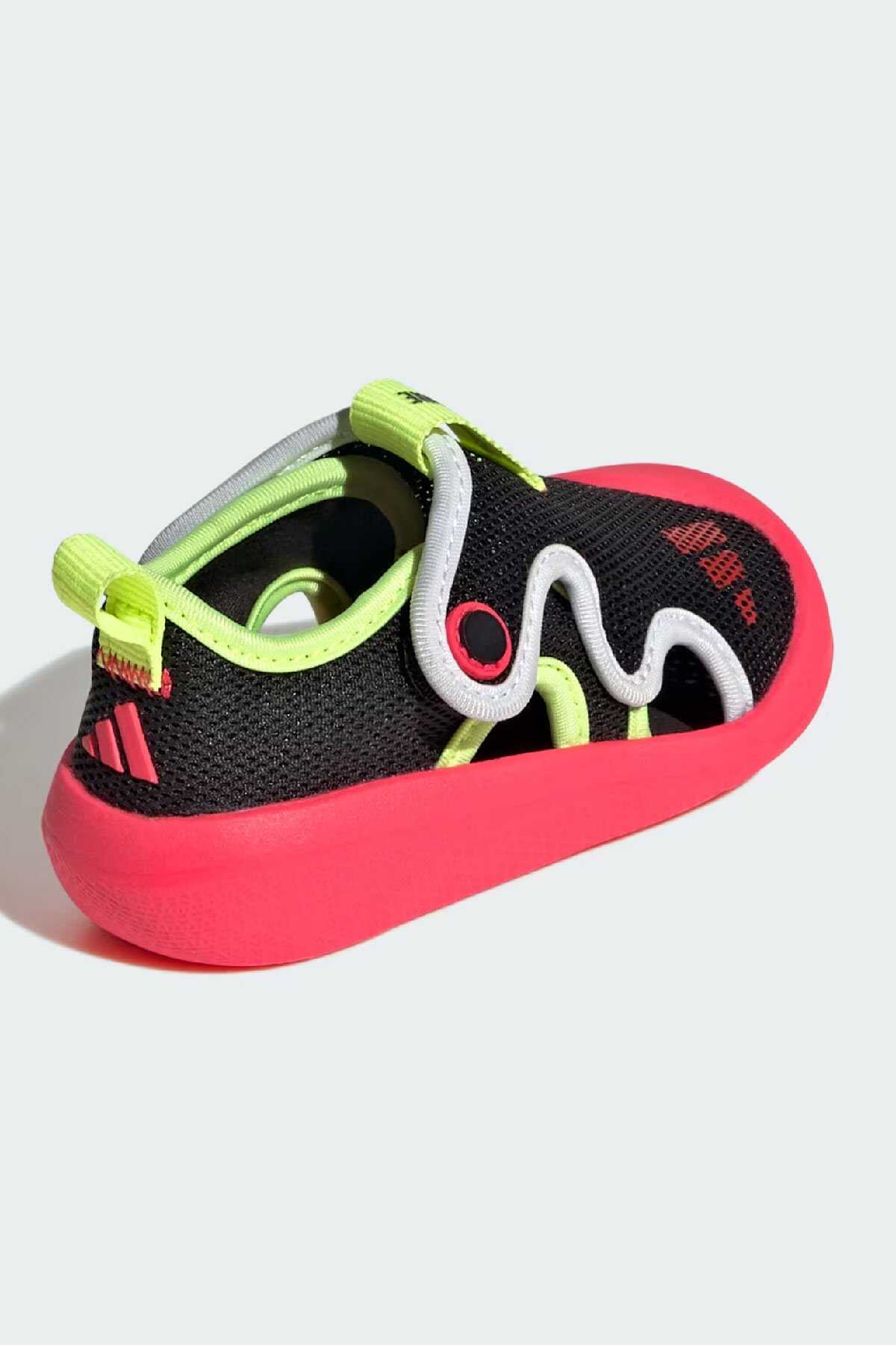 Keşfetmeyi seven minikler için tasarlanan bu adidas bebek ayakkabısı parkta oyun buluşmalarında veya evde vakit geçirirken giymek için idealdir.-Çabuk kuruyan file üst yüzeyi ile ayakları serin ve konforlu tutan model cırt cırtlı bantları ile kolayca giydirip çıkarılabilir. EVA iç tabanı ile her adımda yastıklama sunar.-Normal kalıp-Cırt cırtlı bant-File saya-Hızlı kuruma özelliği-Kumaş astar-EVA yastıklama-Koruyucu burun kısmına sahip kauçuk taban yapısı-Ürün rengi: Core Black Lucid Red Lucid Lemon-Ürün kodu: JS2549-Menşei: Vietnam