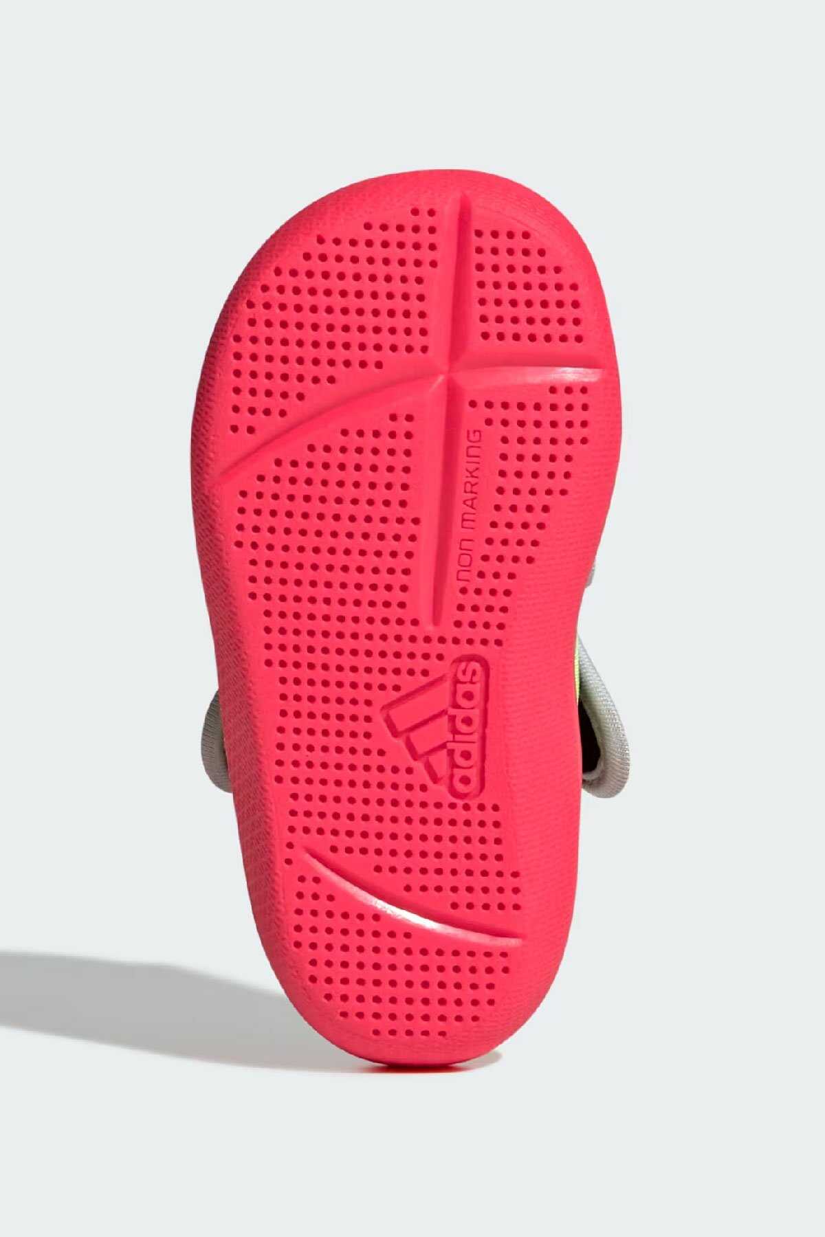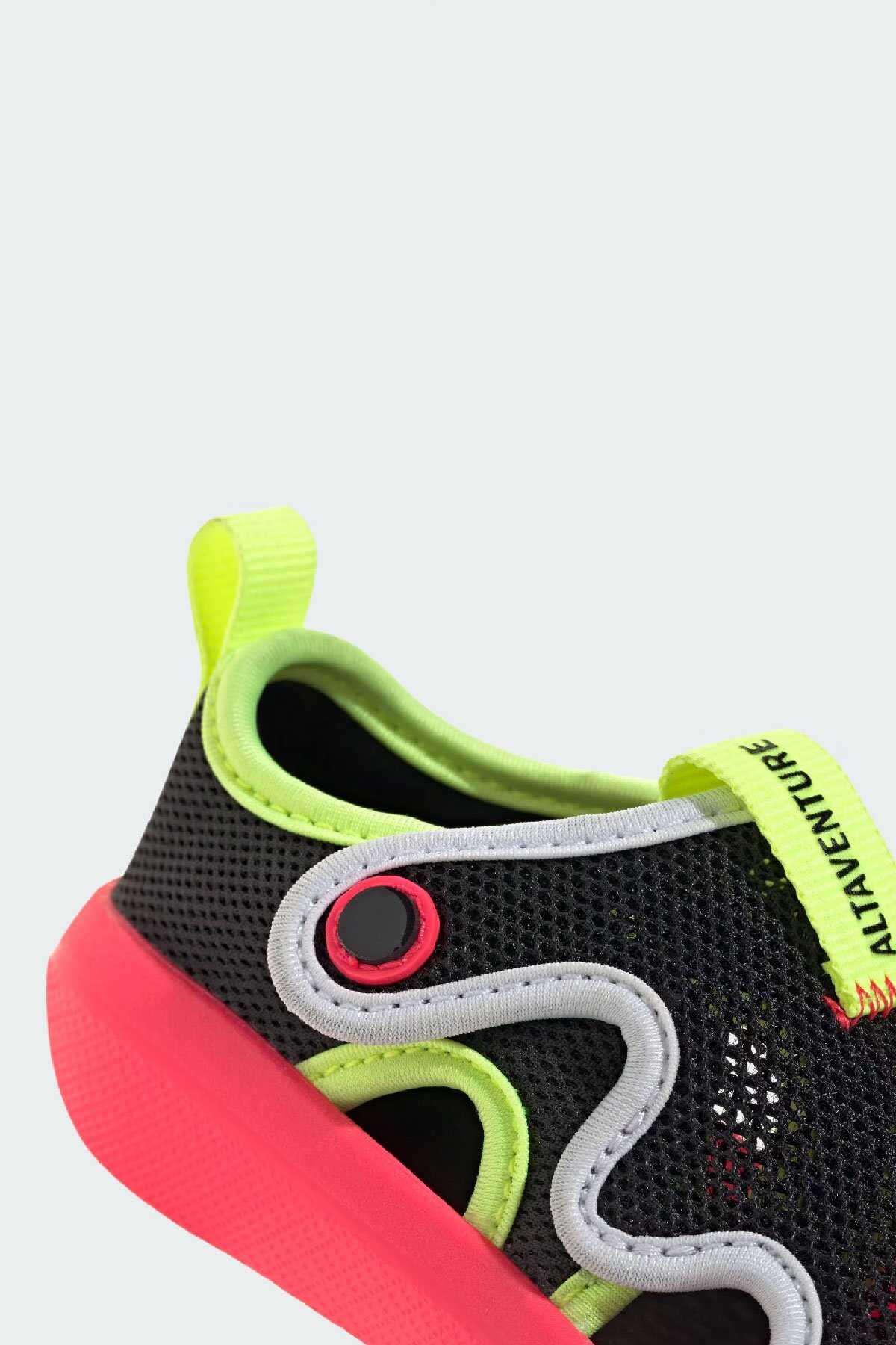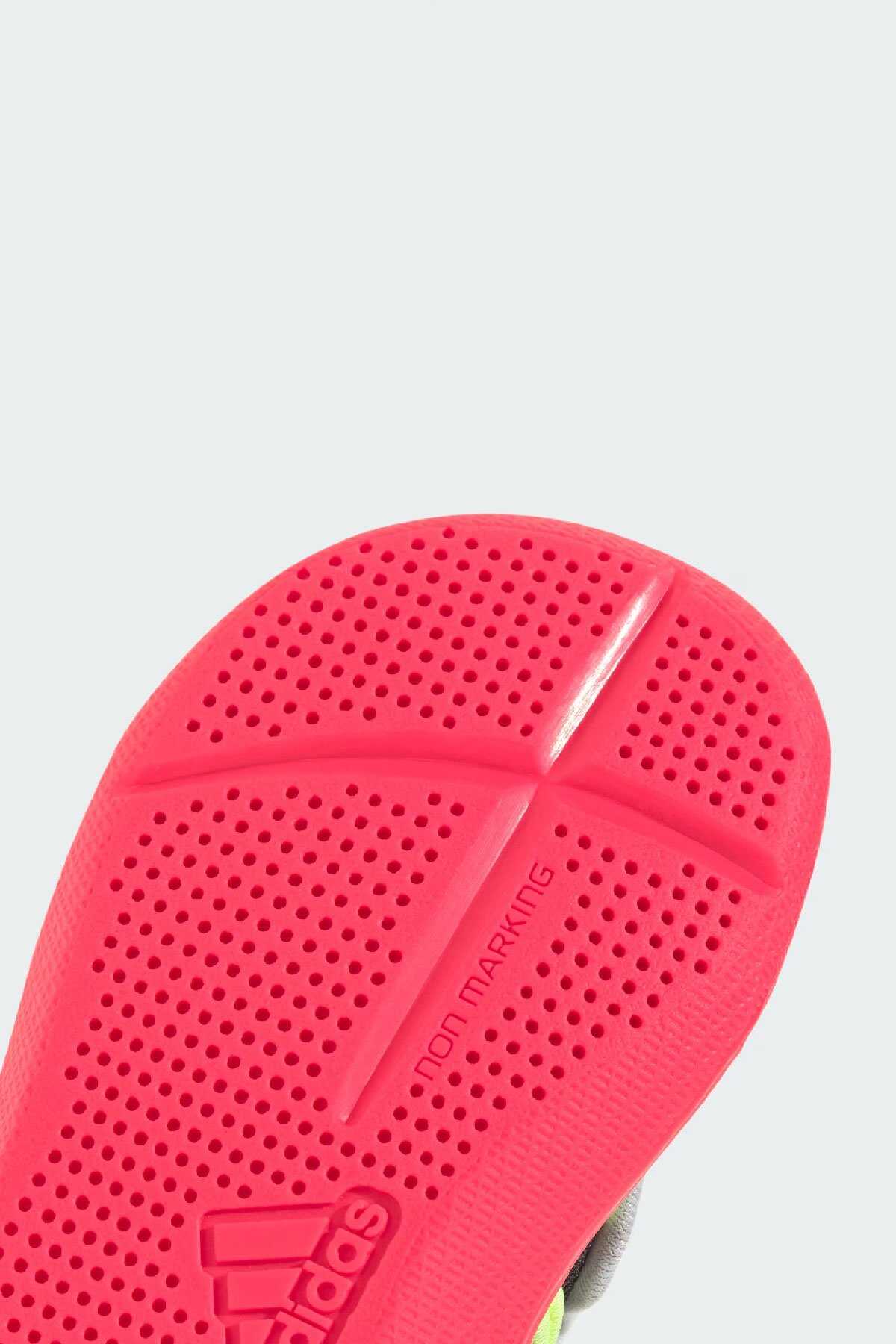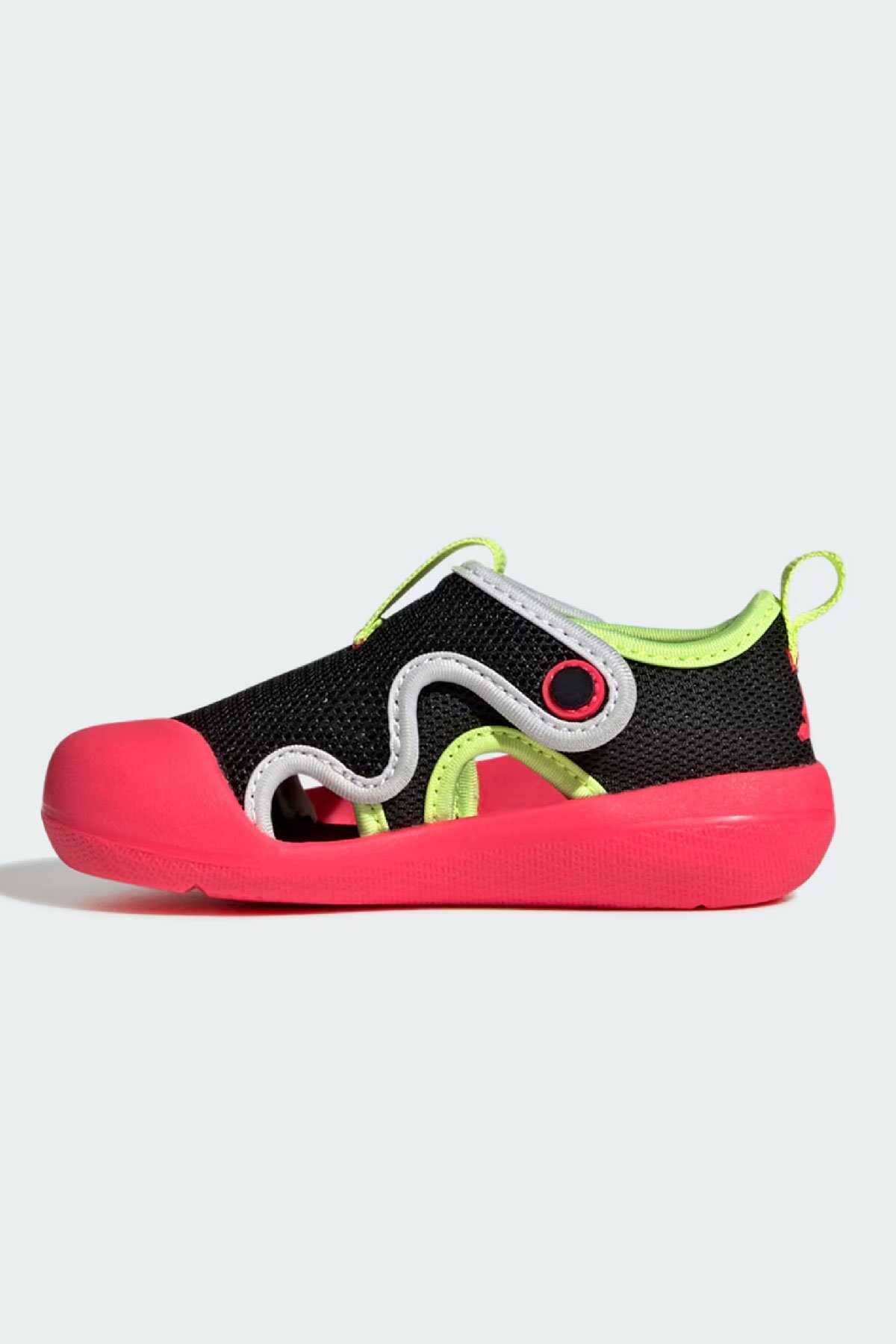 Keşfetmeyi seven minikler için tasarlanan bu adidas bebek ayakkabısı parkta oyun buluşmalarında veya evde vakit geçirirken giymek için idealdir.-Çabuk kuruyan file üst yüzeyi ile ayakları serin ve konforlu tutan model cırt cırtlı bantları ile kolayca giydirip çıkarılabilir. EVA iç tabanı ile her adımda yastıklama sunar.-Normal kalıp-Cırt cırtlı bant-File saya-Hızlı kuruma özelliği-Kumaş astar-EVA yastıklama-Koruyucu burun kısmına sahip kauçuk taban yapısı-Ürün rengi: Core Black Lucid Red Lucid Lemon-Ürün kodu: JS2549-Menşei: Vietnam