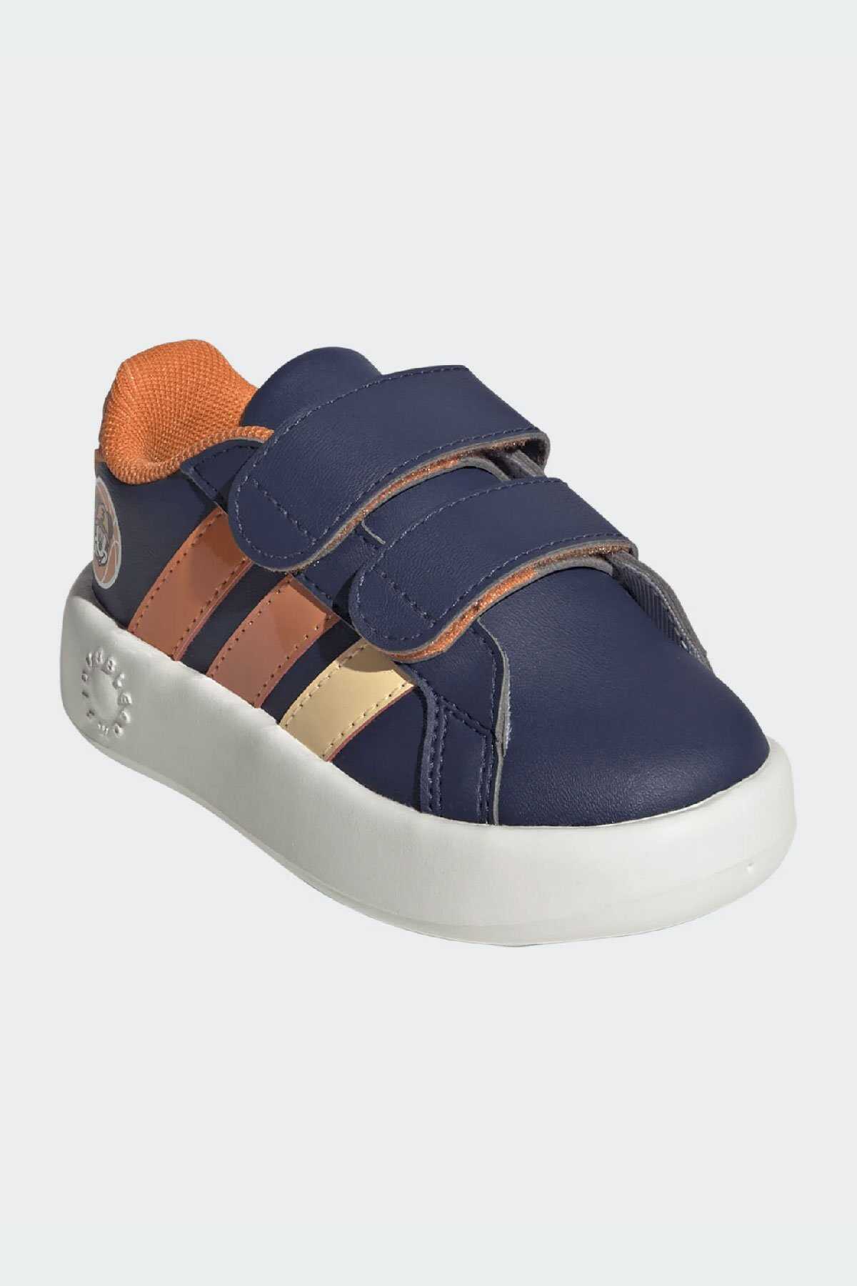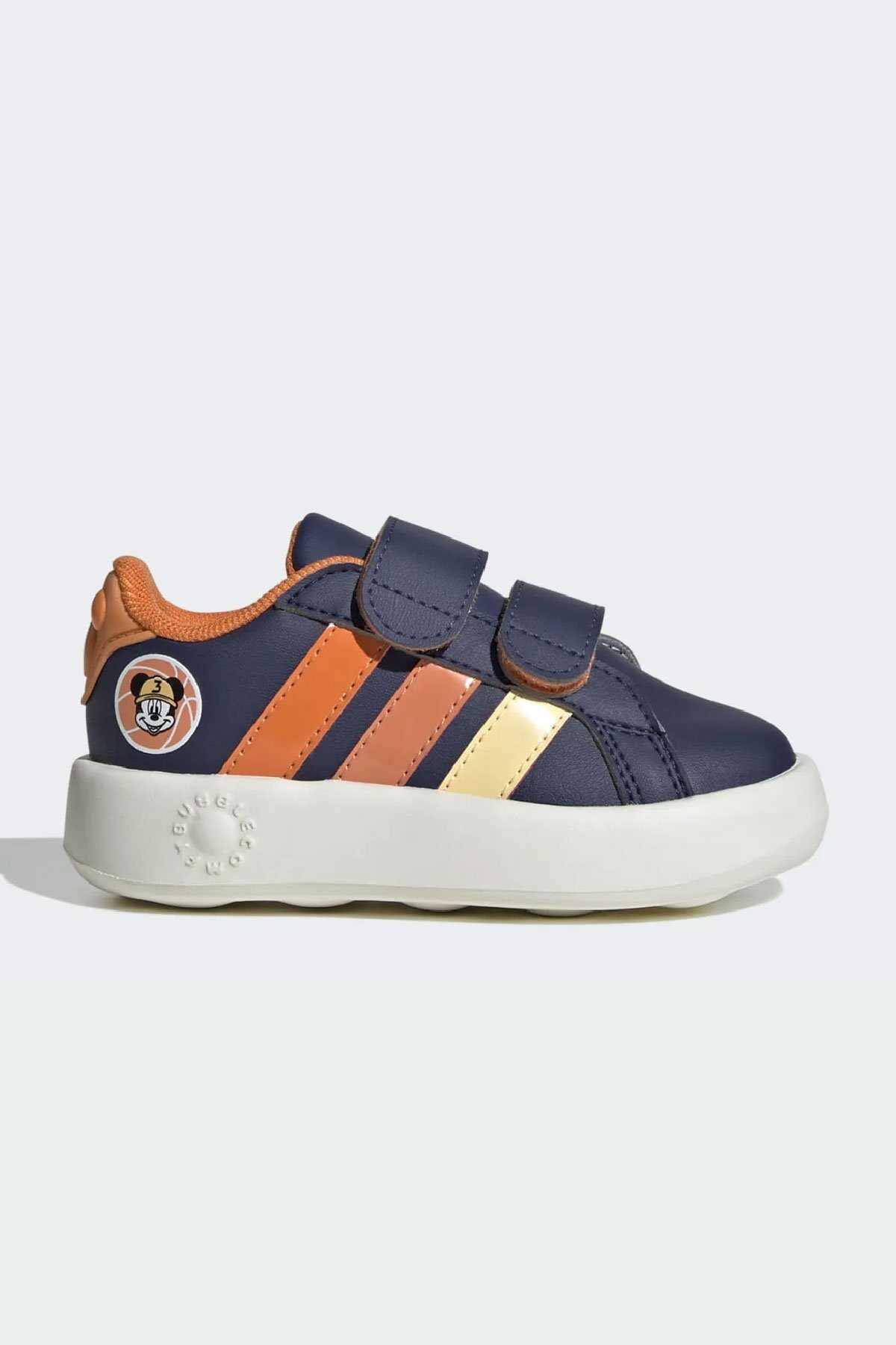 Minikler ilk adımlarını Disney büyüsü ile atsın. -Bu adidas bebek ayakkabısı topuk kısmındaki 3 boyutlu Mickey Mouse detayları ve yan kısmındaki eğlenceli Mickey grafikleri ile çocukların hayal gücünü harekete geçirir. -Cırt cırtlı bantları sayesinde kolayca giyilip çıkarılabilen model sürekli meşgul küçük ayaklar için mükemmeldir.-Yumuşak EVA taban ve kumaş astar minik ayakları gün boyu konforlu tutar.-Normal kalıp-Cırt cırtlı bant-Sentetik üst yüzey-Kumaş astar-Tek parça EVA birleşik taban-@Disney-Ürün Suni deri içeriklidir.-Ürün rengi: Dark Blue Ice Tangerine Pure Orange-Ürün kodu: JS2344-Menşei: Endonezya