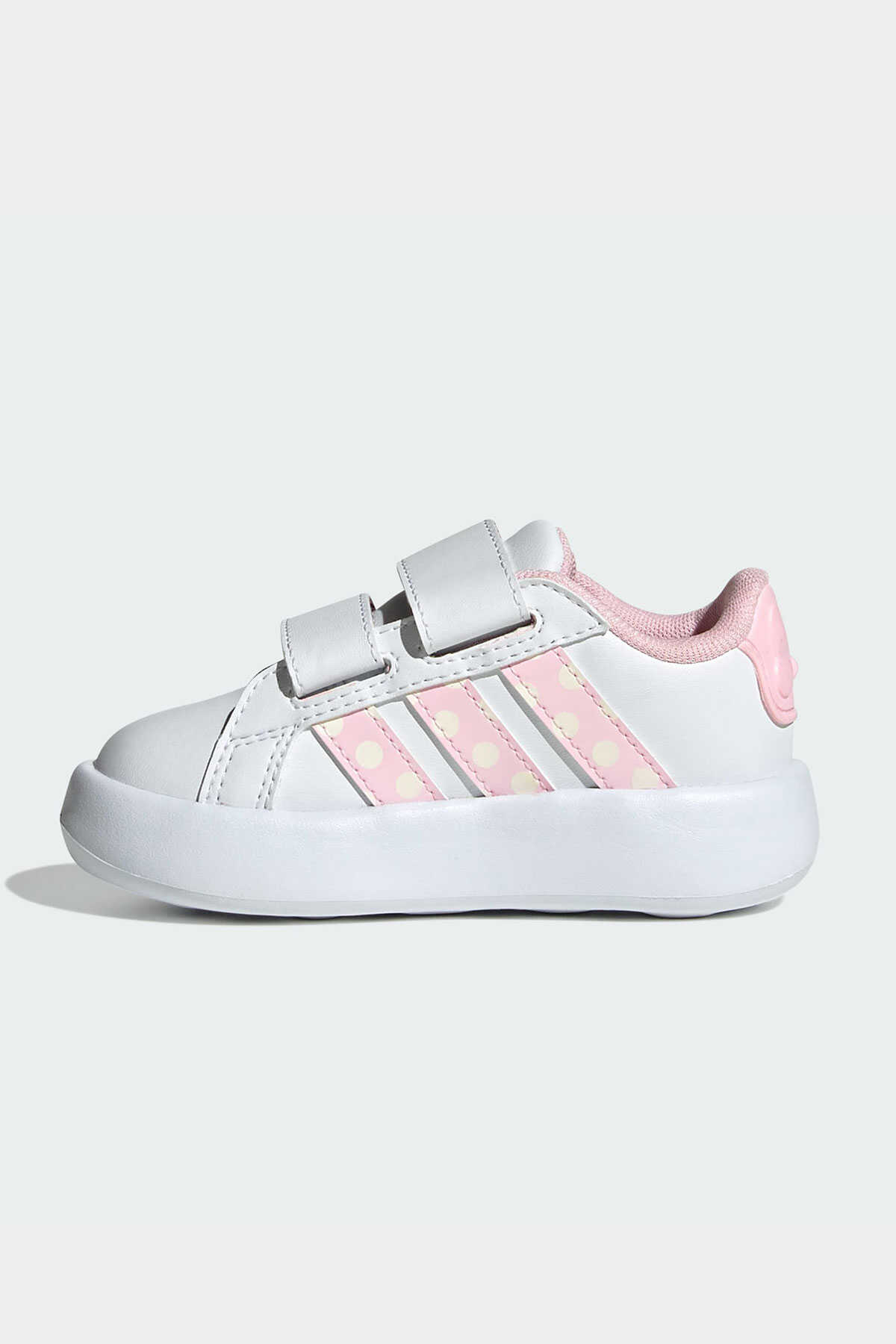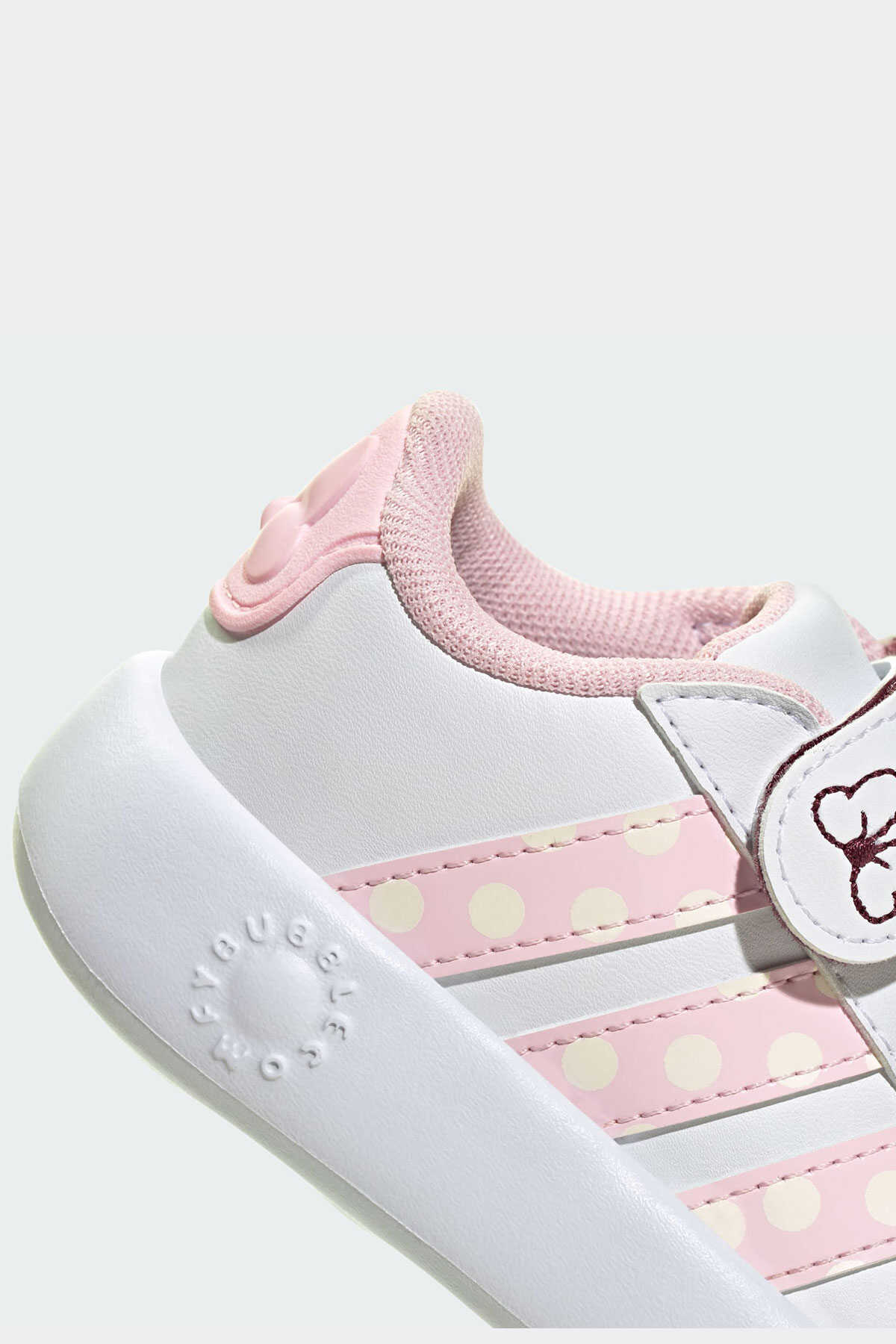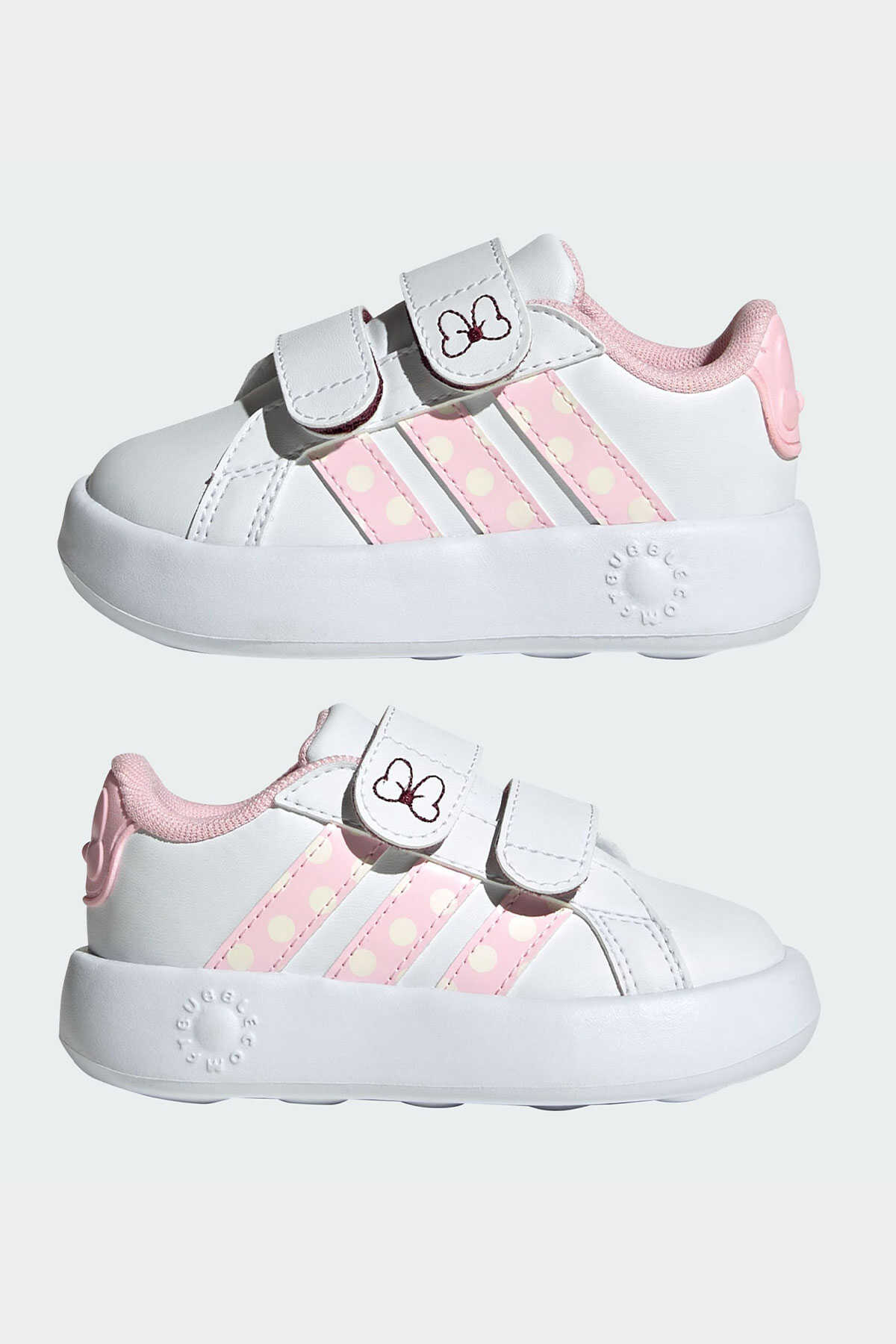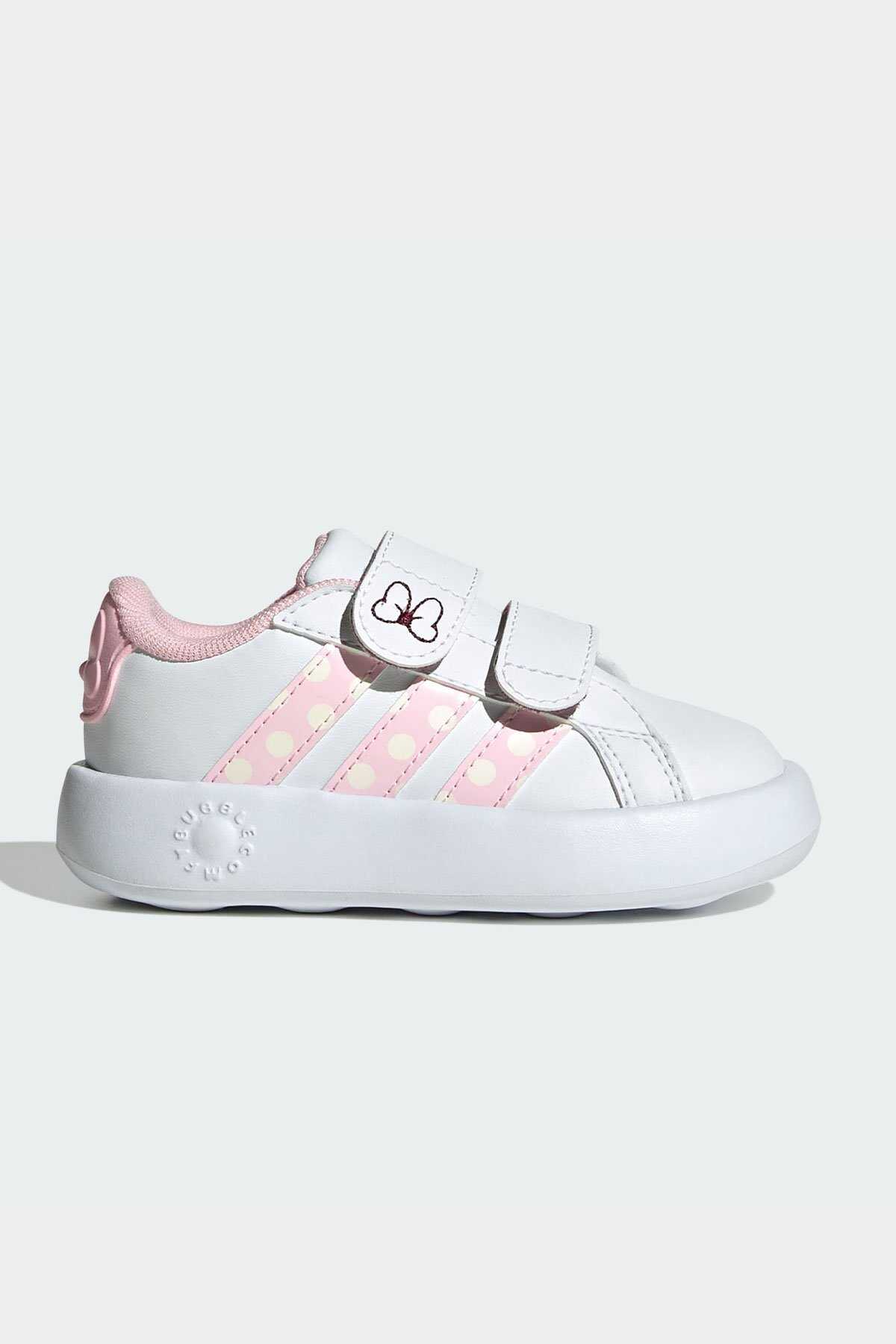 Topuğunda 3 boyutlu Disney Minnie Mouse fiyonku bulunan bu bebek ayakkabıları her kıyafete eğlenceli bir hava katıyor. - Pürüzsüz sentetik üst kısım hareket halindeki minikler için ekstra dayanıklı ve cırt cırtlı bantlar ayakkabıların kolayca giyilip çıkarılmasını sağlıyor. - Yumuşak astar ve dış taban minik ayaklar için her açıdan konfor sağlıyor. - Normal kesim - Cırt cırtlı kayış kapatma - Sentetik üst kısım - Tekstil astarı - Tek parça EVA ünite tabanı - @Disney - Ürün rengi: Bulut Beyazı Şeffaf Pembe Tebeşir Beyazı - Sentetik ve Tekstil içeriklidir. - Ürün kodu: JR8130 - Menşei: Endonezya
