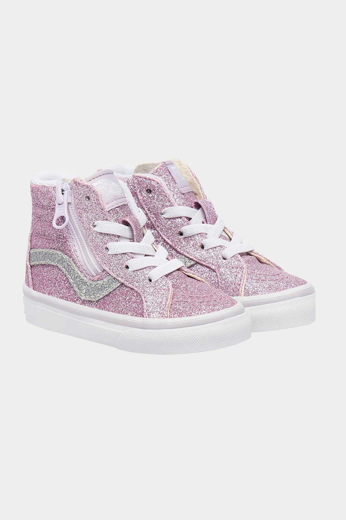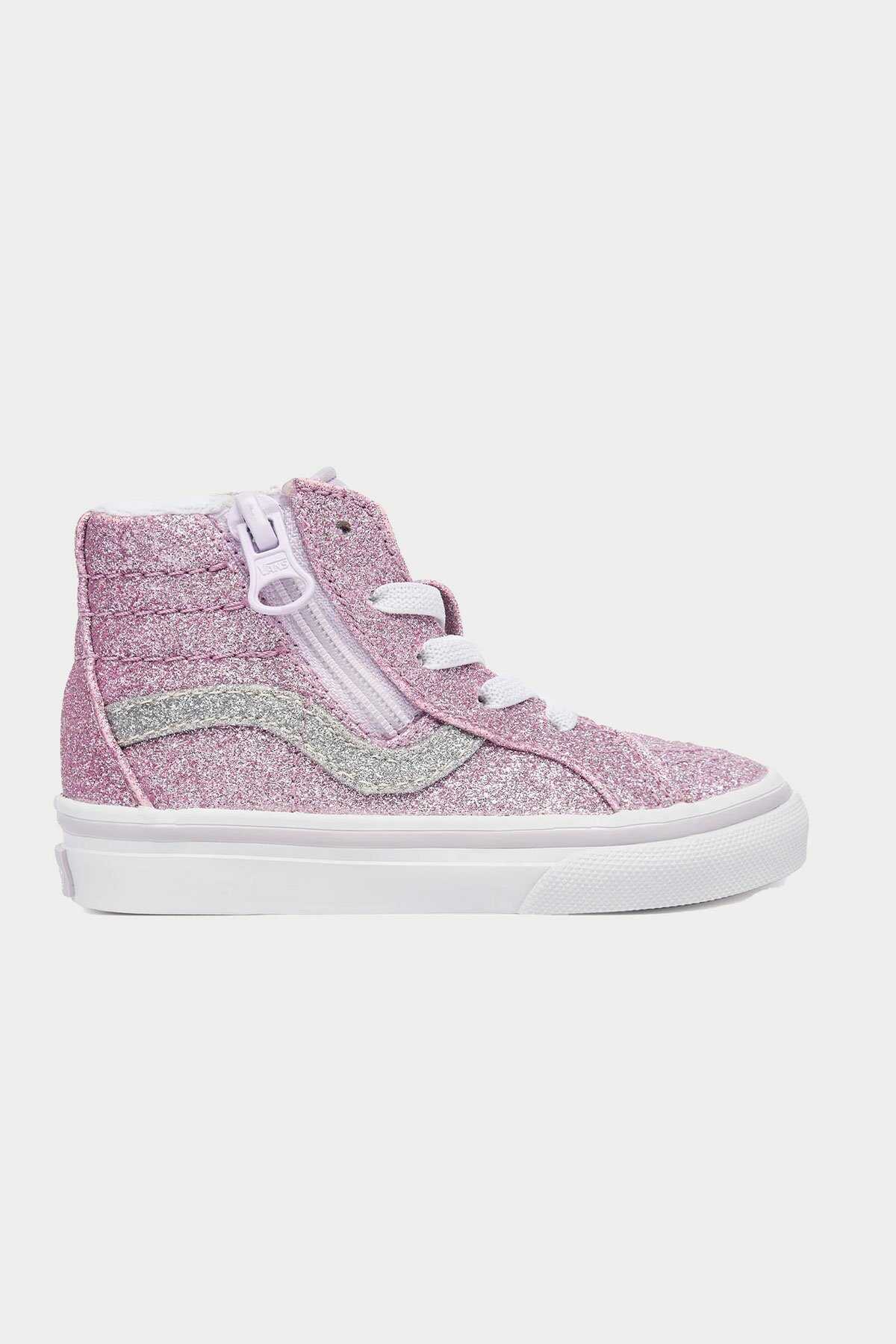 Marka: Vans -Fermuar ve Bağcıklı Kapama - Pembe ve Simli Tasarım - Cinsiyet: Kız Çocuk - Ürün Kodu: VN0007Q3EMY1 - Ürün Sentetik içeriklidir. - Menşei: Filipinler