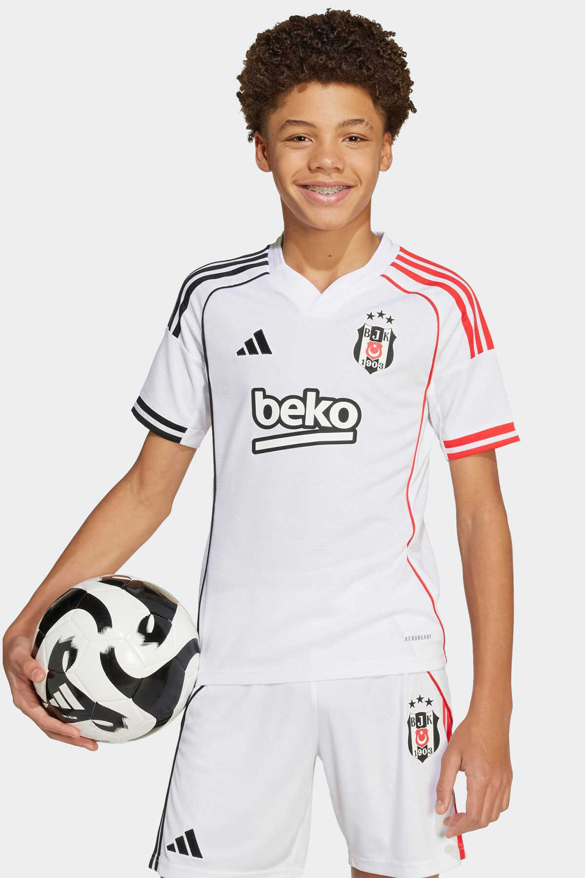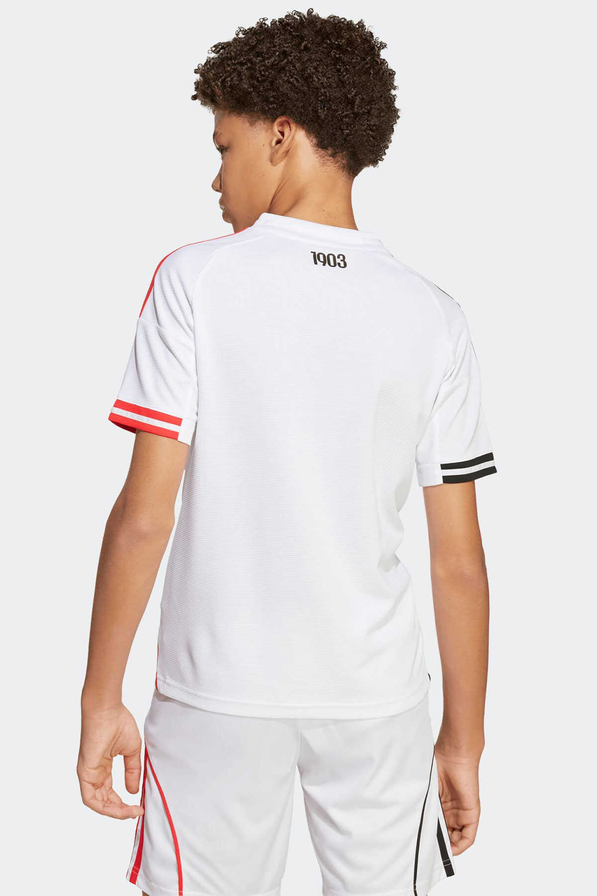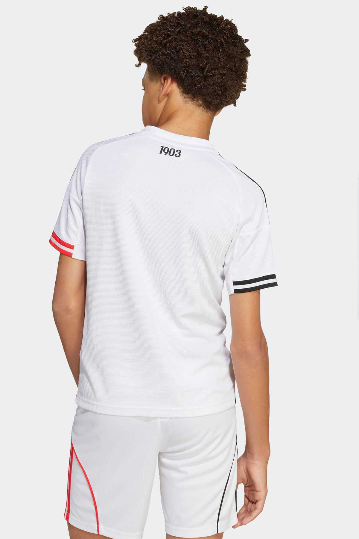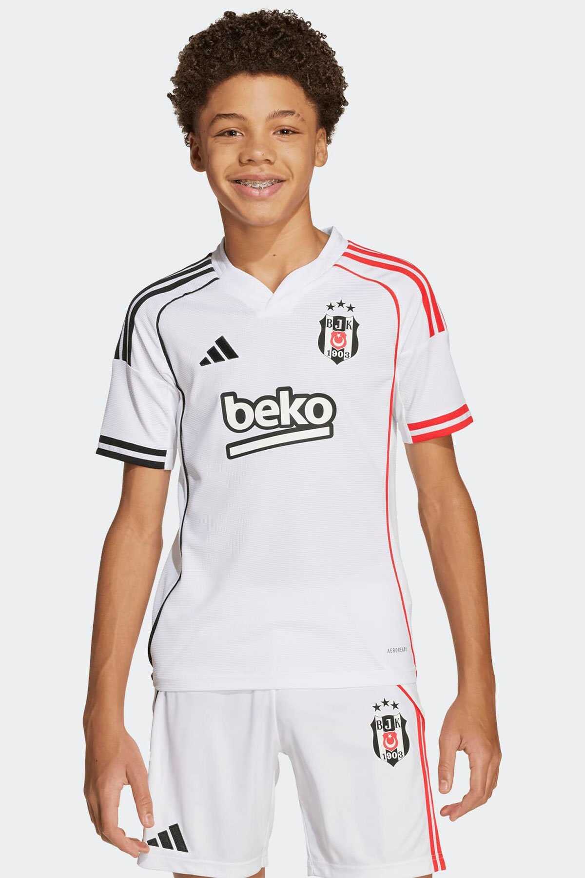 Çocuklara özel bu adidas futbol forması Beşiktaşın beyaz iç saha renkleri üzerinde asimetrik kırmızı ve siyah 3 bandı fitil detayı ve manşet detayları ile göz alıcı bir görünüm sunar. - Nemi uzaklaştıran AEROREADY teknolojisi takımını desteklerken konforlu kalmanı sağlar. - Yaka arkasındaki "1903" yazısı ve göğüs kısmındaki TPU arma takım gururunu yansıtır. - Normal kesim - Henley yaka - %100 polyester (geri dönüştürülmüş) - AEROREADY - Beşiktaş JK TPU arma - Ürün rengi: White - Ürün kodu: JN9936 - Menşei: Türkiye