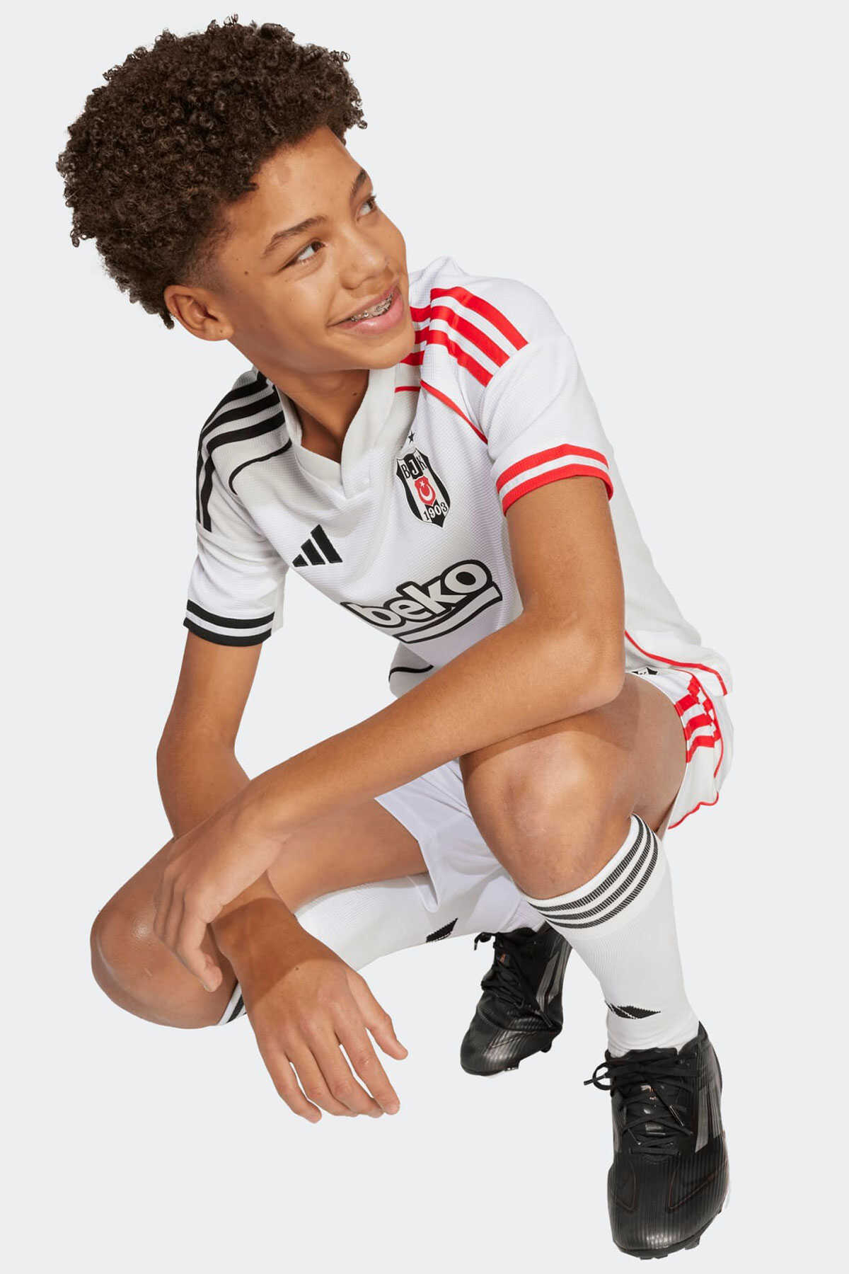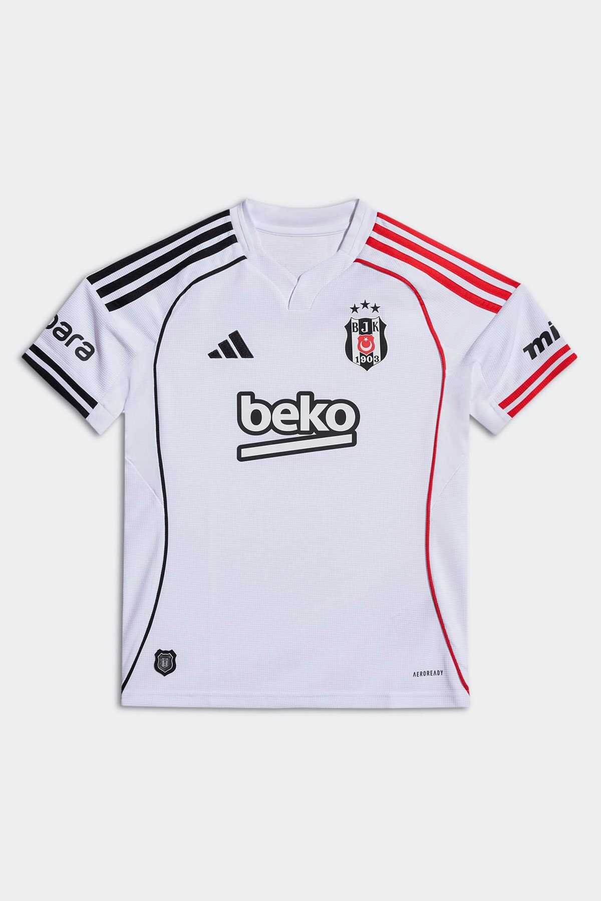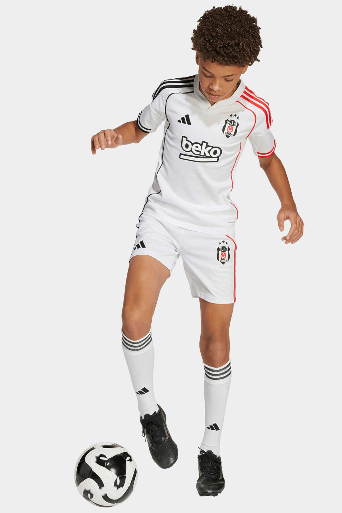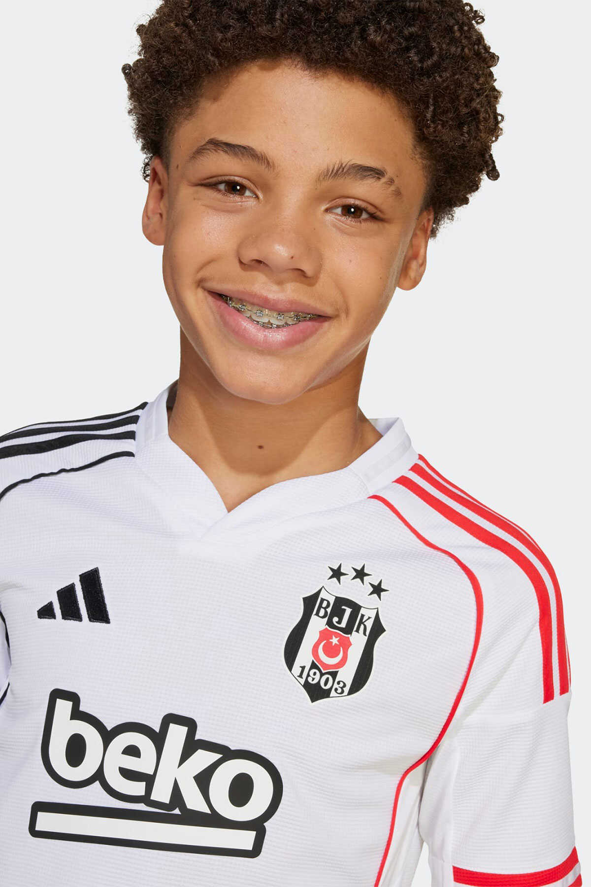 Çocuklara özel bu adidas futbol forması Beşiktaşın beyaz iç saha renkleri üzerinde asimetrik kırmızı ve siyah 3 bandı fitil detayı ve manşet detayları ile göz alıcı bir görünüm sunar. - Nemi uzaklaştıran AEROREADY teknolojisi takımını desteklerken konforlu kalmanı sağlar. - Yaka arkasındaki "1903" yazısı ve göğüs kısmındaki TPU arma takım gururunu yansıtır. - Normal kesim - Henley yaka - %100 polyester (geri dönüştürülmüş) - AEROREADY - Beşiktaş JK TPU arma - Ürün rengi: White - Ürün kodu: JN9936 - Menşei: Türkiye