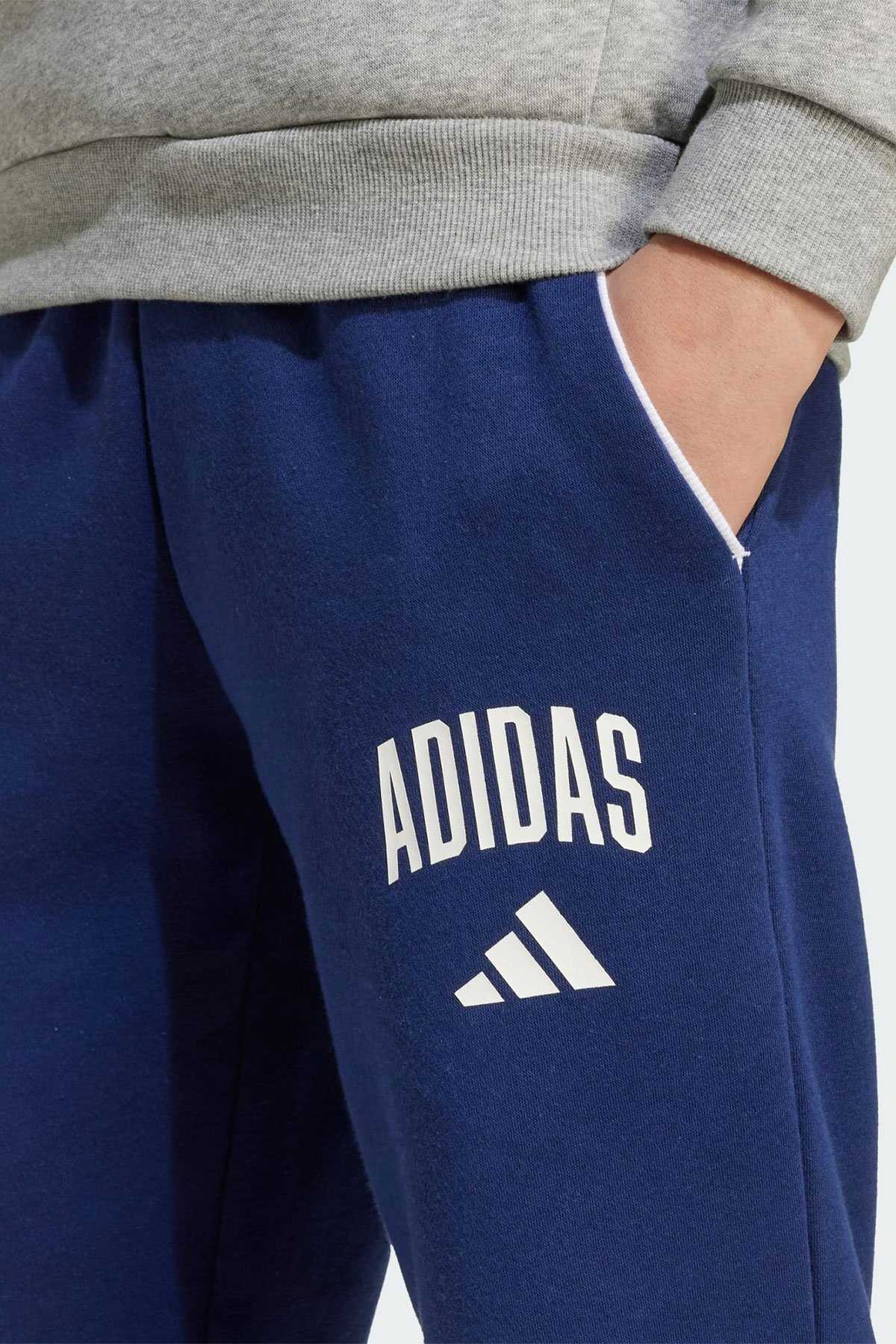 Çocuklara özel bu adidas eşofman altı spor kültürüyle bağ kurmak ve konforlu kalmak için ideal bir seçim. - Kolej stili logo adidas’ın sportif mirasını kutlar. - Yumuşak polar yapı yan cepler ve zıt renkte fitil detayı ile tasarlanan model hem dinlenirken hem dışarı çıkarken giymek için mükemmeldir. - Normal kesim - Elastik bel - %55 pamuk %36 polyester (geri dönüştürülmüş) %9 viskoz - Ürün rengi: Dark Blue White - Ürün kodu: JW2387 - Menşei: Kamboçya