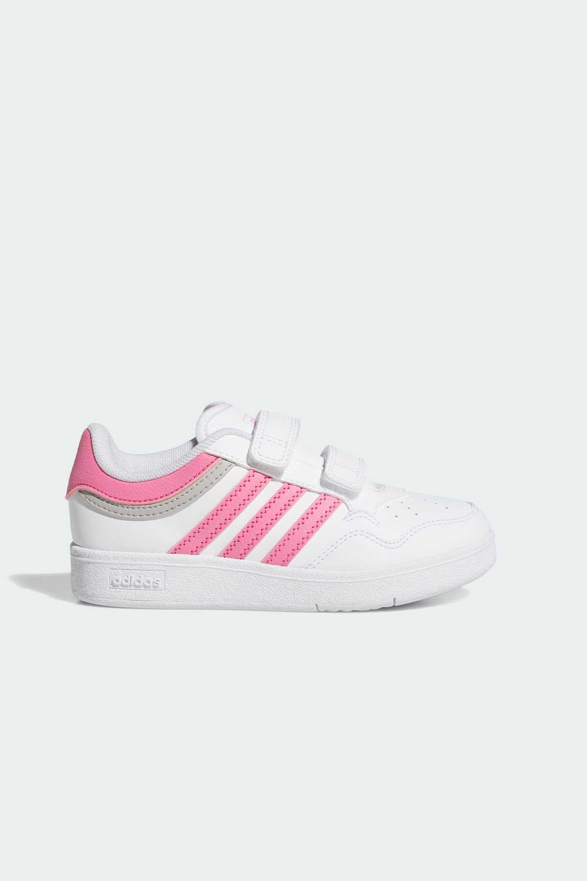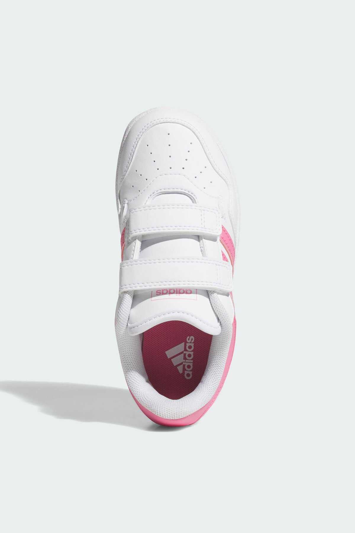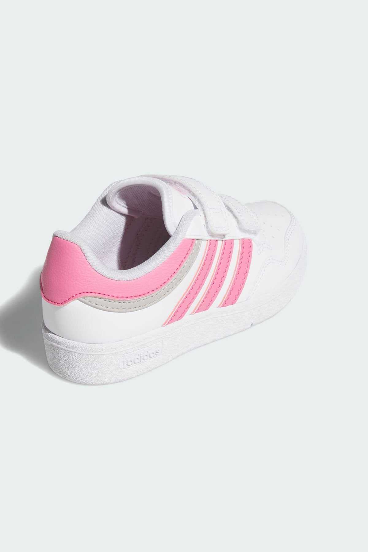Klasik basketbol modellerinden ilham alan bu adidas ayakkabı günlük stiline çok yönlülük katar. -Alçak profilli silüet ve sentetik deri üst yüzey ayakkabıyı her ortamda giyilebilir hale getirir. -Cırt cırtlı bantları ile hızlıca giyilip çıkarılabilen model kauçuk taban yapısı ile klasik basketbol stilini yansıtır.-Normal kalıp-Cırt cırtlı bant-Sentetik deri saya-File astar ve bilek kısmı-Yastıklamalı orta taban-Kauçuk taban yapısı-Suni deri içermektedir-Ürün rengi: Cloud White Pink Fusion Grey Two-Ürün kodu: JI0907-Menşei: Vietnam