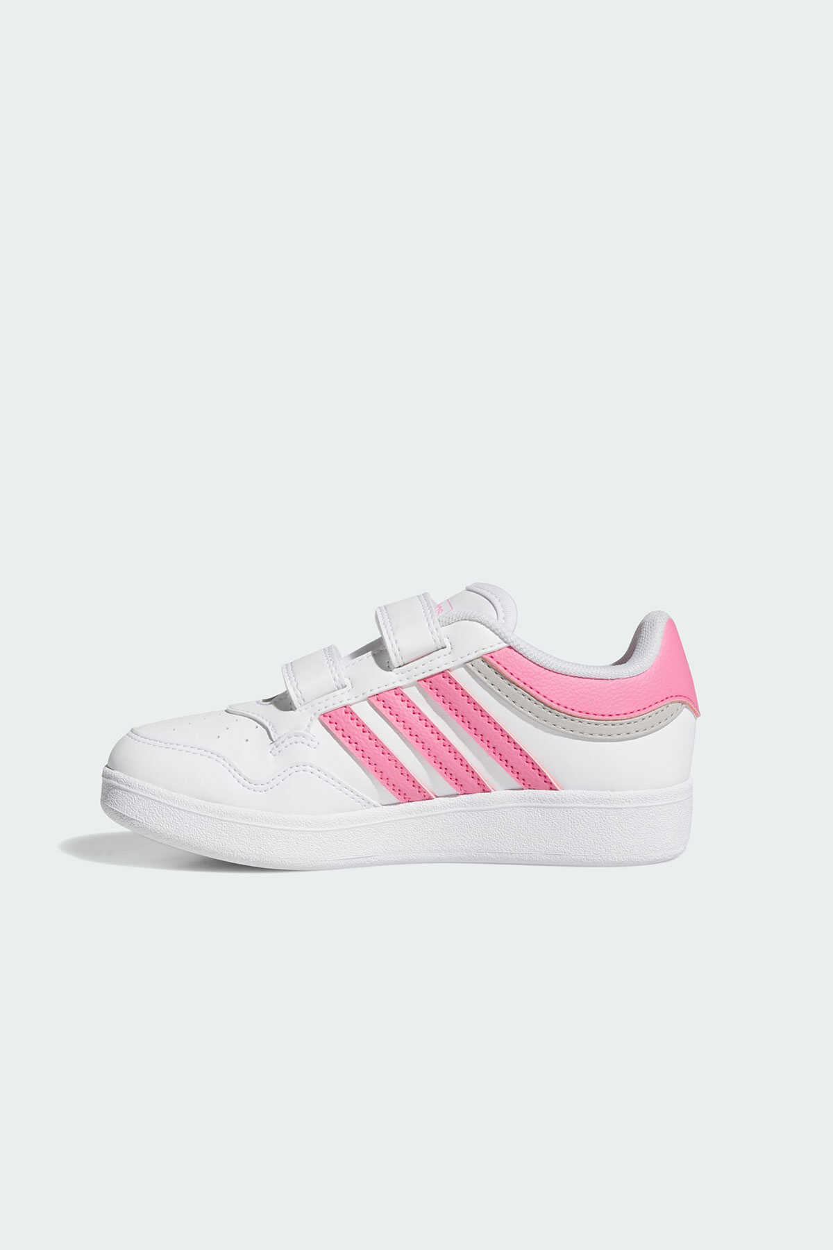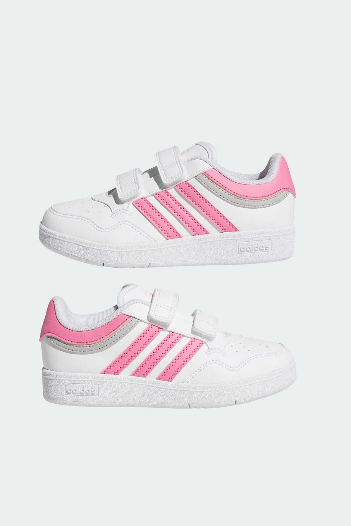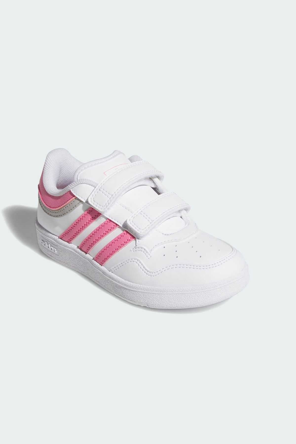 Klasik basketbol modellerinden ilham alan bu adidas ayakkabı günlük stiline çok yönlülük katar. -Alçak profilli silüet ve sentetik deri üst yüzey ayakkabıyı her ortamda giyilebilir hale getirir. -Cırt cırtlı bantları ile hızlıca giyilip çıkarılabilen model kauçuk taban yapısı ile klasik basketbol stilini yansıtır.-Normal kalıp-Cırt cırtlı bant-Sentetik deri saya-File astar ve bilek kısmı-Yastıklamalı orta taban-Kauçuk taban yapısı-Suni deri içermektedir-Ürün rengi: Cloud White Pink Fusion Grey Two-Ürün kodu: JI0907-Menşei: Vietnam