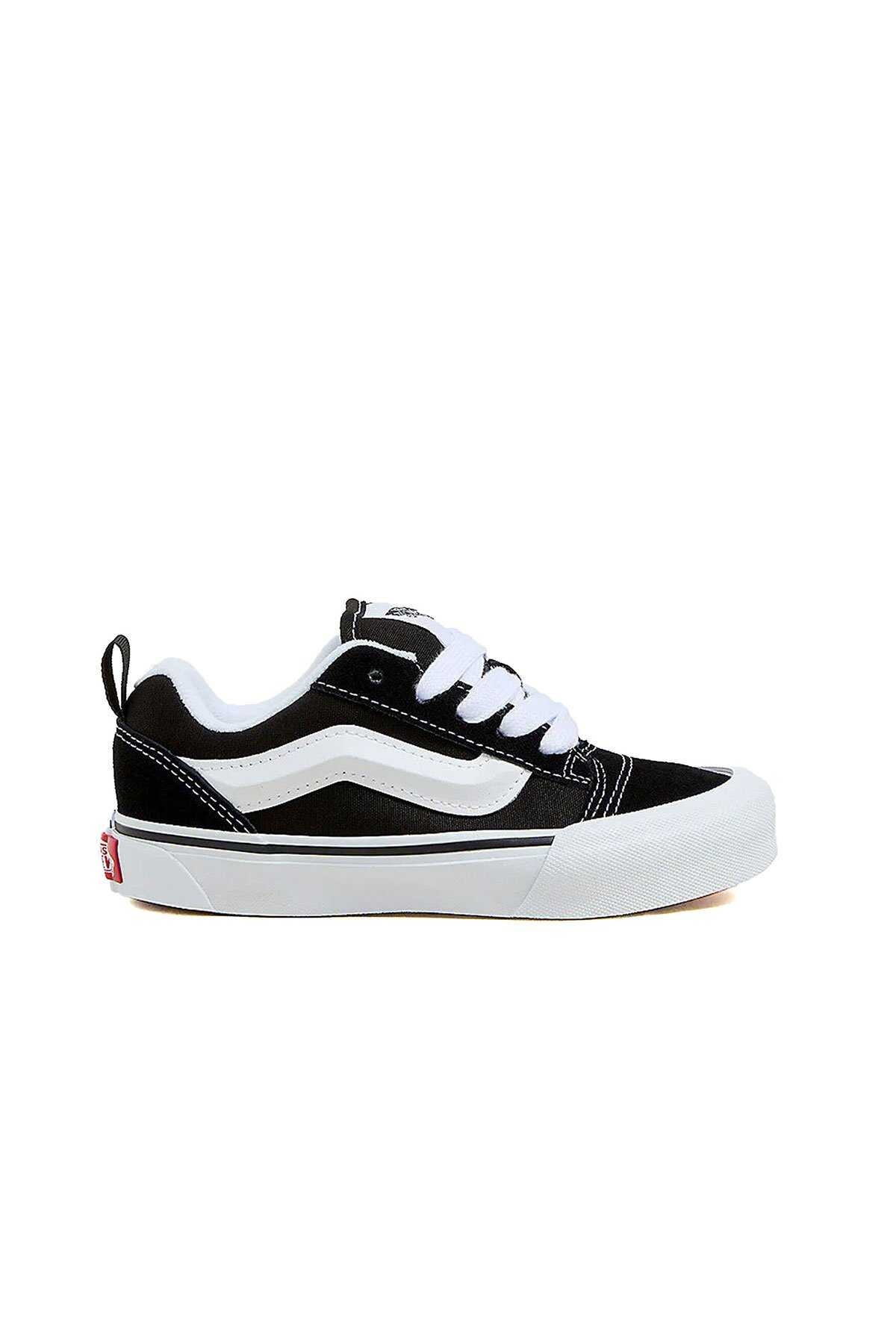 Vans KNU SKOOL Çocuk Günlük Ayakkabısı miniklerin enerjik adımlarına eşlik edecek şık ve konforlu bir seçenektir. Vansin ikonik sokak stili ile tasarlanan bu ayakkabılar çocukların hem okulda hem de oyun parkında rahat etmelerini sağlar. Dayanıklı malzemelerden üretilen bu model uzun süreli kullanıma uygun olup çocukların hareketli yaşamlarına ayak uydurur. Ayakkabının dolgulu bilek kısmı ve yastıklamalı iç tabanı gün boyu süren konfor sağlarken kaymaz tabanı çocukların güvenle hareket etmelerine yardımcı olur. Vans KNU SKOOL çocukların tarzını yansıtan renkli ve eğlenceli tasarımlarıyla da dikkat çeker.-Bu ayakkabılar çocukların ayak sağlığını destekleyen ergonomik yapısıyla öne çıkar. Cırt cırtlı veya bağcıklı modelleri sayesinde çocuklar ayakkabılarını kolayca giyip çıkarabilirler. Vansin kalitesi ve dayanıklılığı ile üretilen KNU SKOOL çocukların her adımda rahat etmelerini ve özgürce hareket etmelerini sağlar. Bu ayakkabılar çocukların hem günlük hayatta hem de özel günlerde rahatlıkla kullanabilecekleri çok yönlü bir seçenektir. Vans KNU SKOOL ile çocuklar hem şık görünecekler hem de gün boyu konforun tadını çıkaracaklar.-Nefes Alan Dayanıklı Süet Saya: Vans Knu Skool çizgisini bozmadan yenilenen tasarımları ile Knu Skool çocuk günlük ayakkabı modellerinde kullanılan özellikli sağlam süet üst materyal modeli stil sahibi bir görünüme kavuşturuyor. Kabarık 3D kalıplı Sidestripe™ detayı ile dikkat çeken Vans Knu Skool çocuk ayakkabılar nefes alabilen süet dış sayası ile kabarık dil ve ayak bileği kullanıcılarına rahat bir kullanım sunuyor.-Waffle Kauçuk Dış Taban: Vansın imzası olarak bilinen kauçuk waffle taban ile üretilen Knu Skool modellerinin özel bir taban yapısı bulunuyor. Ekstra esneklik ve taban desteği sağlamak için Knu Skool çocuk ayakkabı modellerinde kauçuk waffle taban kullanılmıştır. Zemin tutuşu kuvvetli kauçuk taban tamamen yeri kavrayabildiğinden kaymaz ve hareket kontrolünü de kolaylaştırır.-Standart kalıplı yapı-Nefes alabilen süet dış materyal yapısı-Kabarık 3D kalıplı Sidestripe™ detayı-Klasik bağcık özelliği-Topukta Vans marka logosu-Kauçuk dayanıklı dış taban özelliği-Topukta çekme ucu-Sportif ve rahat tasarım.-Ürün Kodu: VN000CYU6BT1-Menşei: Vietnam