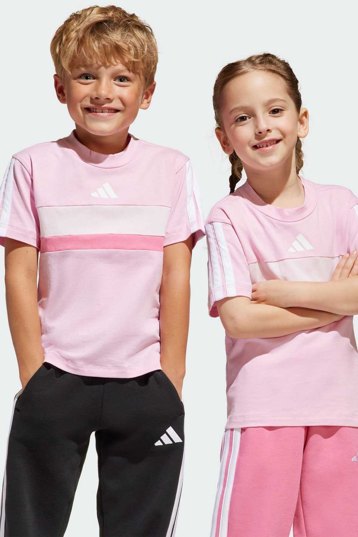 Çocuğun hafta sonunu nasıl geçirmek isterse istesin bu adidas çocuk tişörtü maceraya hazır. - Yumuşak pamuklu jarse giyildiği ilk andan günün son ışıklarına kadar konfor sunar. - Kollardaki 3 bant detayı modele rahat bir hava katar. - Normal kesim - Bisiklet yaka - %100 pamuklu - En az %70 geri dönüştürülmüş ve yenilenebilir malzeme içerir - Ürün rengi: True Pink White Clear Pink - Ürün kodu: JI6211 - Menşei: Kamboçya