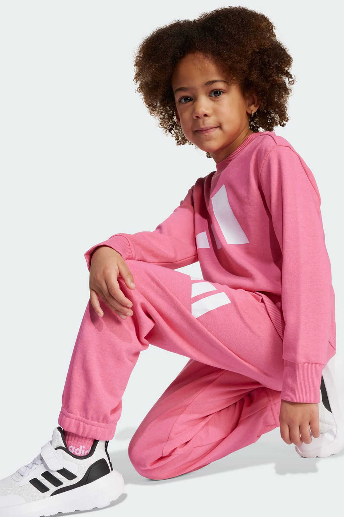 Gün ne getirirse getirsin minikler bu adidas jogger eşofman takımıyla her şeye hazır olacak. Yumuşak pamuklu Fransız havlu kumaşı ile ciltte hoş bir his bırakan model ribana manşetleri ile koşarken ve oynarken eşofman altının sabit kalmasını sağlar. Bacak kısmındaki büyük 3 Bar Logo miniklerin sportif tarzını yansıtır.Geri dönüştürülmüş malzemeleri tercih etmek halihazırda üretilmiş malzemeleri yeniden kullanmamıza imkan tanır ve atıkları azaltmaya yardımcı olur. Yenilenebilir malzeme seçenekleri sınırlı kaynaklara olan bağımlılığımızı azaltmamıza yardımcı olacak. Geri dönüştürülmüş ve yenilenebilir malzemelerin karışımından üretilen ürünlerimiz toplamda en az %70 oranında bu malzemeleri içerir.Normal kesimÜst: Bisiklet yaka%70 pamuk %30 polyester (geri dönüştürülmüş)Eşofman altı: Elastik belEn az %70 geri dönüştürülmüş ve yenilenebilir malzeme içerirÜrün rengi: Pink Fusion WhiteÜrün kodu: JW2435