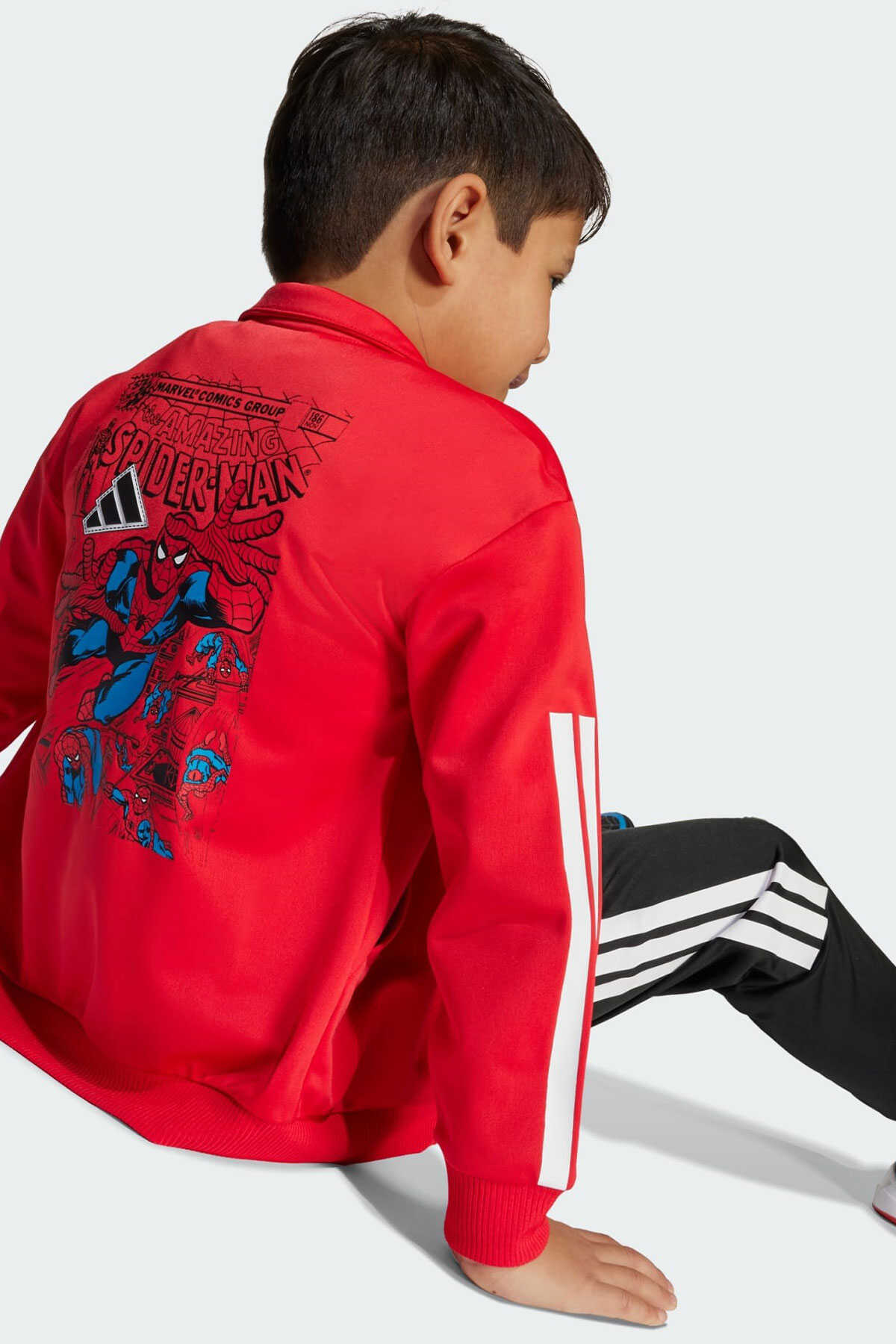 Çocuklara özel bu adidas eşofman takımı ile küçük süper kahramanının daima aksiyona hazır olacak.-Örümcek Adam’dan ilham alarak tasarlanan eşofman üstünün sırt kısmında renkli bir çizgi roman kapağı baskısı yer alır. -Yumuşak triko kumaş ve rahat kesim hem şehirde dolaşırken hem oyun parkında koşarken konforlu kalmalarını sağlar.-Menşei: Vietnam