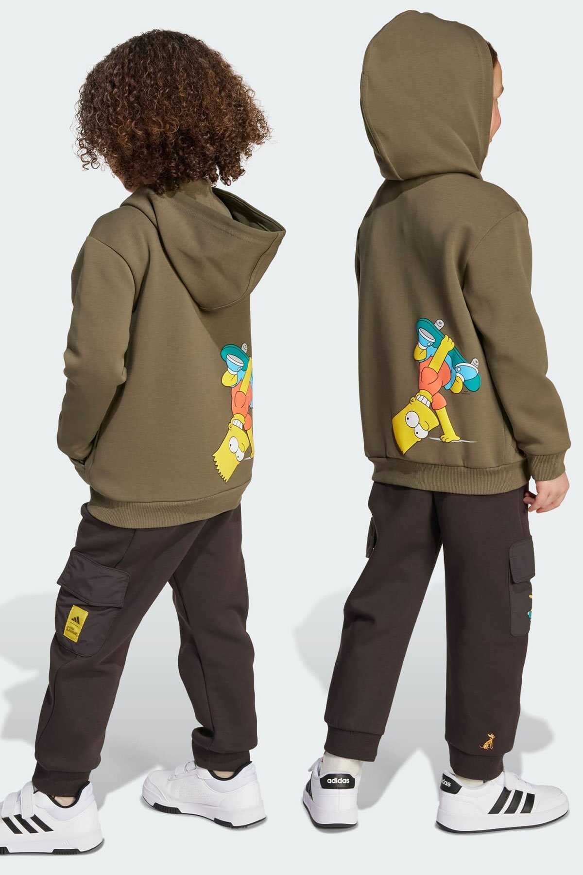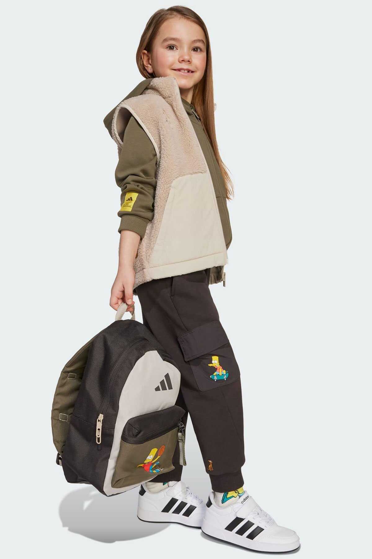 Çocuklar ister televizyon izlesinler ister arkadaşlarıyla oyun oynasınlar bu adidas eşofman altının konforunu çok sevecekler. -Normal kesimi ile konfor sunan model yumuşak pamuk karışımı kumaşı ile gün boyu kullanıma uygundur. -Kaykay üzerindeki renkli Bart Simpson grafiği modele Simpsons hayranlarının bayılacağı eğlenceli bir dokunuş ekler.-Normal kesim-Bağcıklı elastik bel-%95 pamuk %5 elastan-Ürün rengi: Night Brown-Ürün kodu: JL9199-Menşei: Vietnam