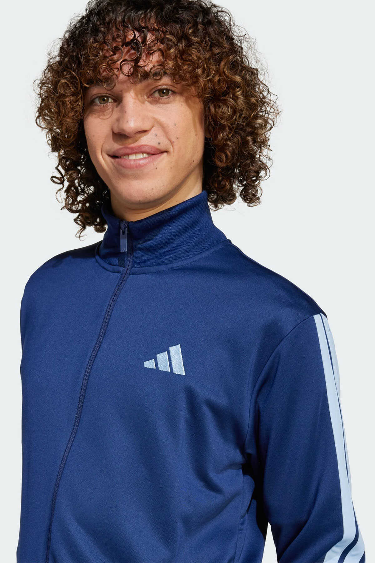 Bu adidas eşofman takımı hem dışarı çıkarken hem kanepede dinlenirken giymek için idealdir. -Yumuşak pamuklu Fransız havlu kumaşından üretilen model ribana detayları ile son derece konforludur. -Şık 3 bant detayı modele modern ve sportif bir görünüm kazandırır.-Normal kesim-Tam boy fermuar; dik yaka-%100 polyester (geri dönüştürülmüş)-Normal bel kesimi-Eşofman altında ve üstünde ön cepler-Ribana manşetler ve alt kısım-Bağcıklı elastik bel-Ürün rengi: Dark Blue-Ürün kodu: JI8873-Menşei: Tayland