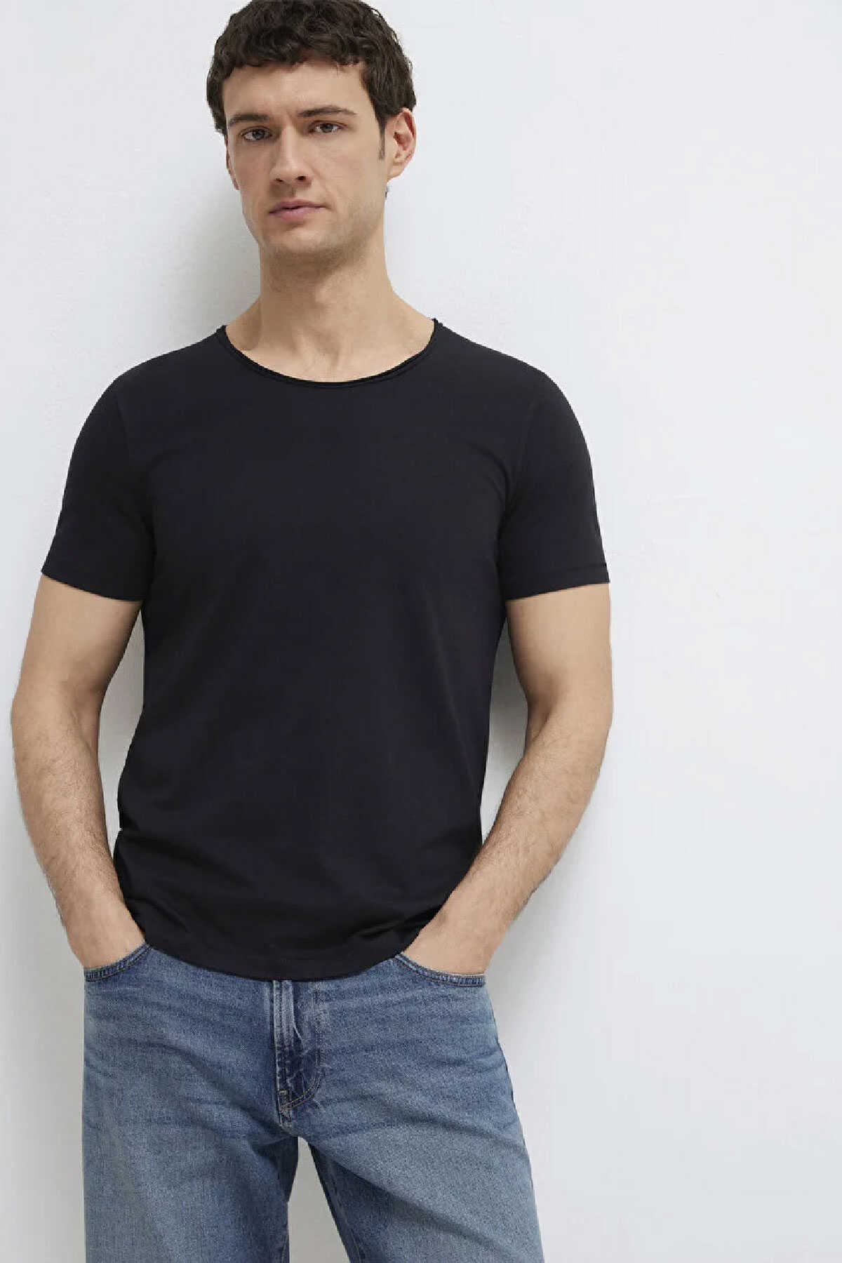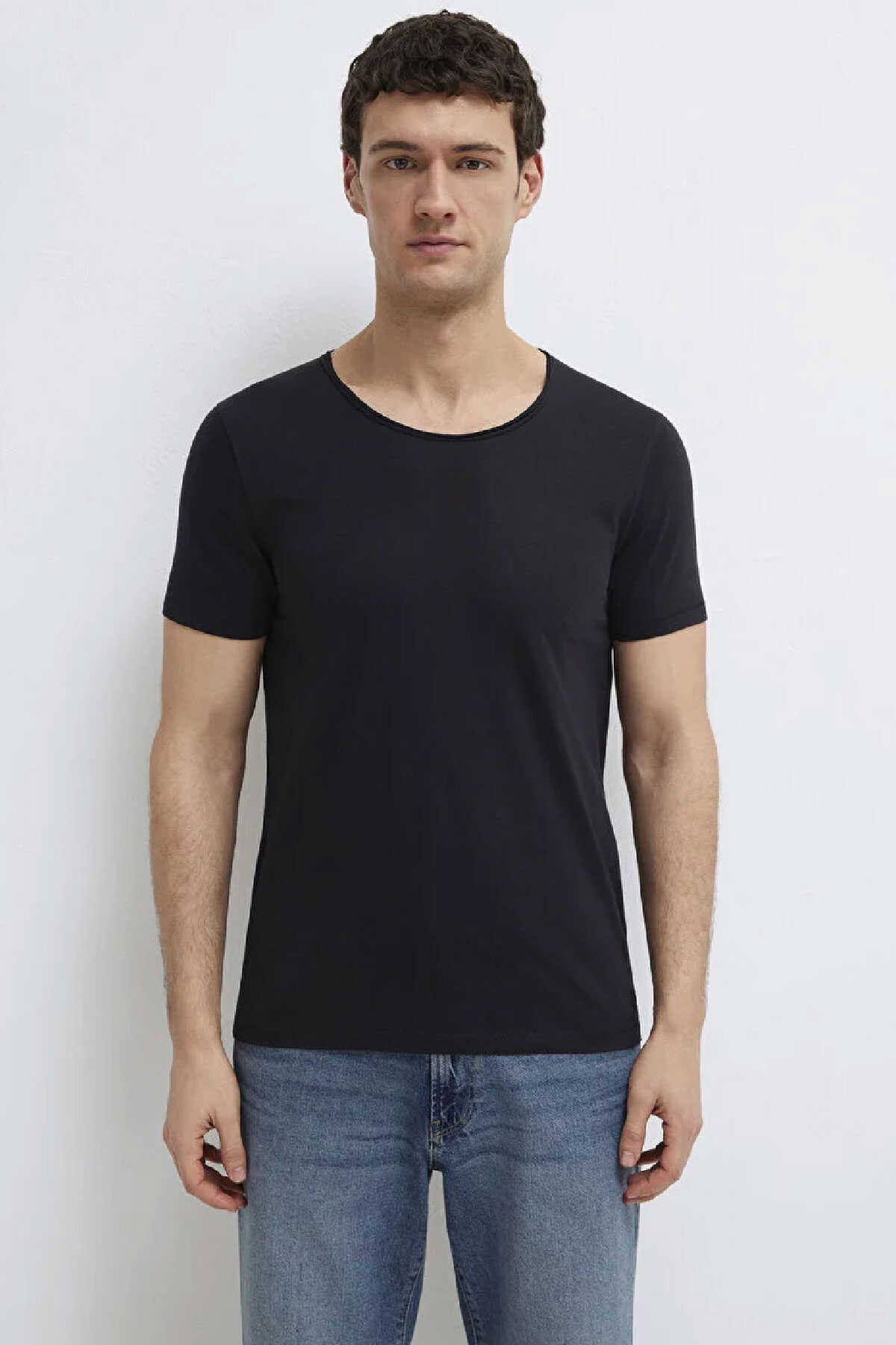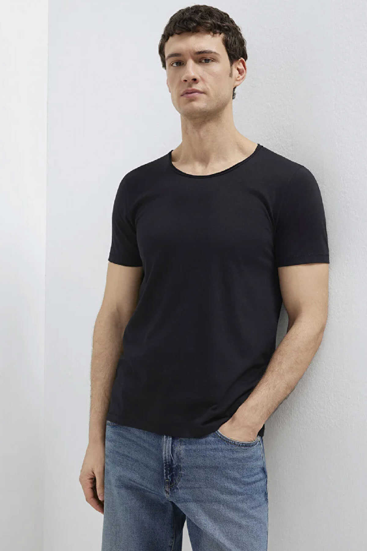 Bu pamuk karışımlı tişört fitted vücuda oturan kesimi ve bisiklet yakası ile şık bir görünüm sunar. -Hafif ağırlıktaki kumaşı ile konfor sağlayan bu siyah tişört kısa kollu tasarımıyla günlük kullanım için idealdir. -Alt kısmında küçük bir logo detayı bulunan bu basic tişört klasik bir stil yaratır.-Ürün Kodu: 064019-20933-Kumaş Bilgileri-%62 Pamuk-%38 Polyester-Manken Ölçüleri-Jean: Bel: 31 Boy: 31 Üst: L-Boy: 189 cm Bel: 78 cm Göğüs: 95 cm Kalça: 91 cm-Menşei: Türkiye