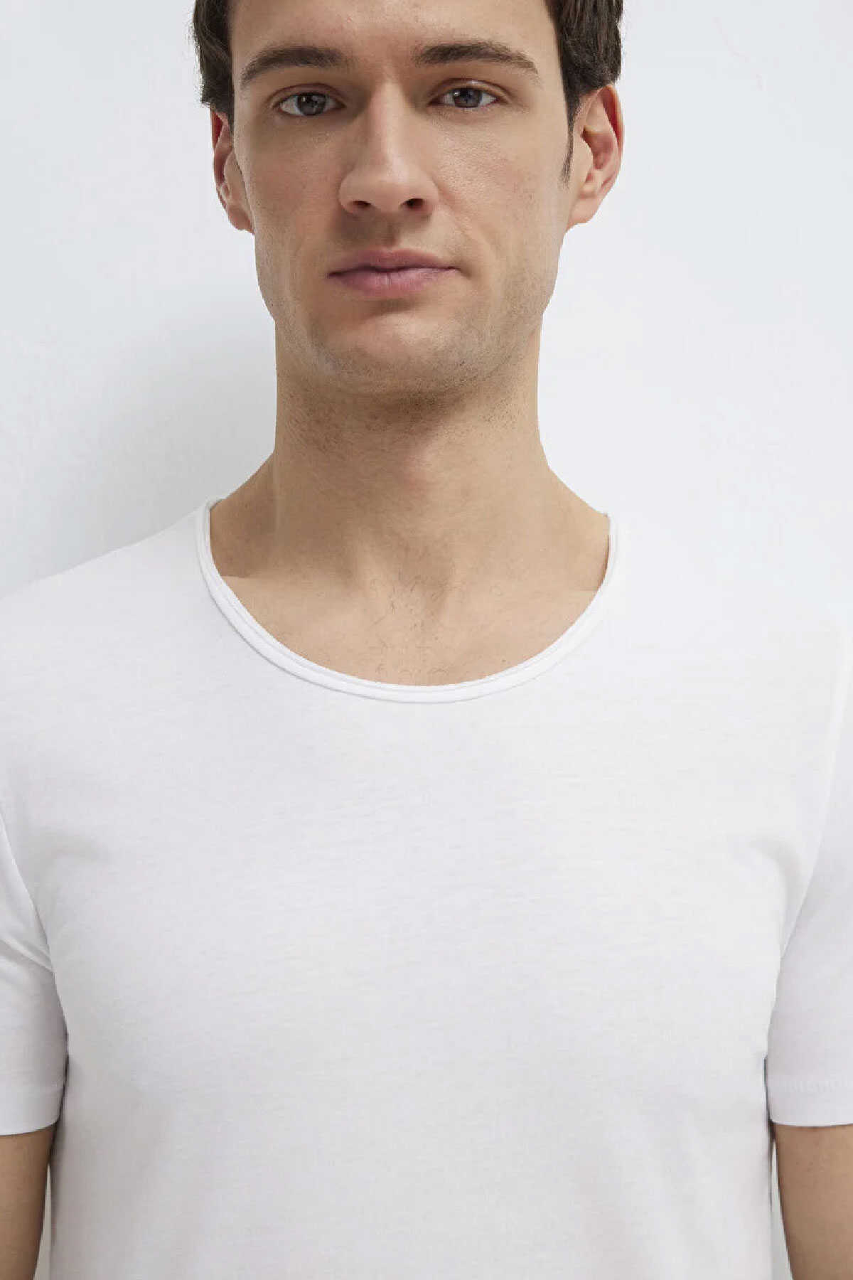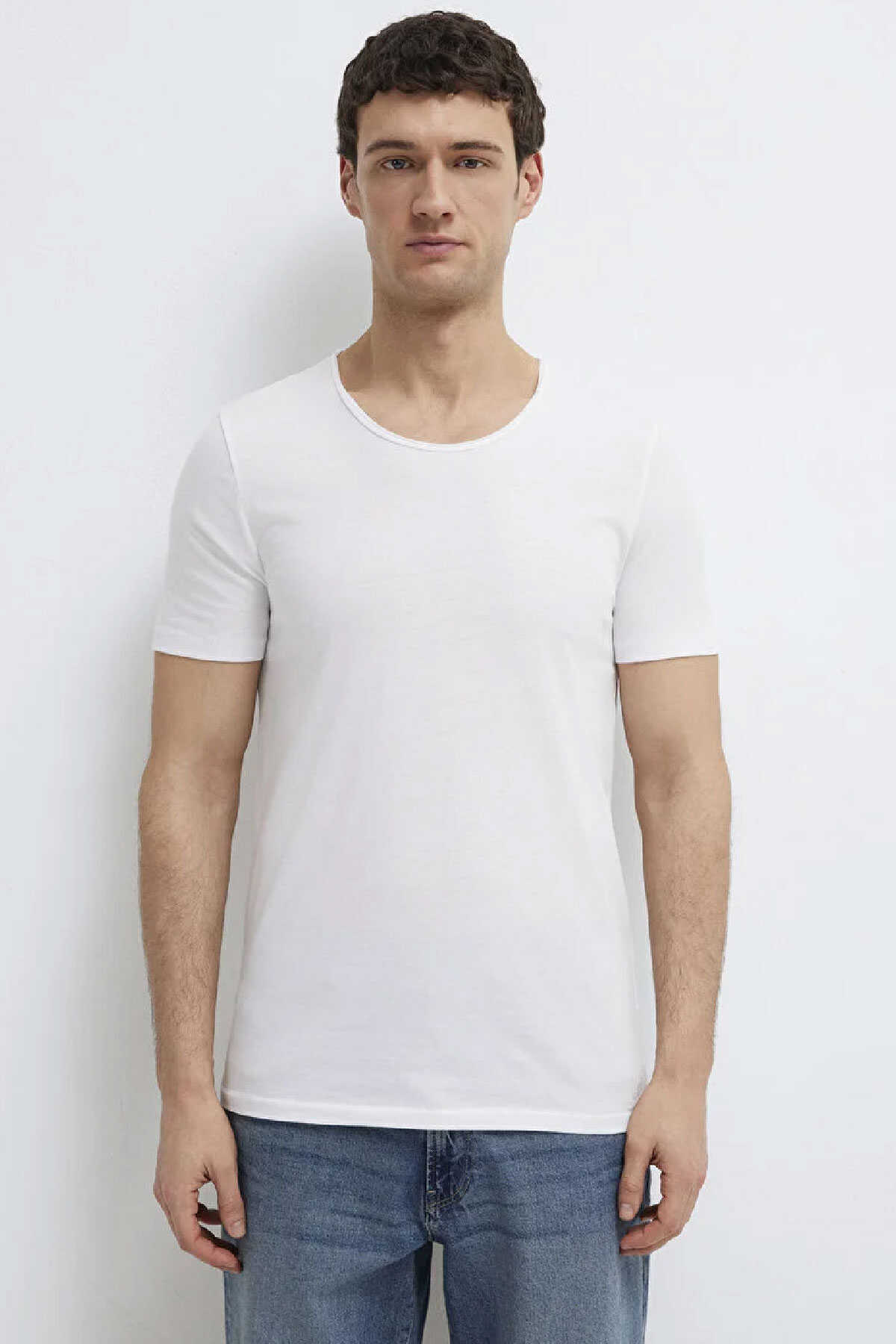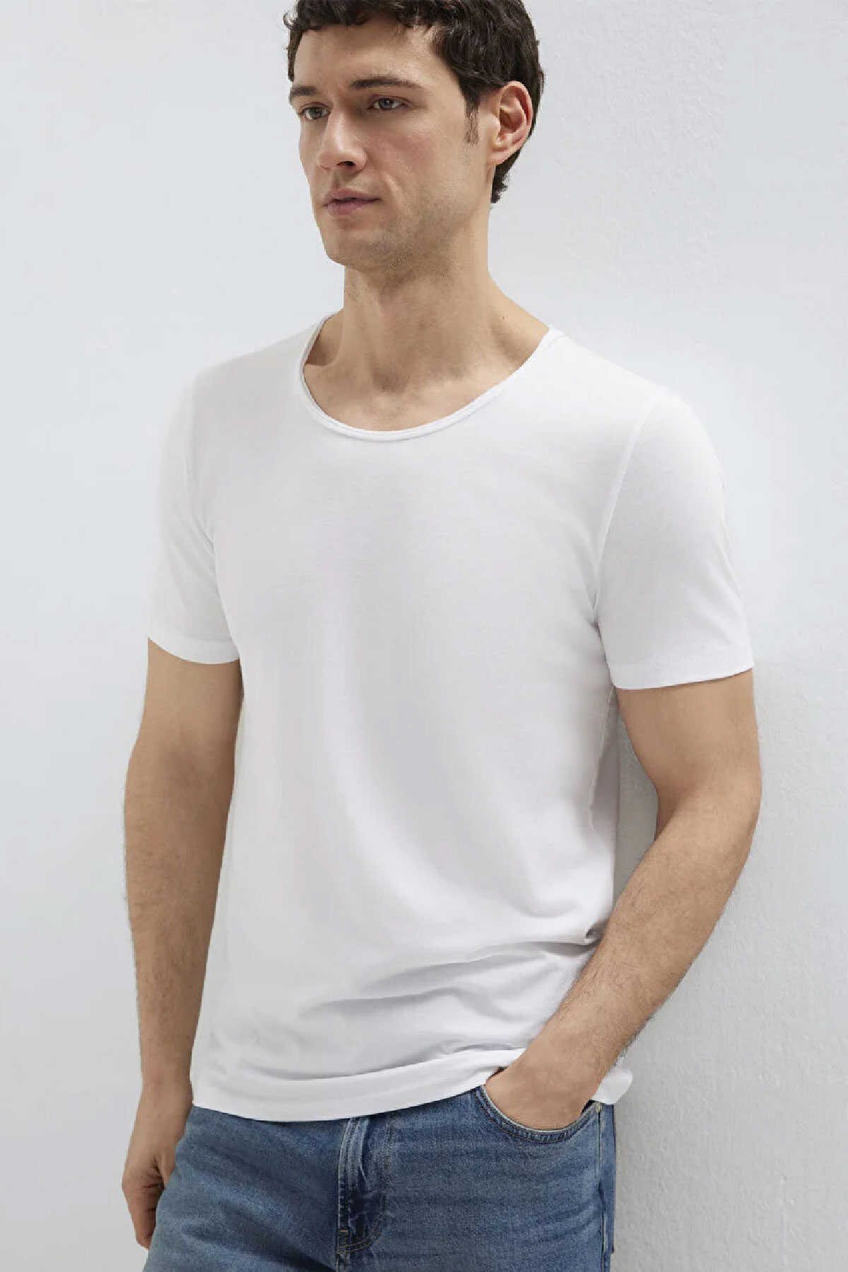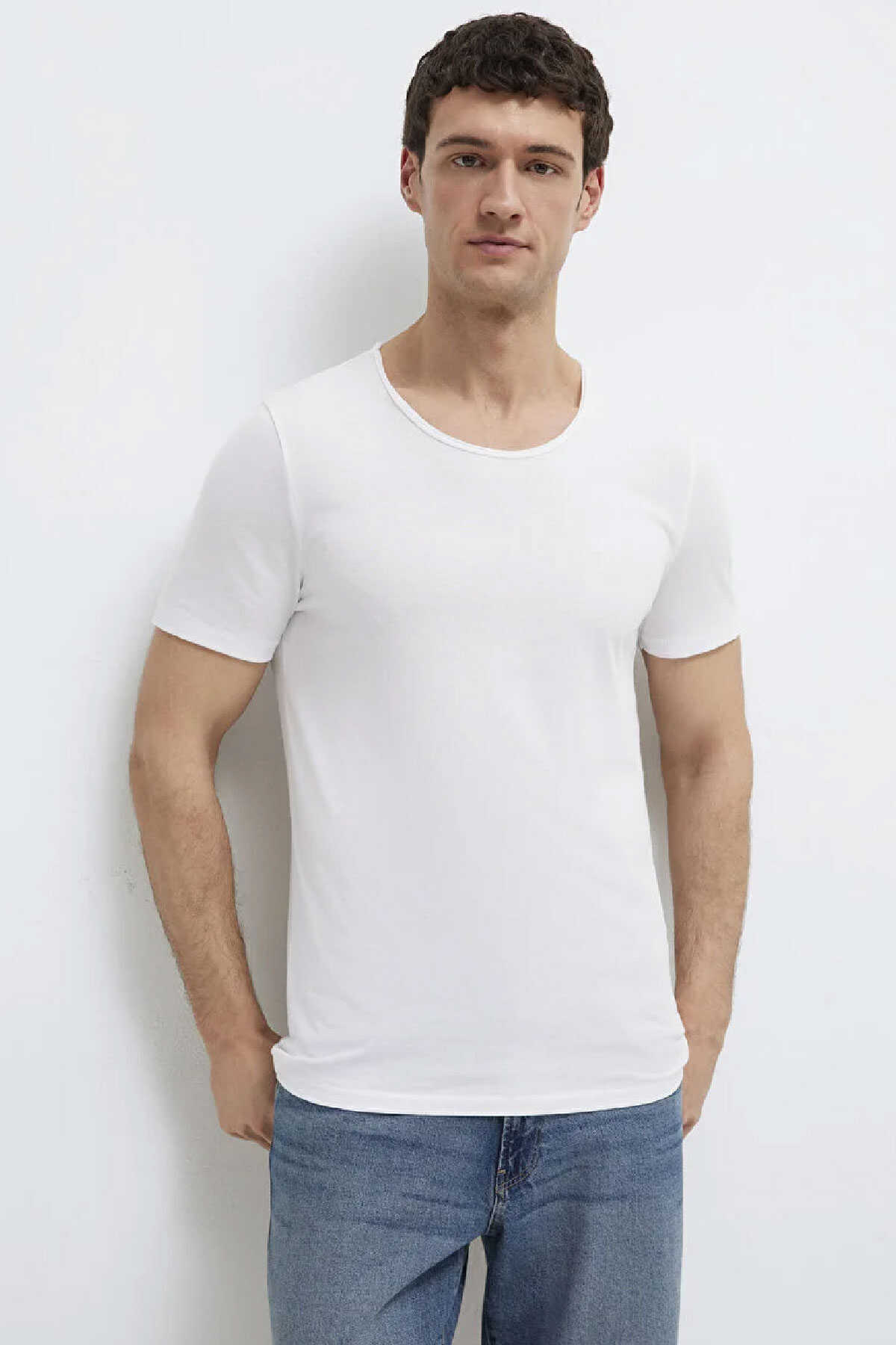 Pamuk karışımlı. -Fitted vücuda oturan tişört. -Bisiklet yaka. -Kısa kol. -Yaka ve kollarda raw dikiş detayları. -Yaka Detaylı Beyaz Tişört.-Ürün Kodu: 064019-620-Kumaş Bilgileri-%62 Pamuk-%38 Polyester-Manken Ölçüleri-Jean: Bel: 31 Boy: 30 Üst: L-Boy: 189 cm Bel: 78 cm Göğüs: 95 cm Kalça: 91 cm-Menşei: Türkiye