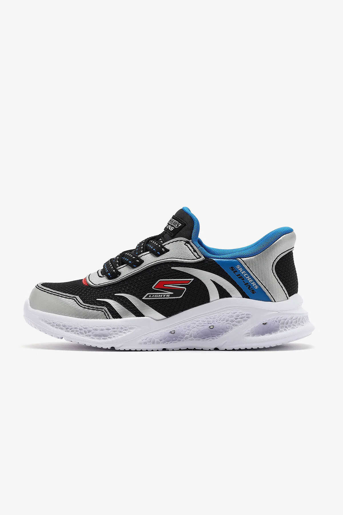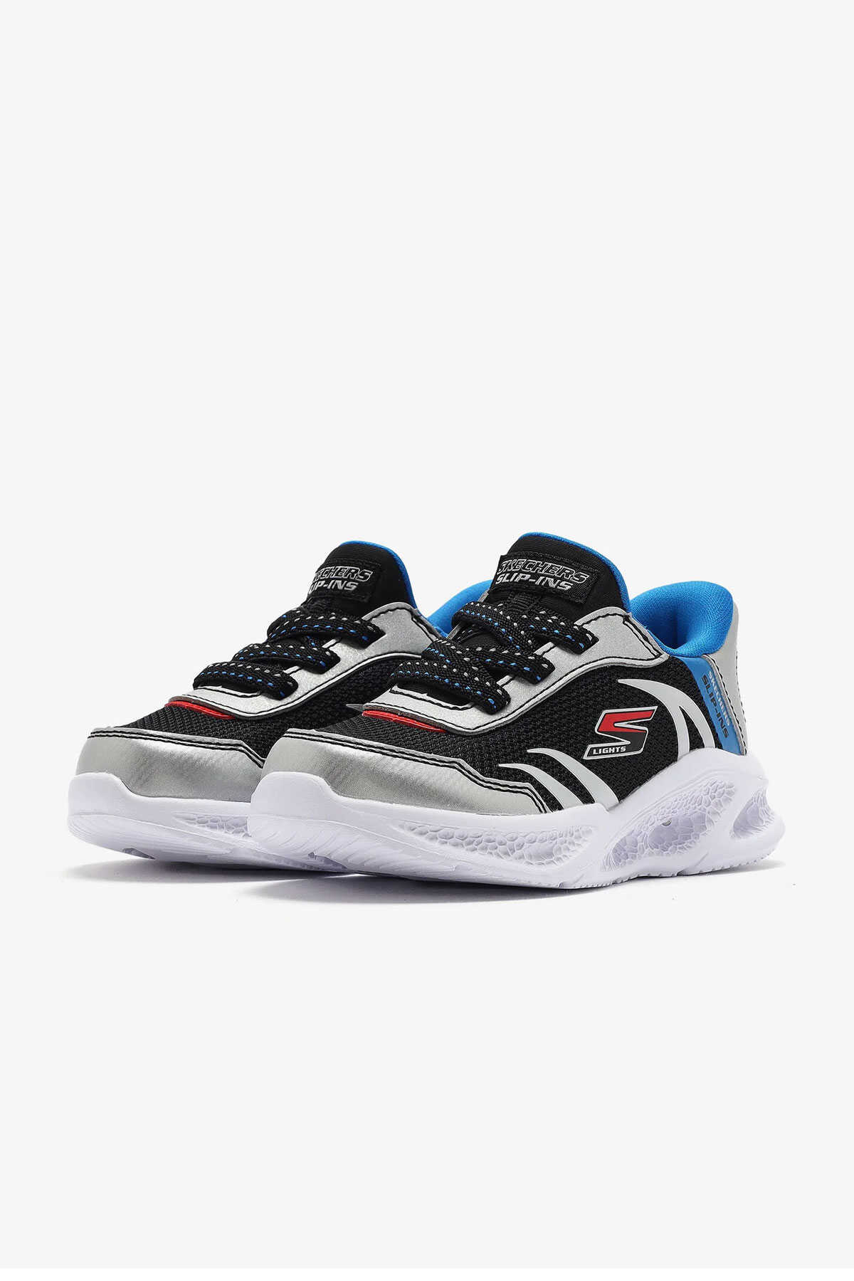Ürün Kodu: 403848N SLBK-Skechers Air Cooled Memory Foam yastıklı konforlu ve hava alma özelliği olan iç taban teknolojisi kullanılmıştır.-Darbe emici ışıklı orta tabana sahiptir.-Yer tutuşu sağlayan esnek dış tabanı bulunur.-Kolay giyilebilen Skechers Hands Free Slip-ins koleksiyonunun bir üyesidir.Özel Heel Pillow topuk yastığı ayağınızı güvenli bir şekilde destekler.-Skechersın kişiye özel uyum için kolay giyilip çıkarılabilen uyarlanabilir kapatma özelliği bulunur.-Büyük çocuklar için olan ayakkabılarda açmakapama için ışık düğmesi bulunur.-Esnek bağcıklar ve ayarlanabilir üst kısım kayışı ile file ve sentetik üst kısmı bulunur.Skechers Meteor-lights - Brisk-beams erkek çocuk ışıklı spor ayakkabısı hem sportif bir tarz sunarak hem de konforu ön planda tutarak çocukların her adımını aydınlatma görevini üstleniyor.-İç tabanındaki Skechers Air Cooled Memory Foam teknolojisi yastıklama ve hava alma özellikleriyle uzun süreli kullanımda bile ayak konforunu garanti ederken darbe emici yapısı sayesinde her adımda süper bir destek sağlıyor.-Böylece zıplama ve koşma gibi yüksek etkili hareketler sırasında bile konforlarından ödün vermeyen çocuklar için mükemmel bir seçenek haline gelir. -Skechersın özel tasarımı esnek dış tabanı sayesinde yer tutuşunu artırarak kayma riskini minimize eder ve çocukların aktif oyunlarının tadını güvenle çıkarmalarına yardımcı olur.-Ayrıca Skechers Hands Free Slip-ins koleksiyonunun bir parçası olarak bu ayakkabılar kolaylıkla giyilip çıkarılabilmesi için tasarlanmıştır. Bu özellik özellikle okul öncesi ve ilkokul çağındaki çocuklar için büyük bir rahatlık sunar.-Menşei: Çin