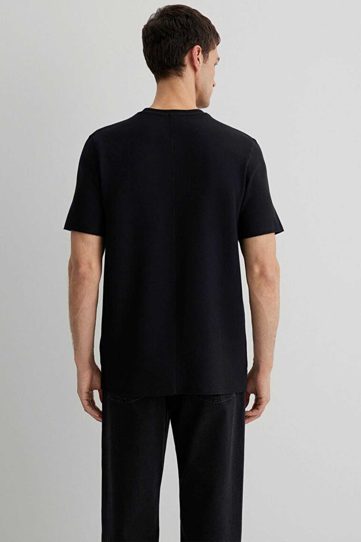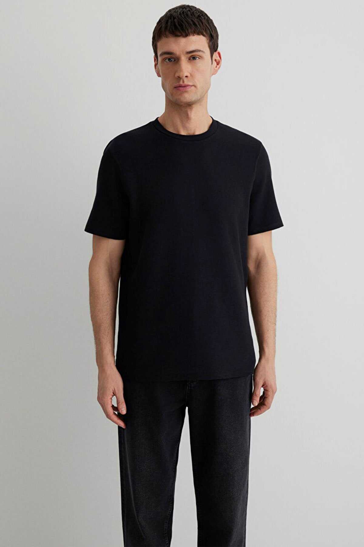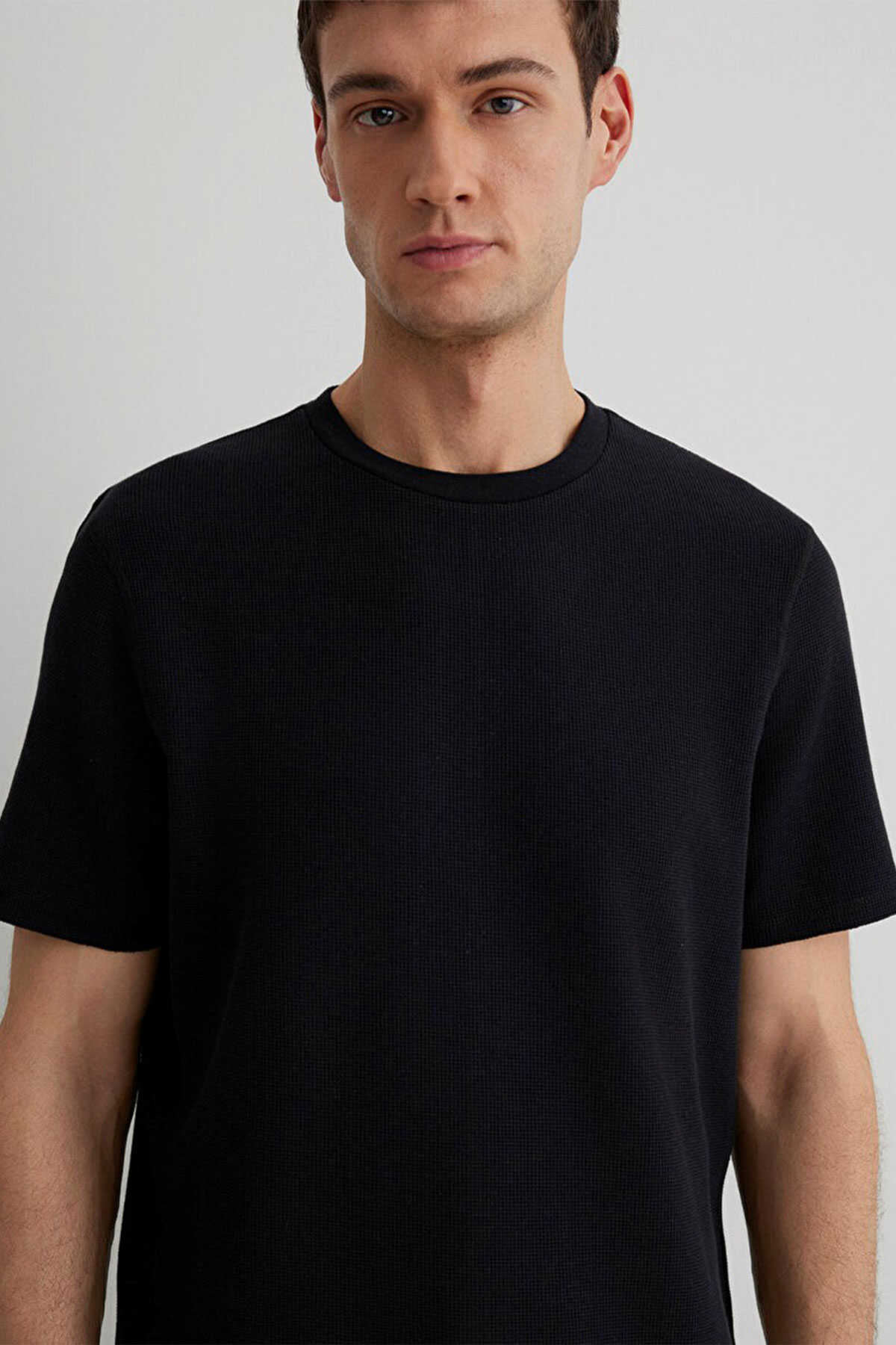 Pamuk karışımlı slim fit tişört. Bisiklet yaka. -Kısa kol.-Dokulu waffle kumaş. -Dokulu Siyah Basic Tişört.-Ürün Kodu: 0610277-900-Kumaş Bilgileri-%61 Polyester-%38 Pamuk-%1 Elastan-Manken Ölçüleri-Jean: Bel: 31 Boy: 32 Üst: L-Boy: 189.5 cm Bel: 80 cm Göğüs: 98 cm Kalça: 98 cm-Menşei: Türkiye