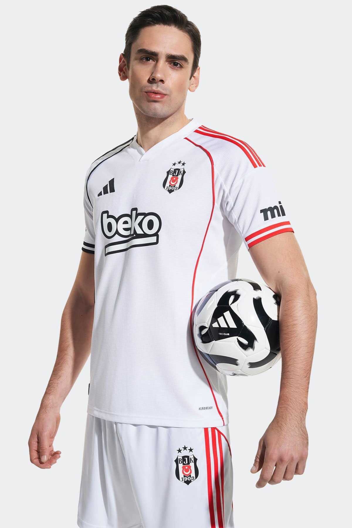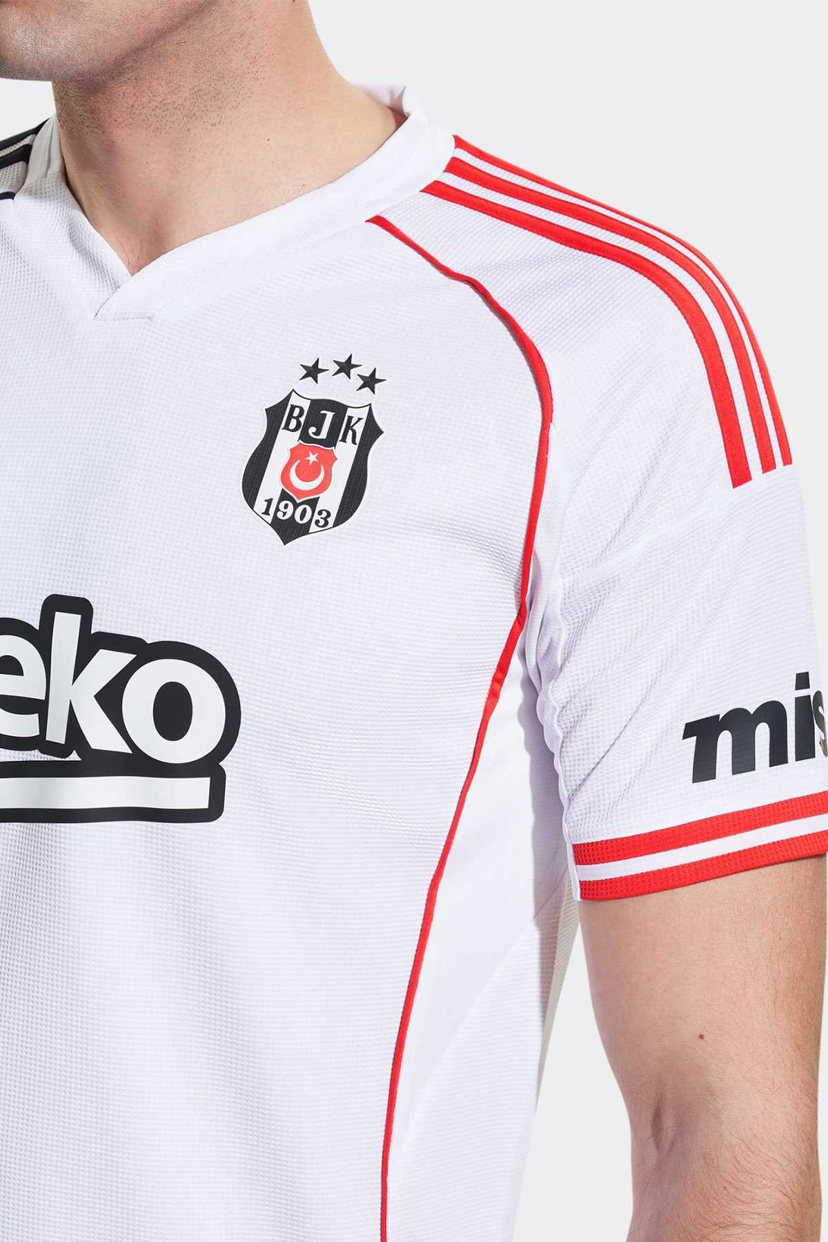 Beşiktaşın beyaz iç saha renklerindeki adidas futbol forması asimetrik kırmızı ve siyah 3 bant detayı fitil detayı ve manşet detayları ile göz alıcı bir görünüm sunar. -Nemi uzaklaştıran AEROREADY teknolojisi takımını desteklerken konforlu kalmanı sağlar. -Yakanın arka kısmındaki "1903" yazısı ve göğüs kısmındaki TPU arma takım gururunu yansıtır.-Dar kesim-Henley yaka-%100 polyester (geri dönüştürülmüş)-AEROREADY-TPU Beşiktaş JK arması-Ürün rengi: White-Ürün kodu: JD1418-Menşei: Türkiye