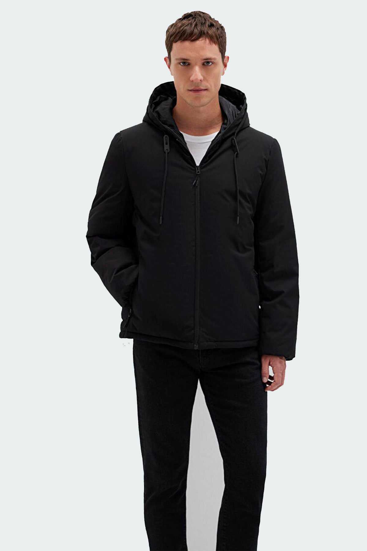Mavinin dış giyim koleksiyonundan Kapüşonlu Siyah Şişme Mont.- İki adet fermuarlı yan cep iple ayarlanabilir sabit kapüşon bir adet iç cep.-Kumaş Bilgileri-Kumaş: %100 Elastomultiester-Astar 1: %100 Polyester-Astar 2: %100 Polyester-Dolgu: %100 Polyester-Menşei: Myanmar-