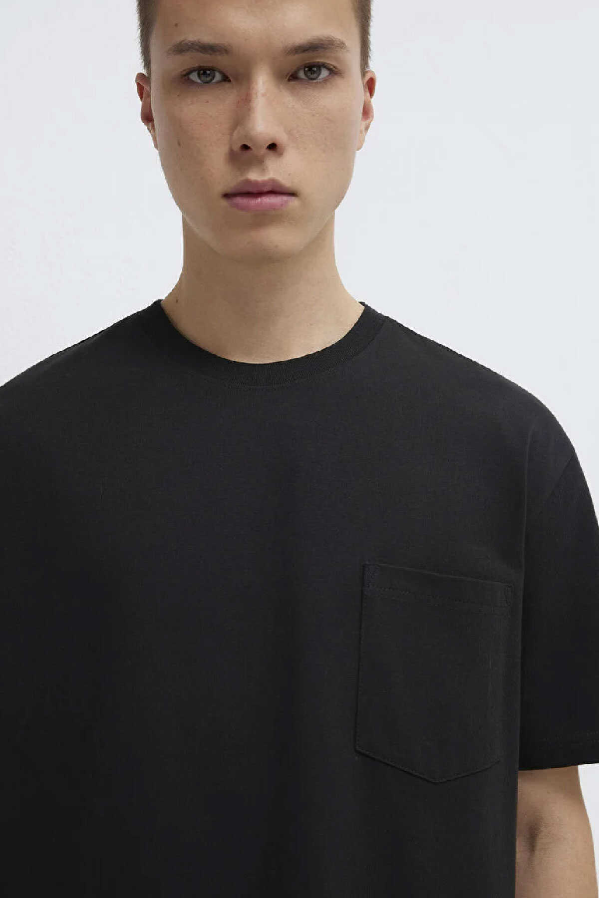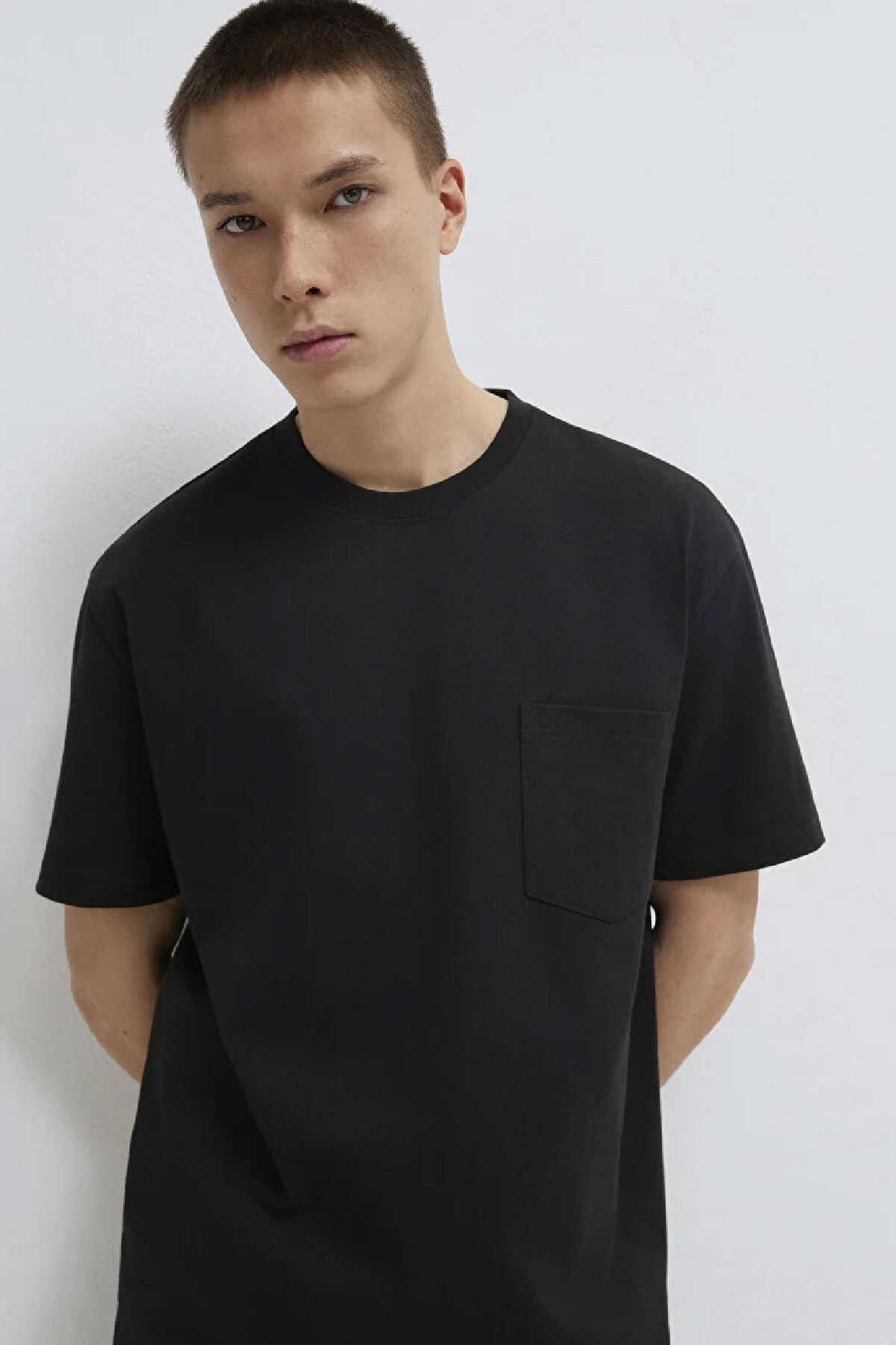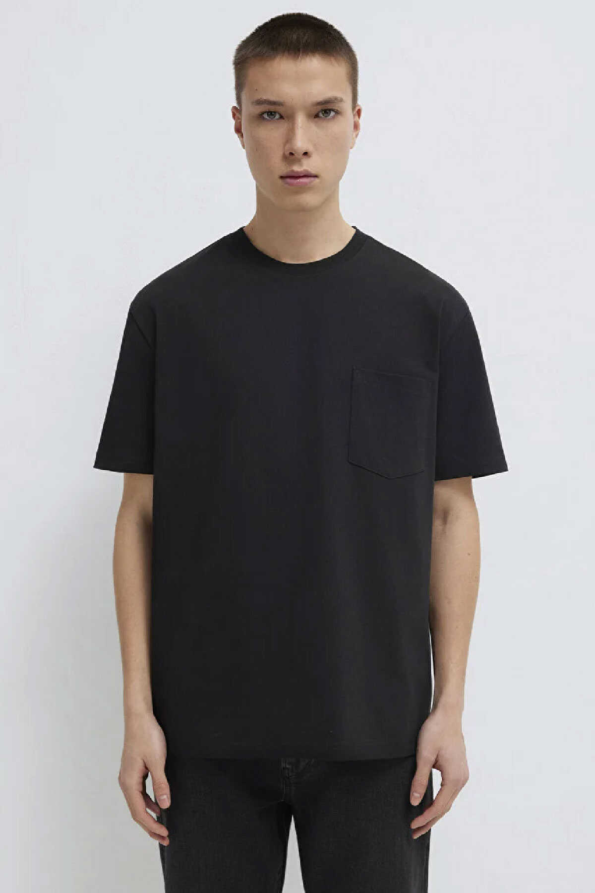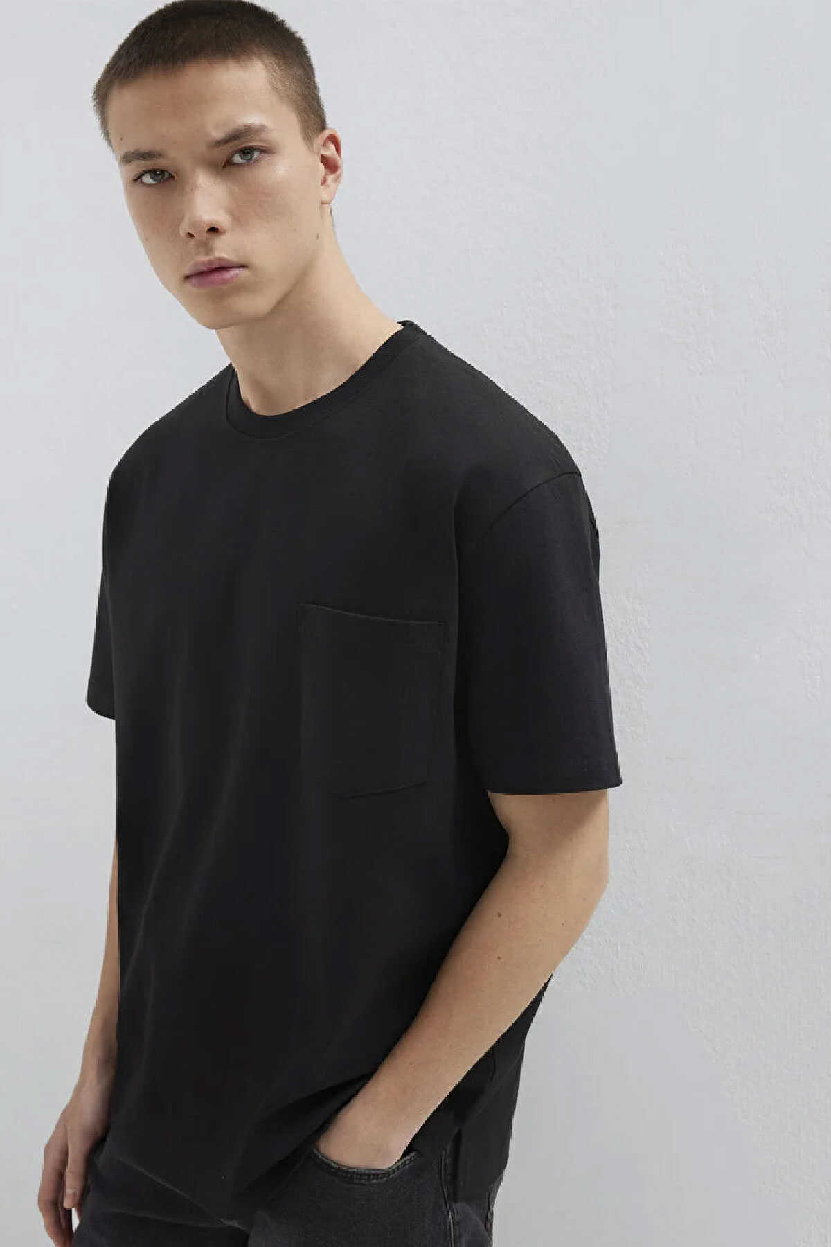 Yüzde yüz pamuk loose fit cep detaylı basic tişört. Bisiklet yaka. Kısa kol. Cep Detaylı Siyah Tişört-Ürün Kodu: 066248-900-Kumaş Bilgileri-%100 Pamuk-Manken Ölçüleri-Jean: Bel: 30 Boy: 32 Üst: L-Boy: 188 cm Bel: 75 cm Göğüs: 96 cm Kalça: 95 cm
