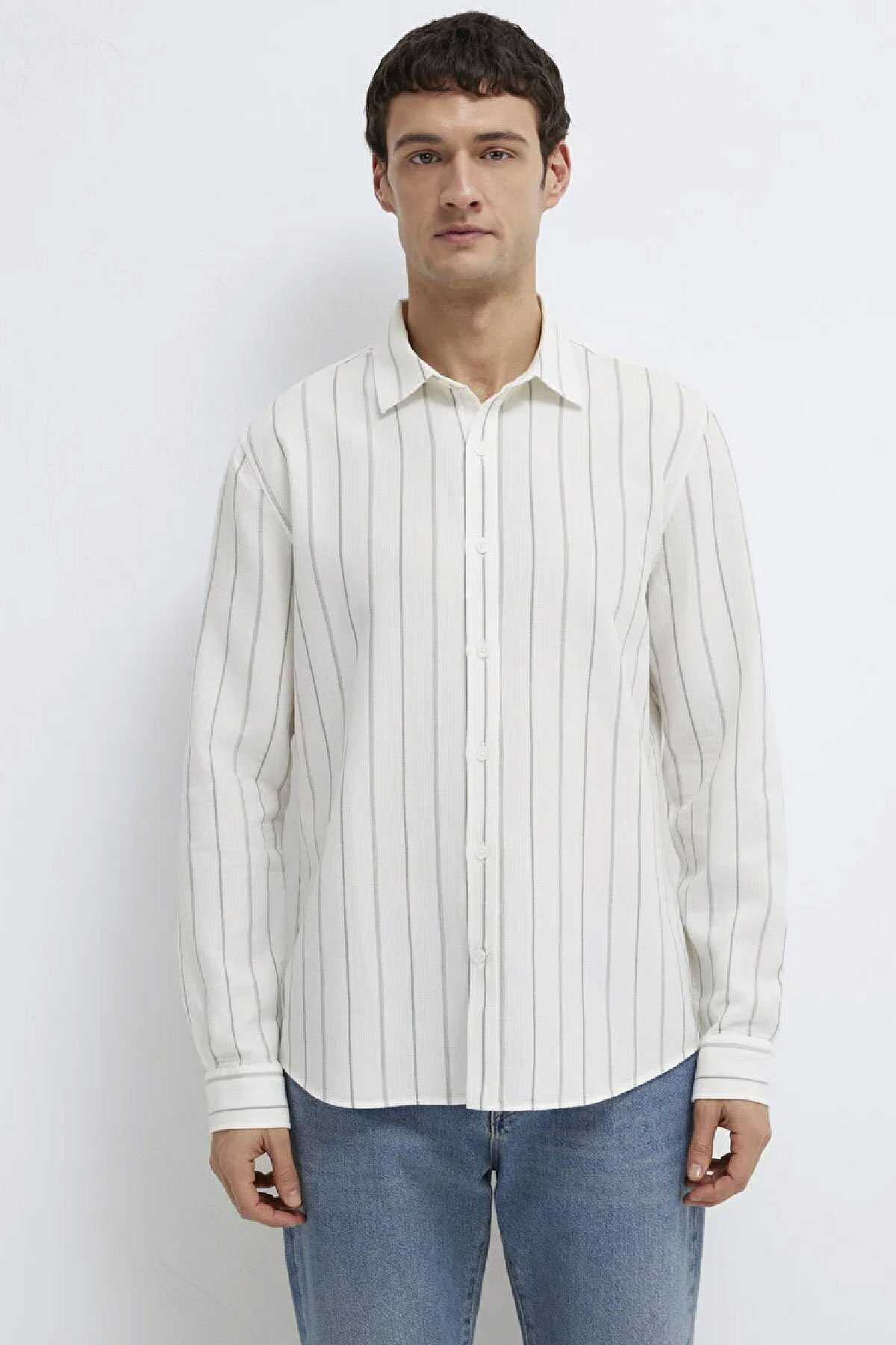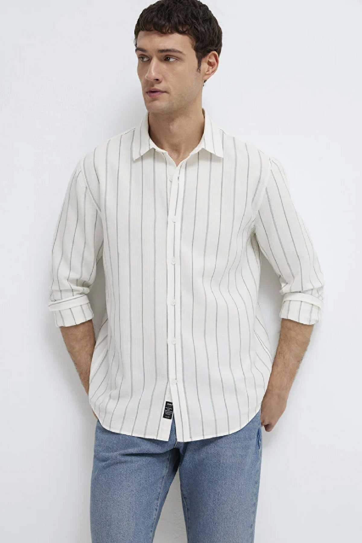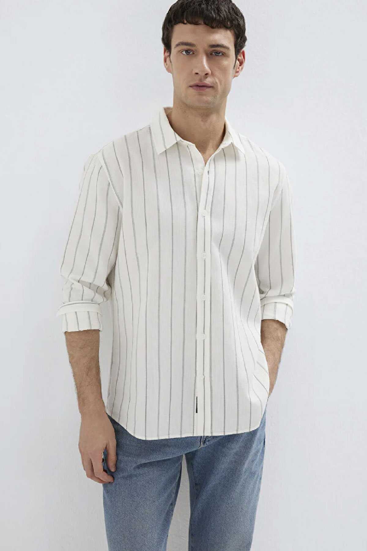 Mavi nin erkek koleksiyonundan Haki Çizgili Ekru Gömlek.-Regular Fit Normal Kesim-%100 Pamuk-Manken Ölçüleri-Jean: Bel: 31 Boy: 32 Üst: L-Boy: 189.5 cm Bel: 79 cm Göğüs: 97 cm Kalça: 97 cm-Ürün Kodu: 0211384-80692-Menşei: Türkiye