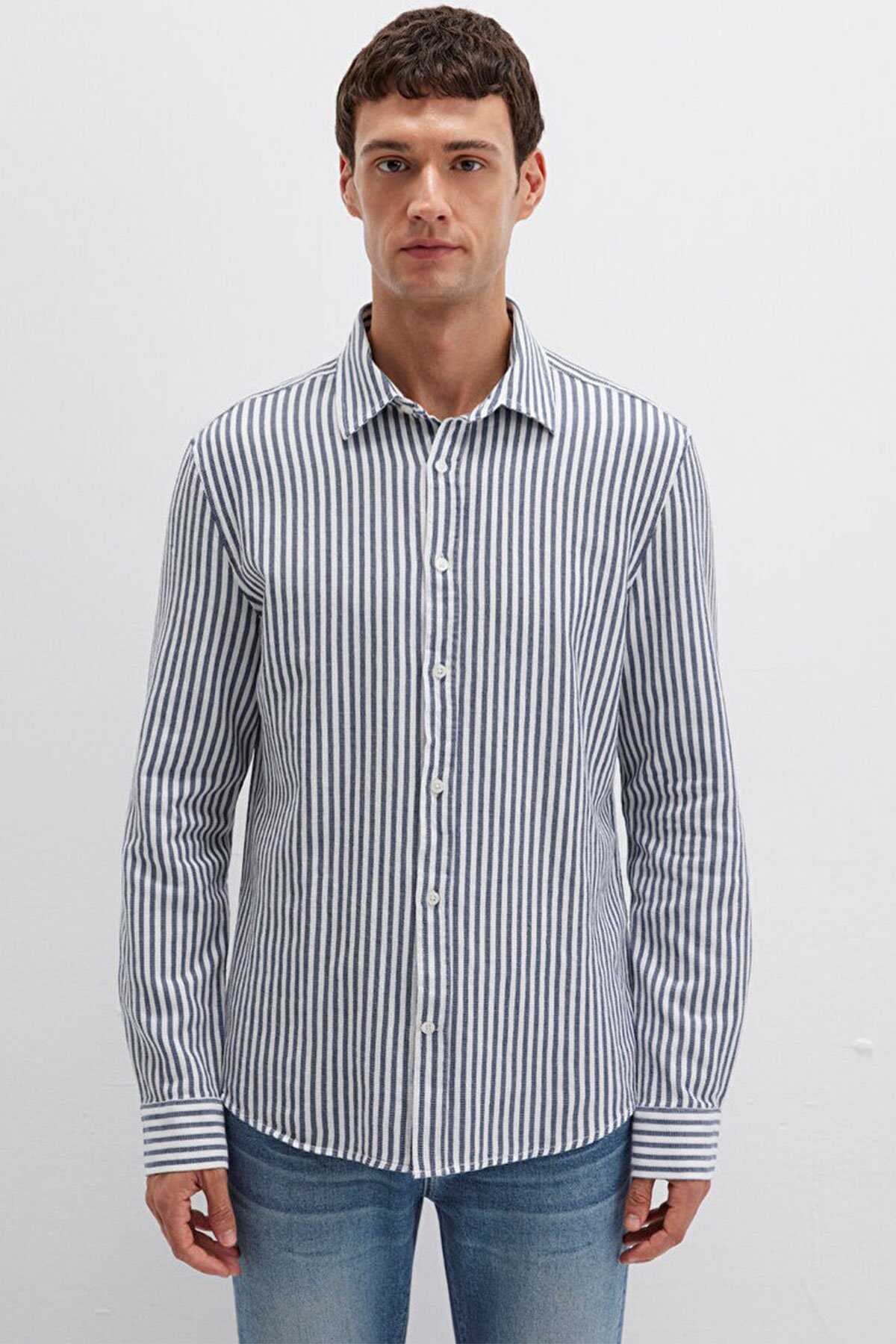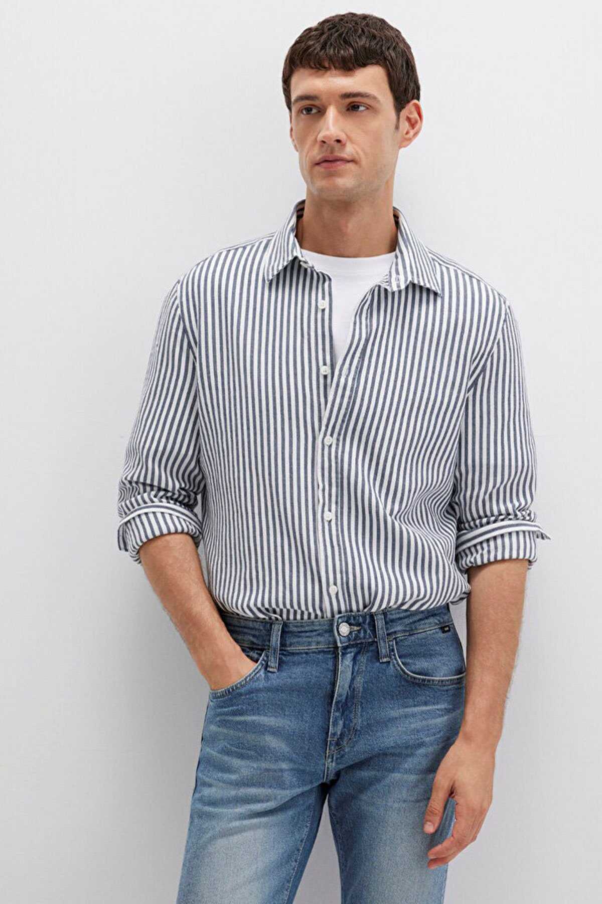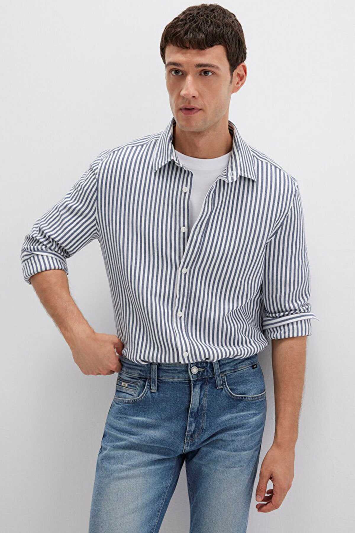 Mavi nin erkek koleksiyonundan Çizgili Lacivert Gömlek. - Slim Fit Dar Kesim - Ürün Kodu: 0211692-90911 - Kumaş Bilgileri - %100 Pamuk - Manken Ölçüleri - Jean: Bel: 31 Boy: 31 Üst: L - Boy: 189.5 cm Bel: 80 cm Göğüs: 98 cm Kalça: 98 cm - Menşei: Türkiye