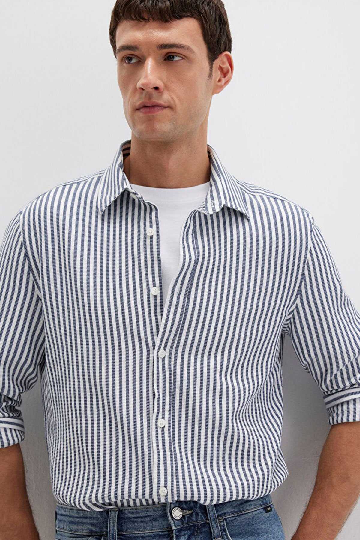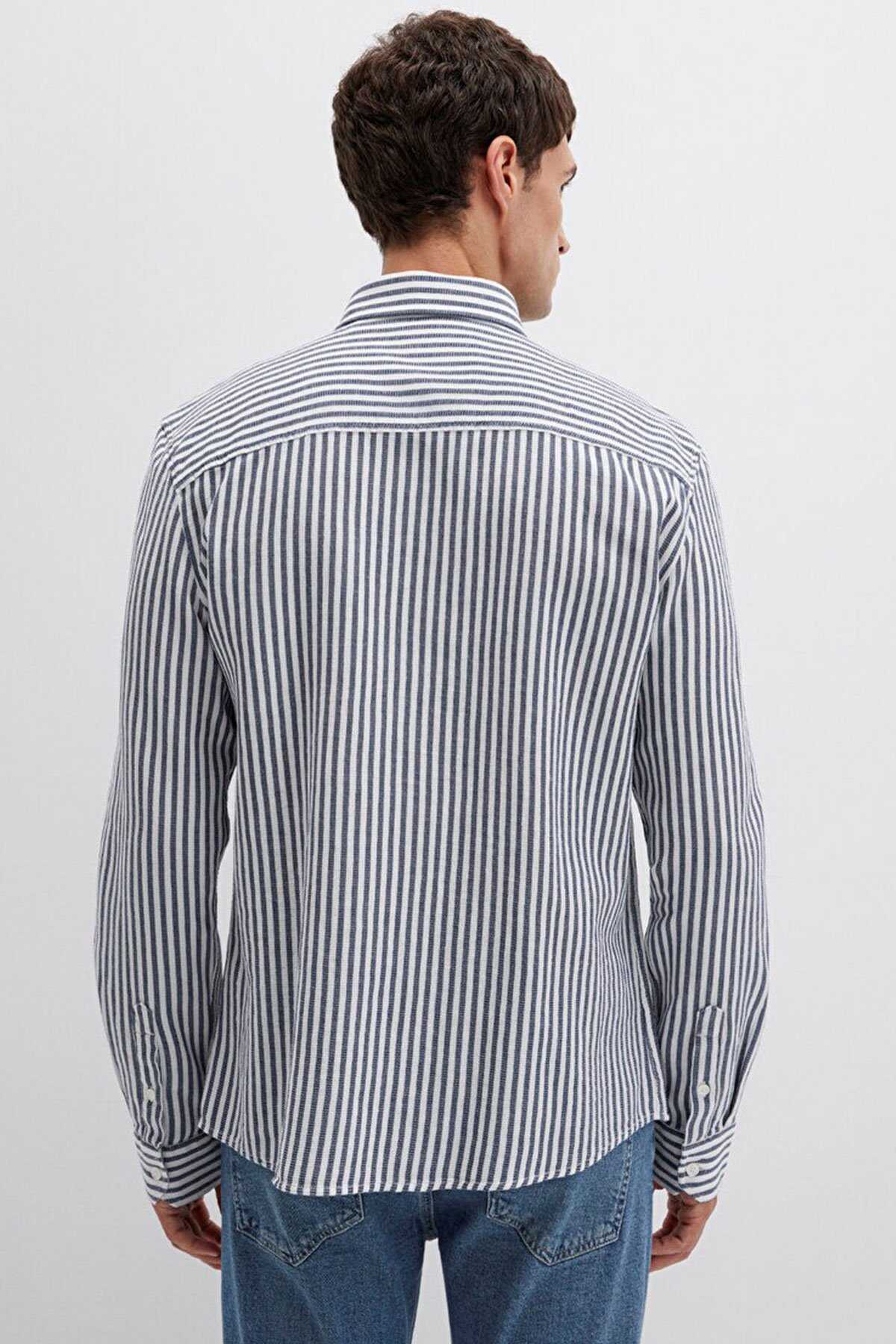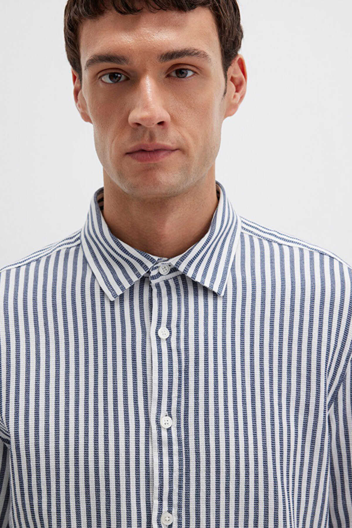 Mavi nin erkek koleksiyonundan Çizgili Lacivert Gömlek. - Slim Fit Dar Kesim - Ürün Kodu: 0211692-90911 - Kumaş Bilgileri - %100 Pamuk - Manken Ölçüleri - Jean: Bel: 31 Boy: 31 Üst: L - Boy: 189.5 cm Bel: 80 cm Göğüs: 98 cm Kalça: 98 cm - Menşei: Türkiye