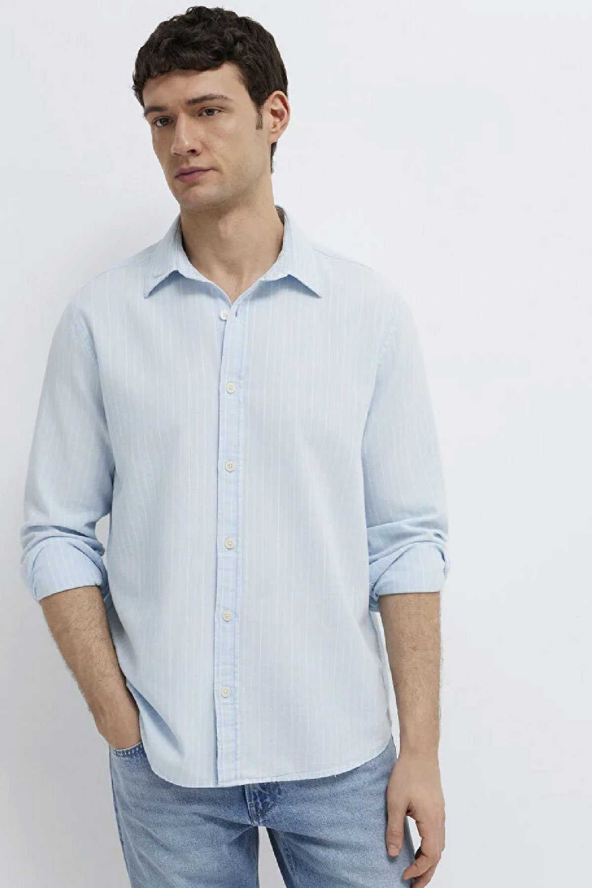 Mavi nin erkek koleksiyonundan Çizgili Gömlek.-Regular Fit Normal Kesim-%100 Pamuk-Manken Ölçüleri-Jean: Bel: 31 Boy: 31 Üst: L-Boy: 189.5 cm Bel: 79 cm Göğüs: 97 cm Kalça: 97 cm-Ürün Kodu: 0211967-91540-Menşei: Türkiye