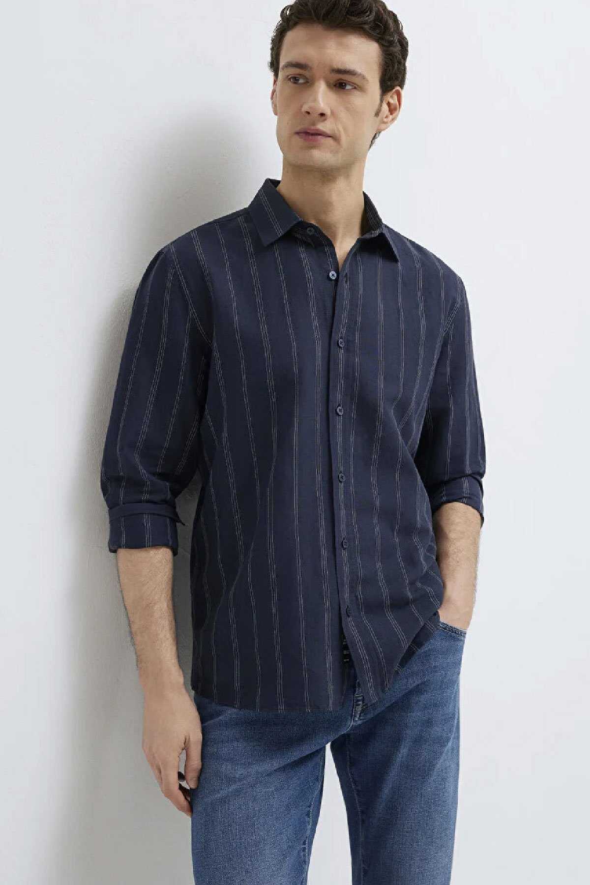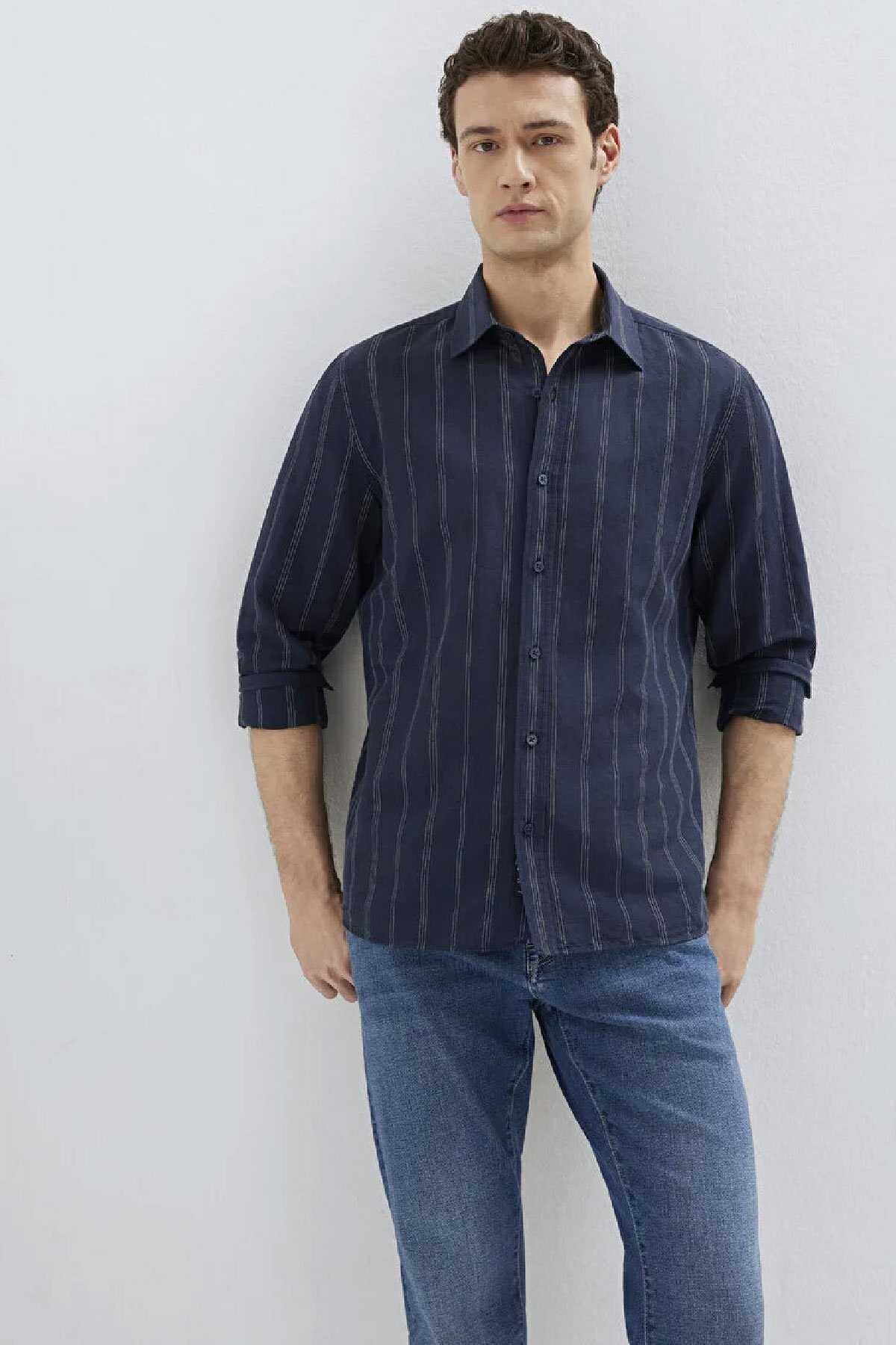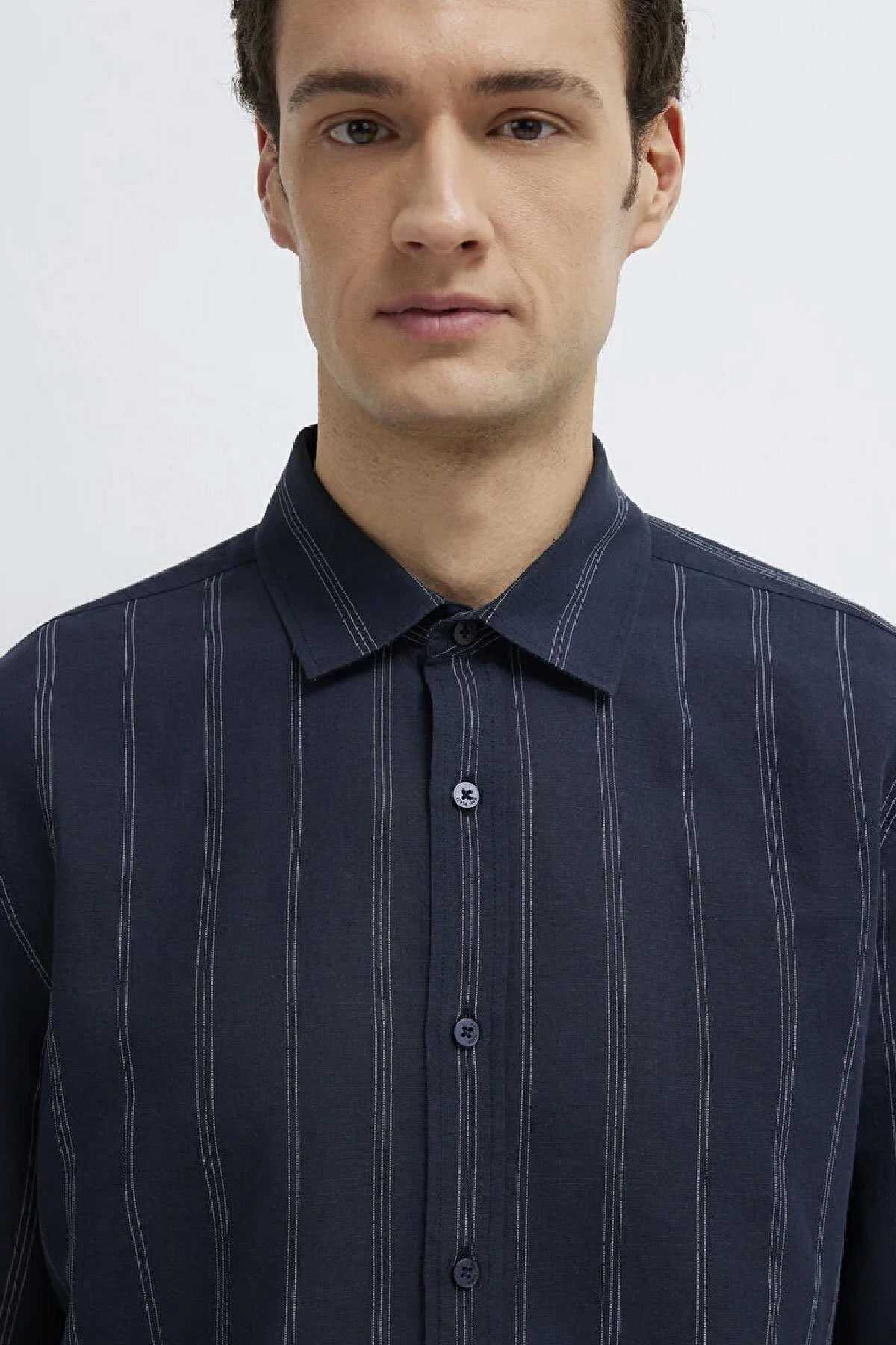 Mavi Black koleksiyonundan Keten Karışımlı Lacivert Gömlek.Mavi Black farklı tekniklerle zenginleştirilen güçlü logo detayları ve zamansız tasarımlarıyla şehirli erkeğin stilini modern bir çizgide yorumluyor- Modal ve Lyocell karışımlı yumuşak kumaşlar rahat kesimlerle birleşerek şıklığı konforla buluşturuyor.-Regular Fit Normal Kesim-%50 Keten-%50 Pamuk-Manken Ölçüleri-Jean: Bel: 31 Boy: 32 Üst: L-Boy: 189.5 cm Bel: 79 cm Göğüs: 97 cm Kalça: 97 cm-Ürün Kodu: 0211979-91592