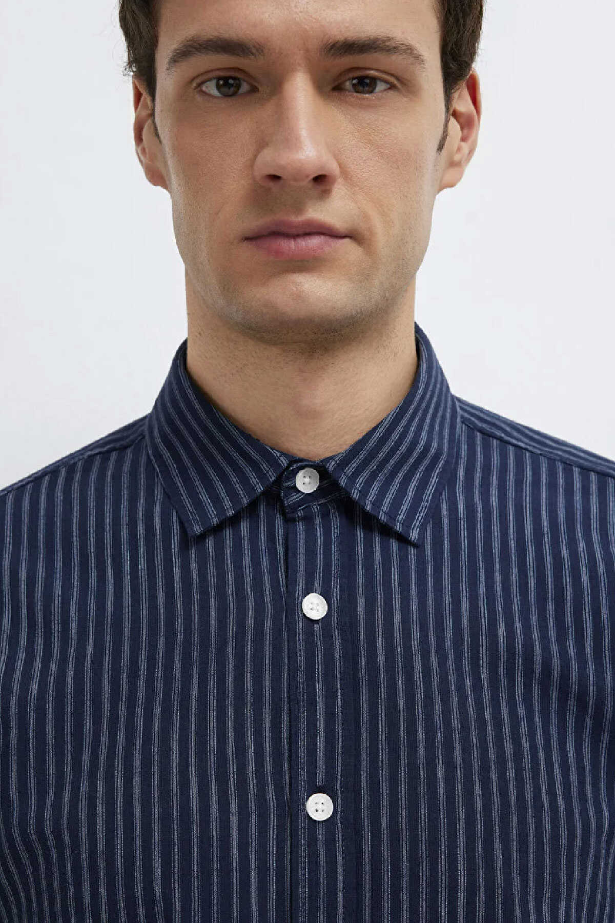 Mavi nin erkek koleksiyonundan Keten Karışımlı Lacivert Gömlek.Doğal bir elyaf olan keten kumaşlar diğer kumaş türlerine göre çok daha dayanıklıdır.-Nemi hapseden yapısıyla ve iri gözenekli dokumasıyla vücuda hava aldırır.-Yansıtıcı özelliği sayesinde de güneşte renk solması gibi şikayetleri minimuma indiren ketenlerle yaz mevsiminde hem serin hem de cool kalın.-Regular Fit Normal Kesim-%92 Pamuk-%7 Polyester-%1 Keten-Manken Ölçüleri-Jean: Bel: 31 Boy: 31 Üst: L-Boy: 189.5 cm Bel: 79 cm Göğüs: 97 cm Kalça: 97 cm-Ürün Kodu: 0212004-91566-Menşei: Türkiye