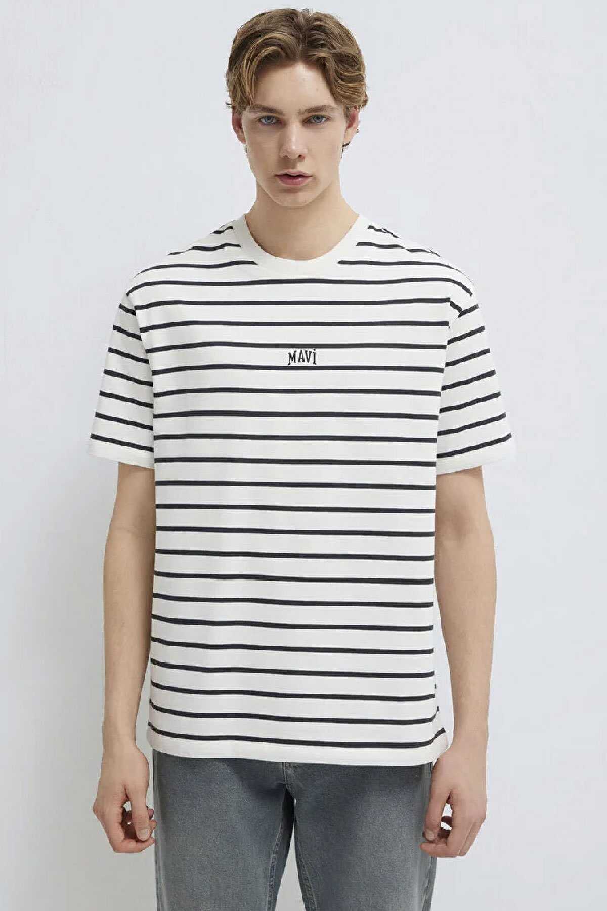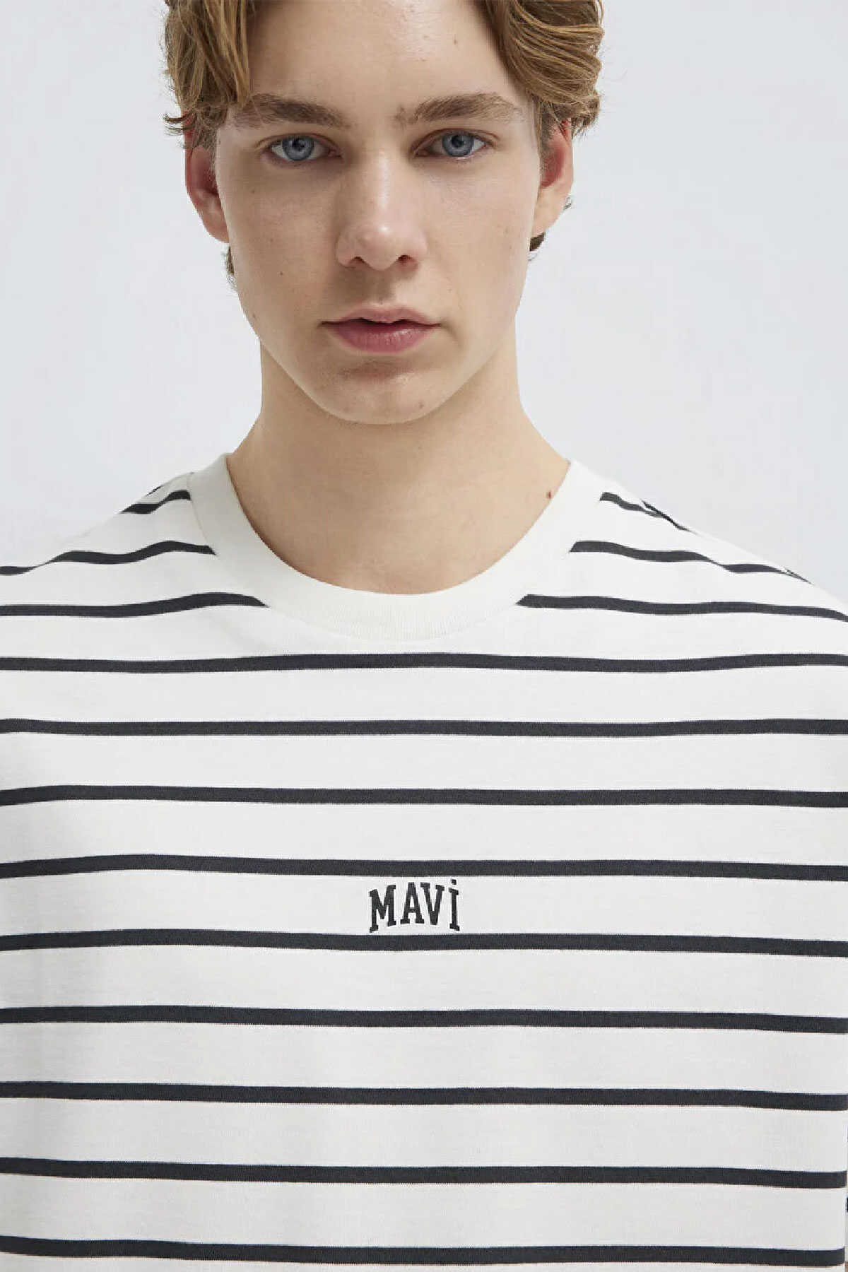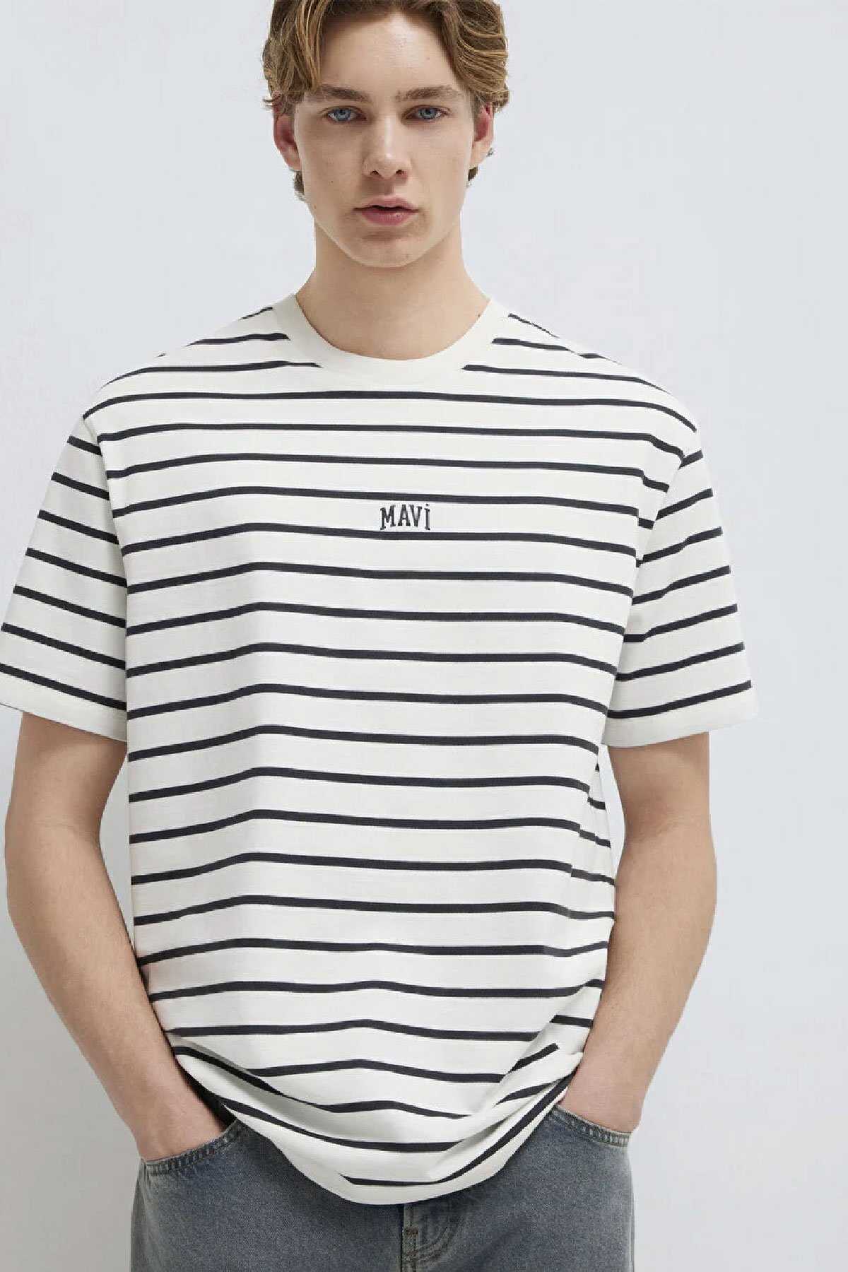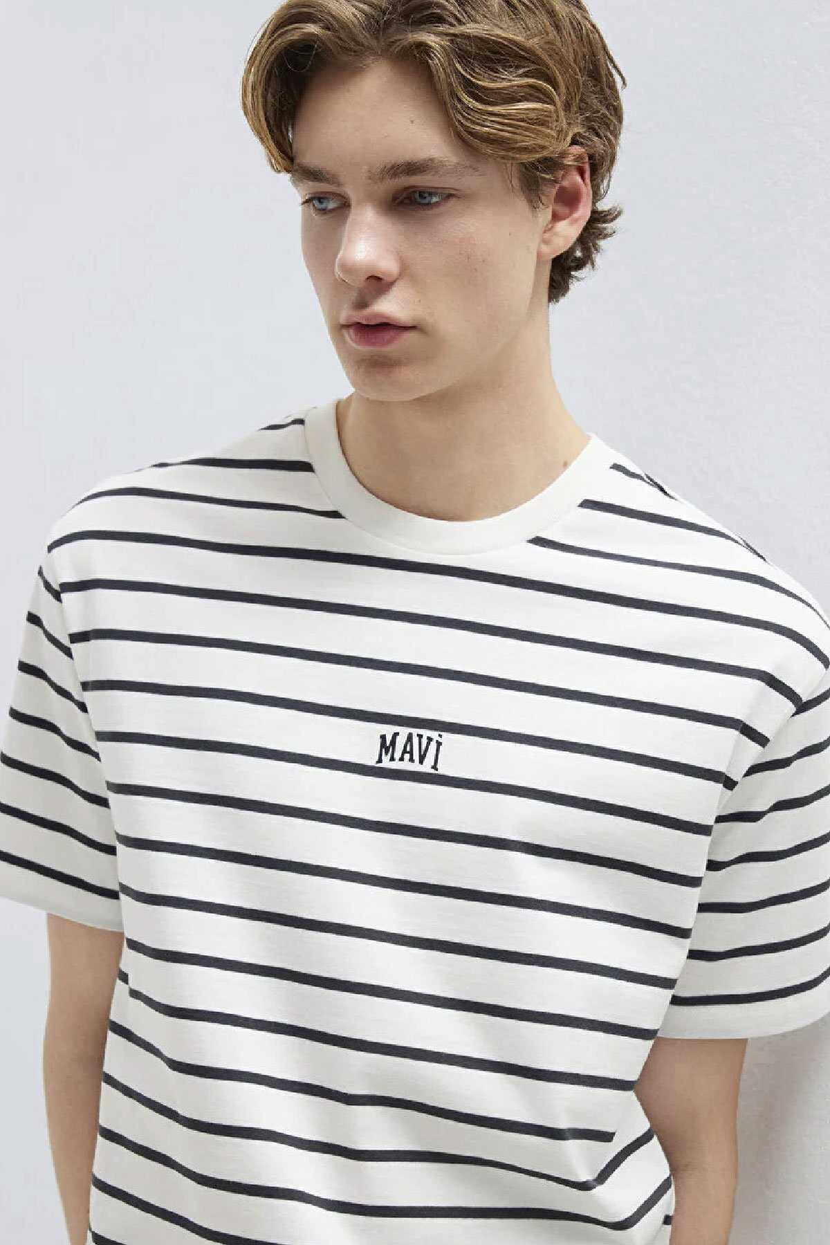 Mavi nin erkek koleksiyonundan Mavi Logo Baskılı Çizgili Beyaz Tişört.-Loose Fit Bol Rahat Kesim-%100 Pamuk-Manken Ölçüleri-Jean: Bel: 31 Boy: 32 Üst: L-Boy: 190 cm Bel: 77 cm Göğüs: 96 cm Kalça: 94 cm-Ürün Kodu: 0612420-86678-Menşei: Türkiye