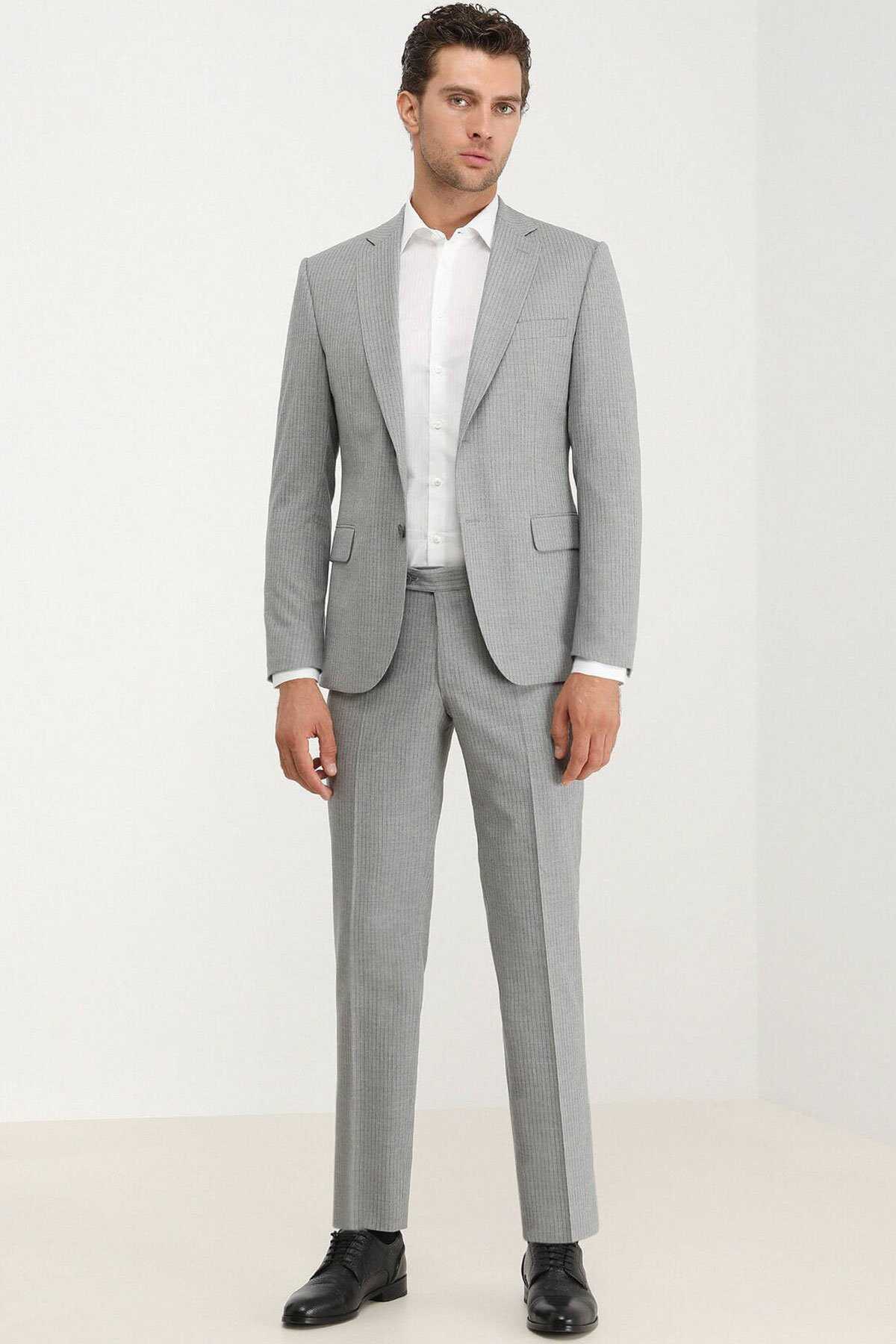 Takım Elbise-Desen: Çizgili-Line: Klasik-Yaka: Kelebek Yaka-Paça: Klasik Paça-Fit: Modern Fit-Yırtmaç: Tek Yırtmaç-İç Astar: Tam Astarlı-Çalışma Tipi: Normal-Cep: Kapaklı Cep-Karışım: %64 Polyester %33 Viskon %3 Elastan-Article: TKM-2687