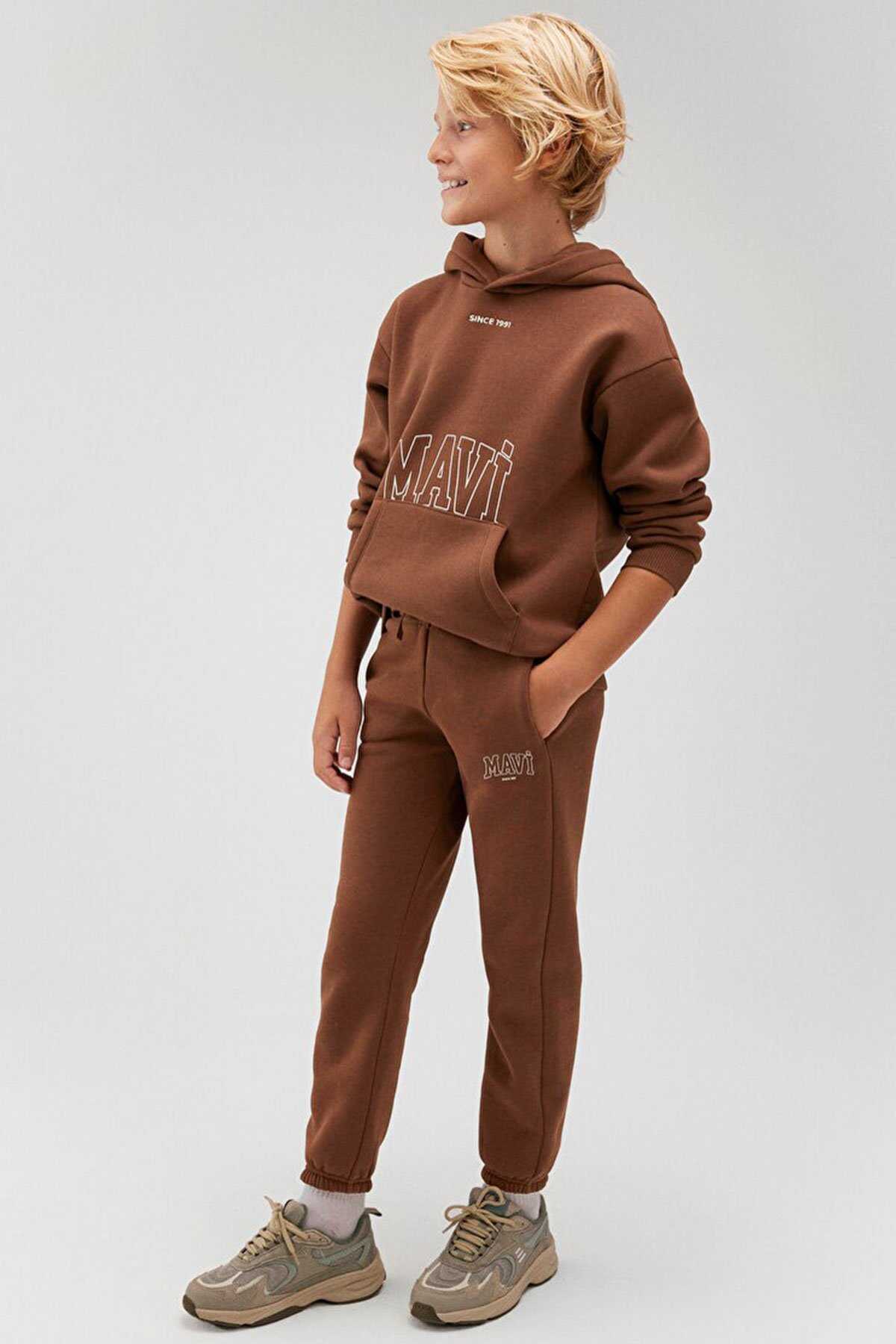 Mavi nin erkek çocuk koleksiyonundan Mavi Logo Baskılı Kahverengi Eşofman Altı-Şardonlu-İki adet yan cep-İple ayarlanabilir bel-Lastik paça-Ürün Kodu: 6010009-70243-Kumaş Bilgileri-%63 Pamuk-%37 Polyester-Manken Ölçüleri-Jean: Bel: 9-10 Yaş Üst: 7-8 Yaş