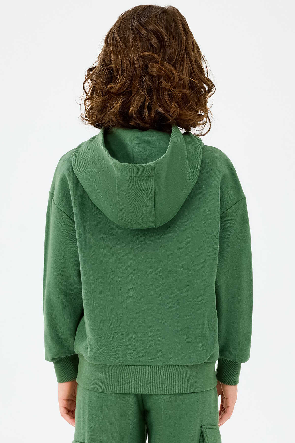 %85 organik pamuk ve %15 polyester karışımıyla yumuşak ve rahat bir kullanım sunar. - Regular kalıp tasarımı ve kapüşonlu yapısı sayesinde çocukların günlük aktivitelerinde hem konforlu hem de şık bir tercih oluşturur. - Ürün Kodu: SK2520089-1629 - Menşei: Türkiye