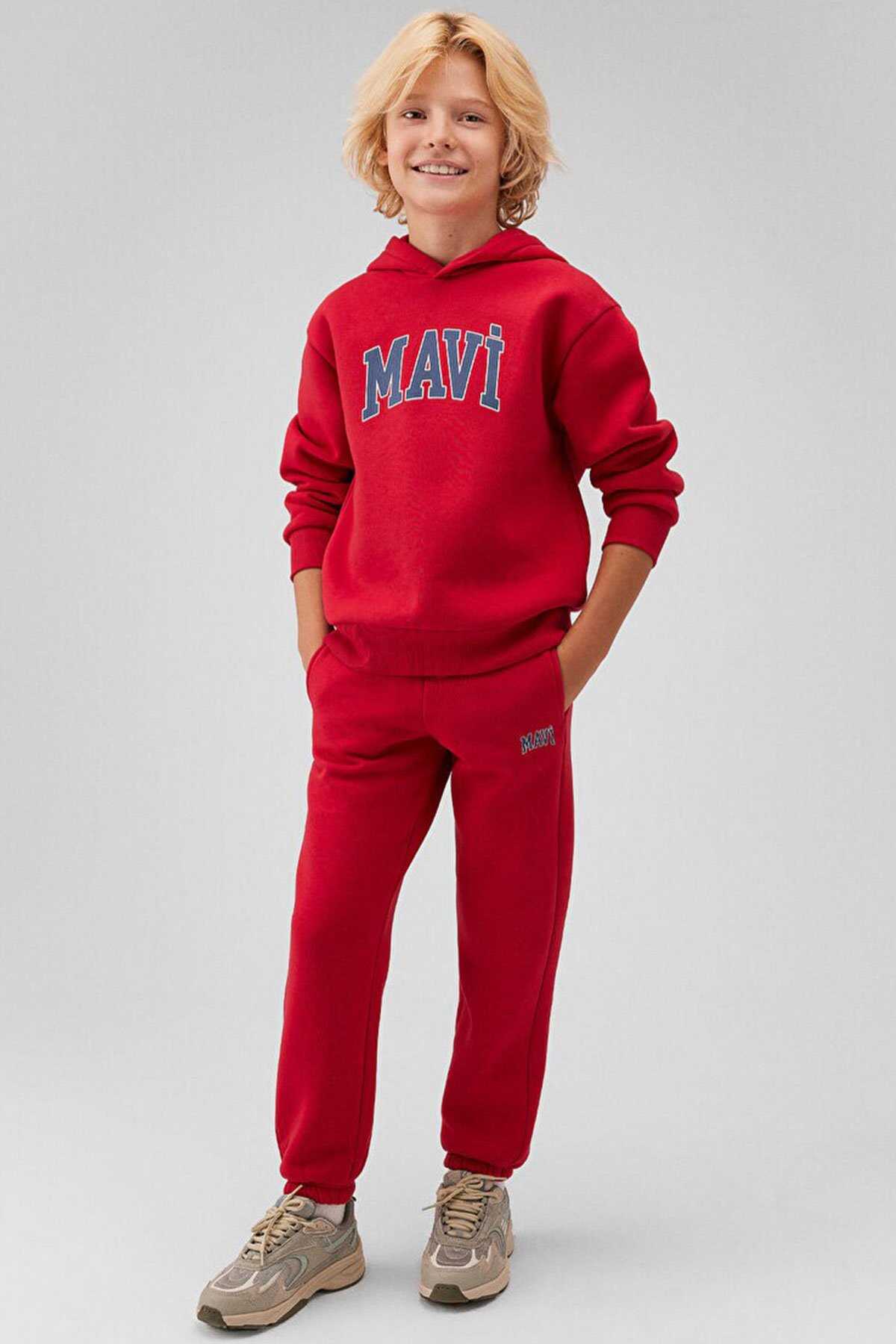 Mavi nin erkek çocuk koleksiyonundan Mavi Logo Baskılı Kırmızı Eşofman Altı-Şardonlu-İki adet yan cep-İple ayarlanabilir bel-Lastik paça.-Ürün Kodu: 6010000-70464-Menşei: Türkiye