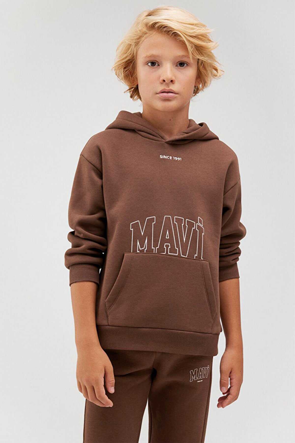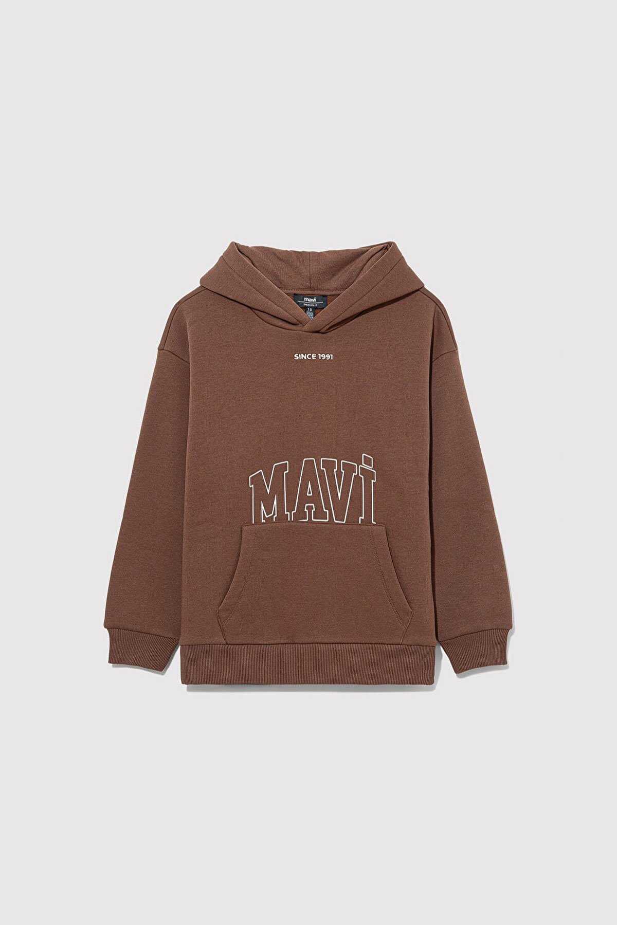 Mavi nin erkek çocuk koleksiyonundan Kahverengi Sweatshirt-Şardonlu-Kapüşonlu-İçi şardonlu kanguru cep-Ürün Kodu: 6S10053-70243-Kumaş Bilgileri-%63 Pamuk-%37 Polyester-Manken Ölçüleri-Jean: Bel: 9-10 Yaş Üst: 7-8 Yaş