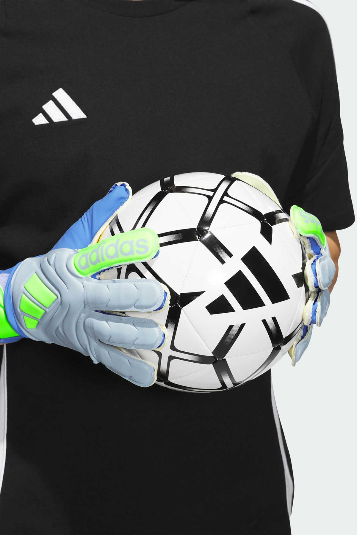 adidas Copa Club kaleci eldivenleriyle kale direkleri arasında klasınızı gösterin. - Esnek backhand her hareketi konforlu hale getirirken elastik yarım bilek kayışı sayesinde sabit kalırsınız. - Parmaklar daha fazla alan isteyen kaleciler için pozitif kesimlidir. - Avuç içindeki Soft Grip lateks her türlü hava koşulunda güvenli tutuş sağlar. - Pozitif kesim - %65 polyester (geri dönüştürülmüş) %35 poliüretan - Avuç içi: Yumuşak Kavramalı lateks - Yarım sarmal bilek kayışı - Renk: Mavi Füzyon Halo Mavisi Berrak Limon - Ürün kodu: JH3790 - Menşei: Tunus