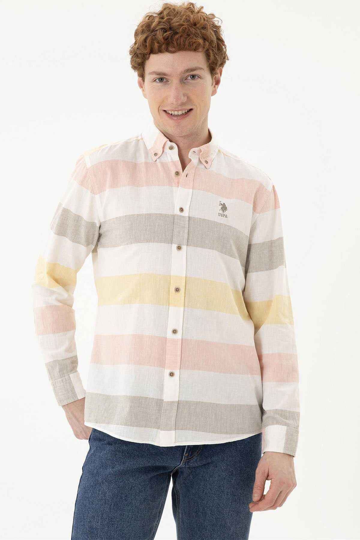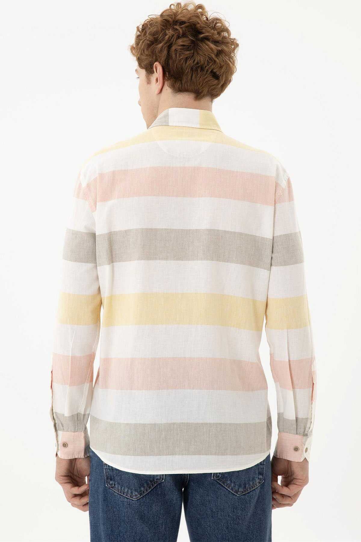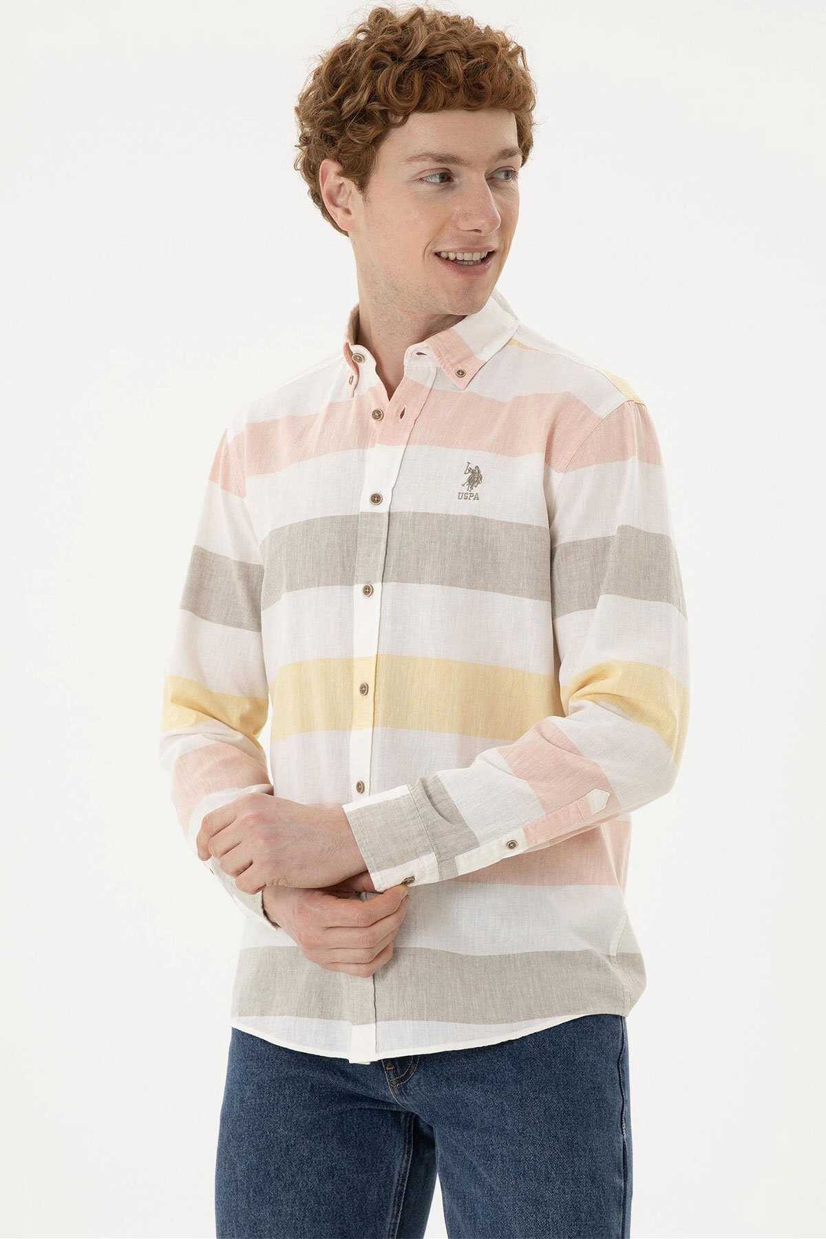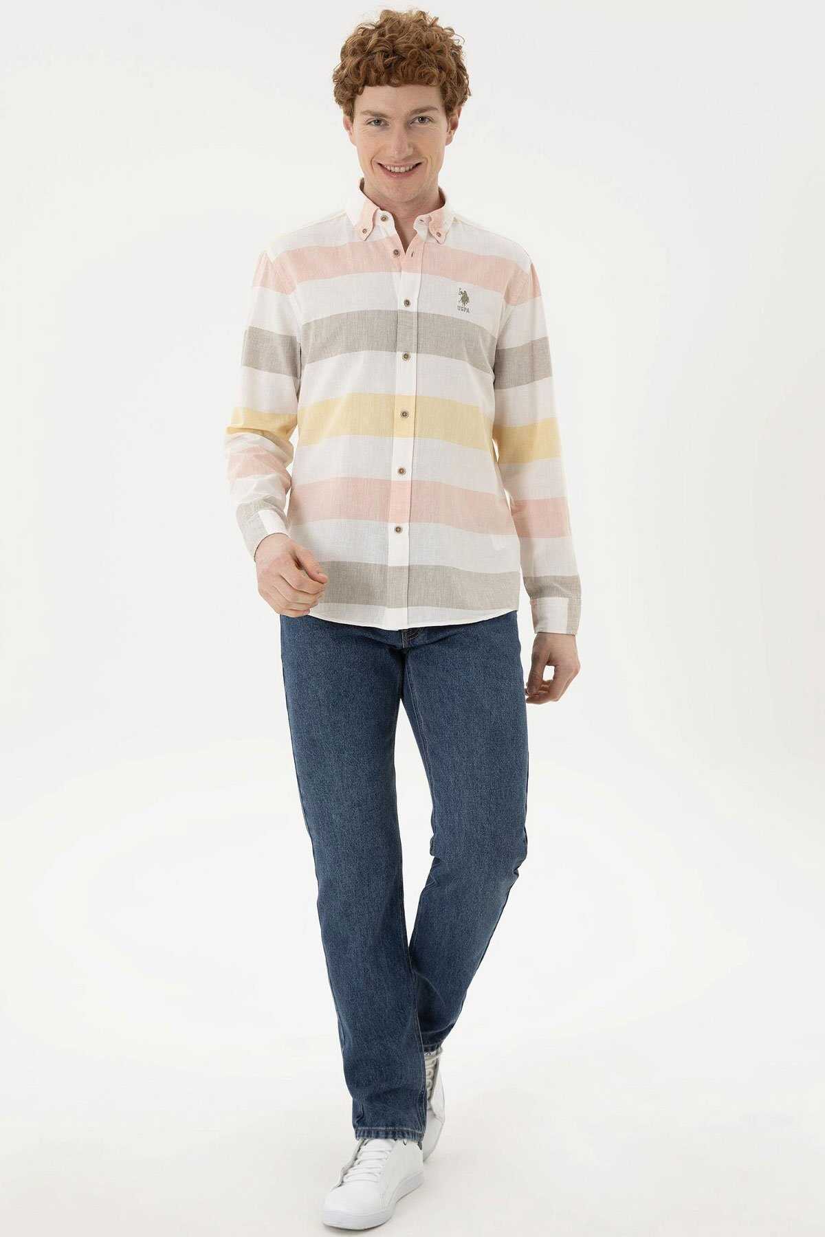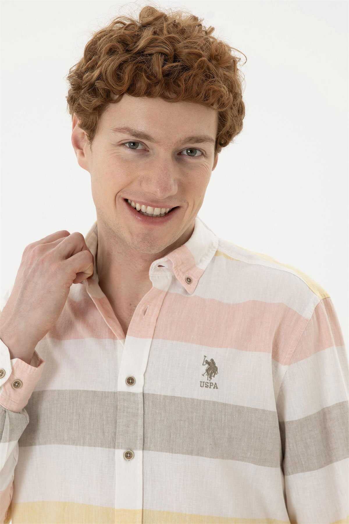 %70 Pamuk %30 Keten - 50283667-VR027-U.S. Polo Assn Yerli Üretim-Ürün Özellikleri:-Renk: Haki-Fit: Regular-Cinsiyet: Erkek-Model Bilgileri:-Boy: 187-Kilo: 76-Göğüs: 93-Bel: 80-Basen: 102-Beden: 48 .M .31-ÜrünBeden: M