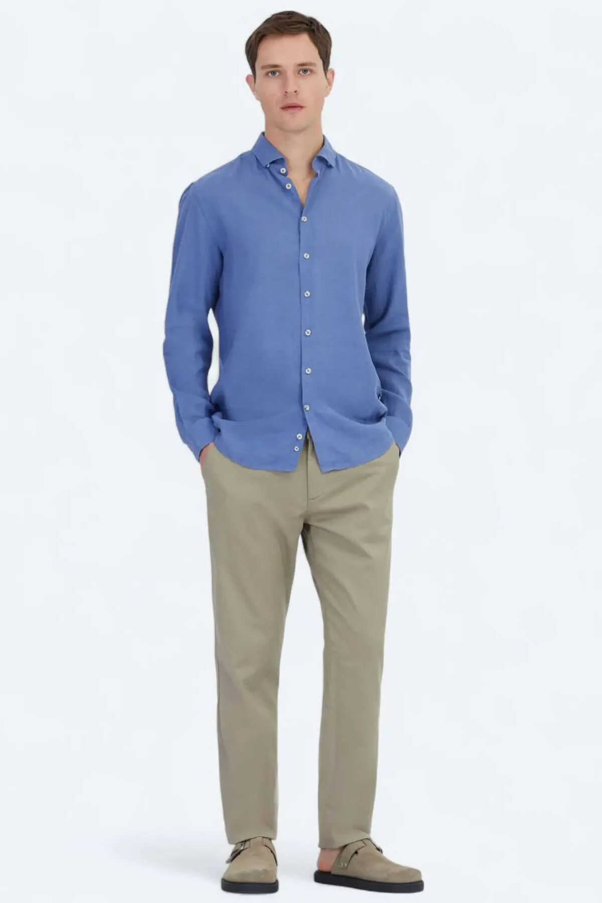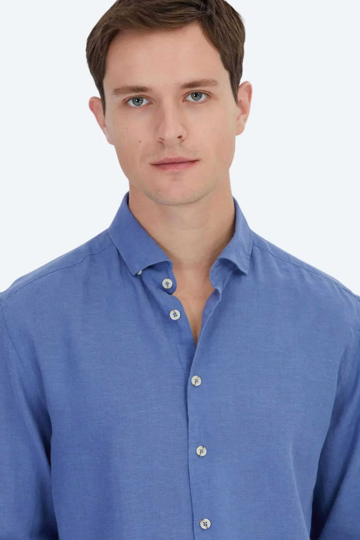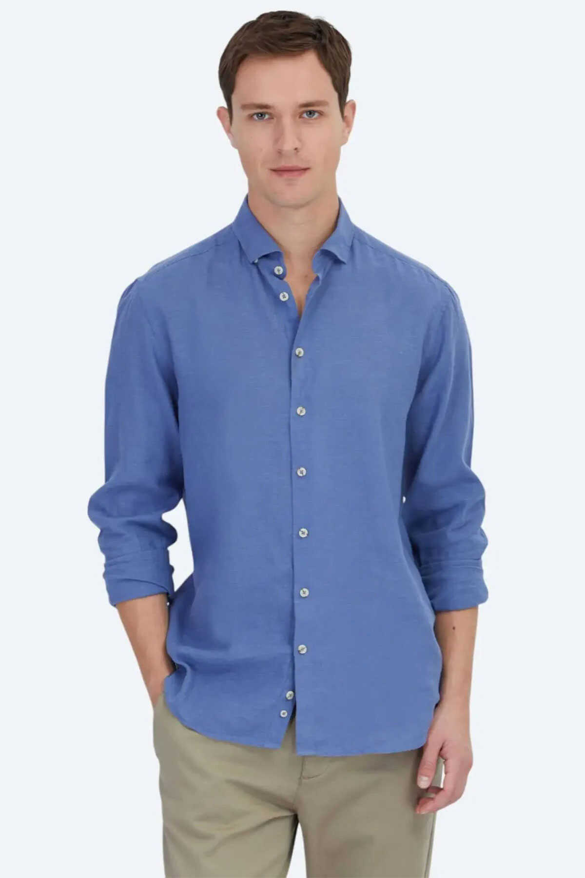 Gömlek-Desen: Düz-Line: Casual-Yaka: Alttan Britli Yaka-Karışım: %65 Keten %35 Pamuk-Sezon: Yaz-Manken: Boy: 188 cm Göğüs: 98 cm Bel: 77 cm Beden: 40-Article: GM-4638-Üretim Yeri: Mısır
