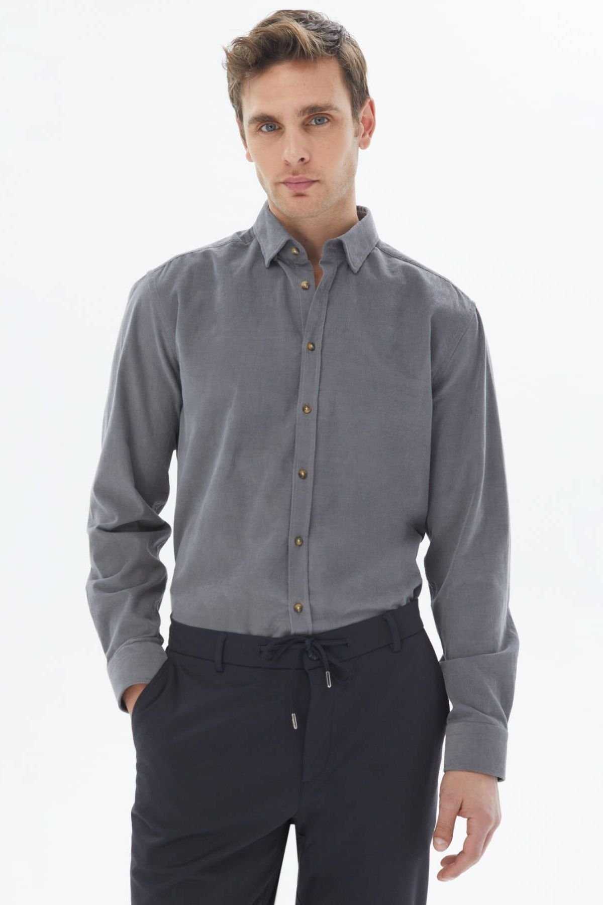 Gömlek-Desen: Fitilli-Line: Casual-Yaka: Alttan Britli Yaka-Doku: Kadife-Fit: Regular Fit-Karışım: %100 Pamuk-Article: GM-5591