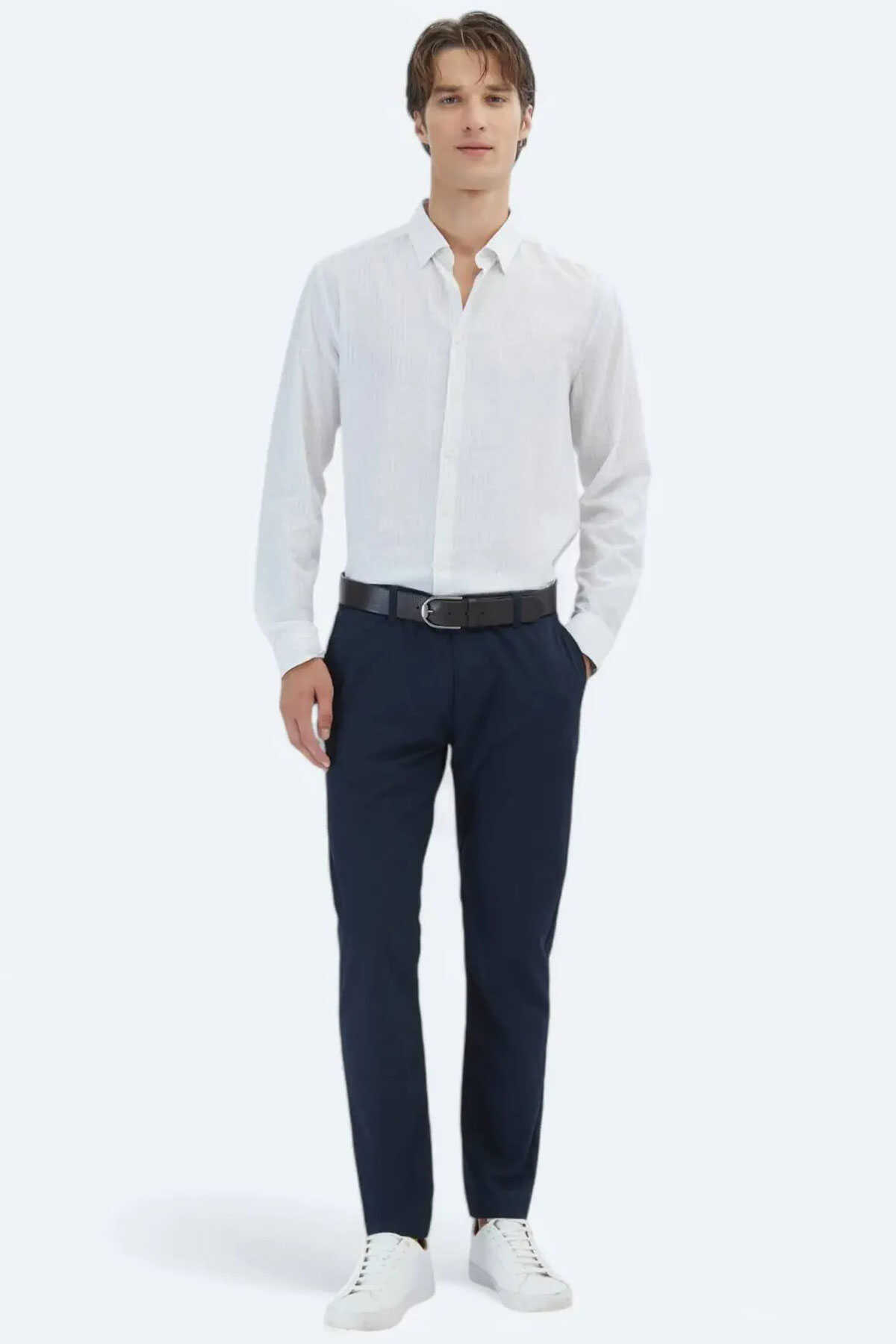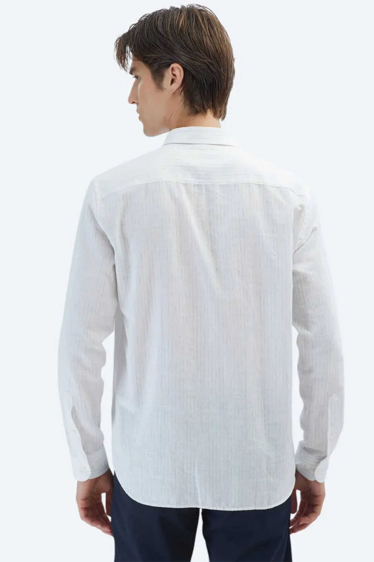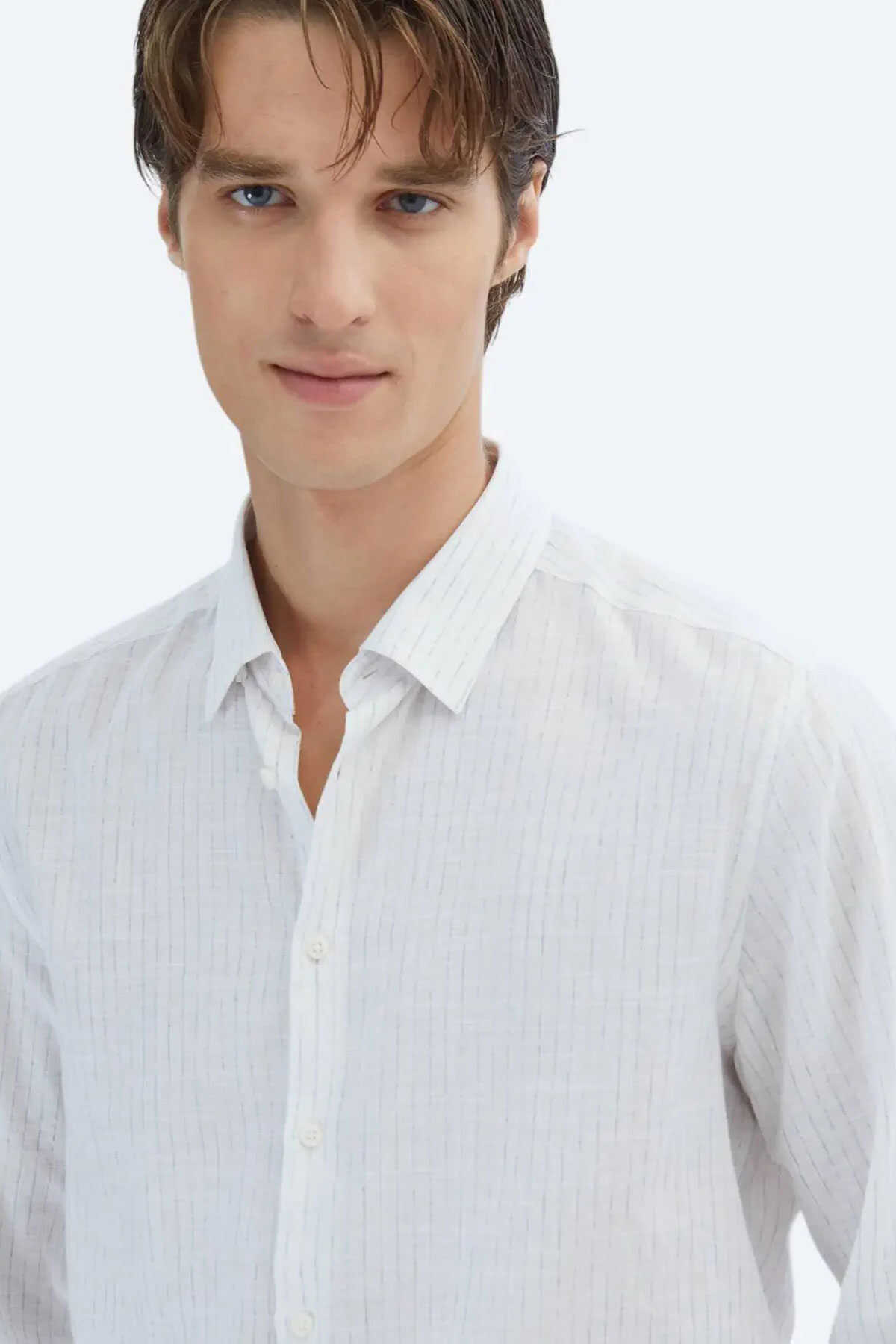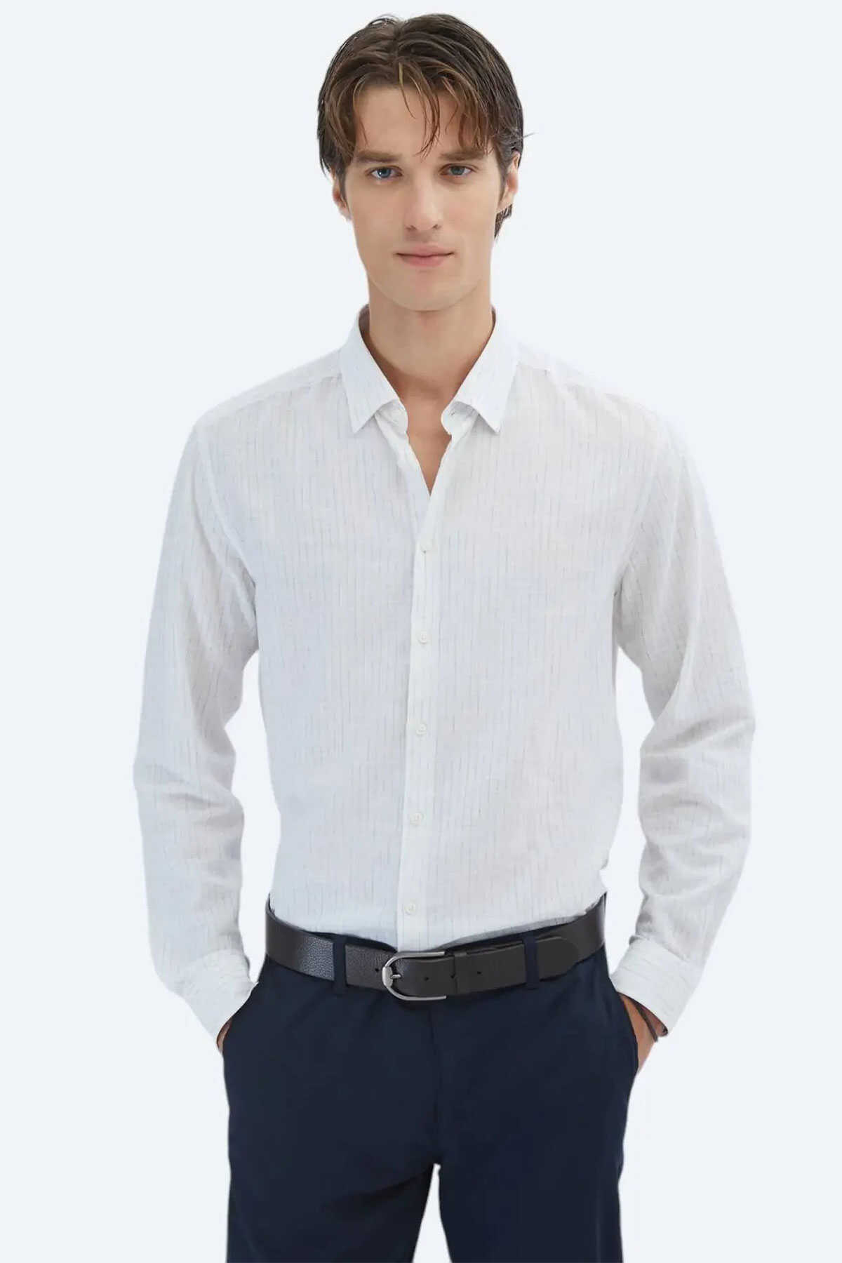Doğal tonların şıklığını yansıtan mavi çizgili deseniyle bu gömlek %100 pamuk dokusuyla gün boyu konfor sunar. -Regular fit kesimiyle rahat bir kullanım sağlarken casual stilinize modern bir dokunuş ekler. -Hem iş hem de günlük kombinlerinizde kolaylıkla tercih edebileceğiniz bu gömlek gardırobunuzun vazgeçilmez parçalarından biri olmaya aday.-Gömlek-Desen: Çizgili-Line: Casual-Yaka: Alttan Britli Yaka-Fit: Regular Fit-Karışım: %100 Pamuk-Sezon: Yaz-Manken: Boy: 189 cm Göğüs: 94 cm Bel: 77 cm Beden: 40-Üretim Yeri: Türkiye-Article: GM-5770