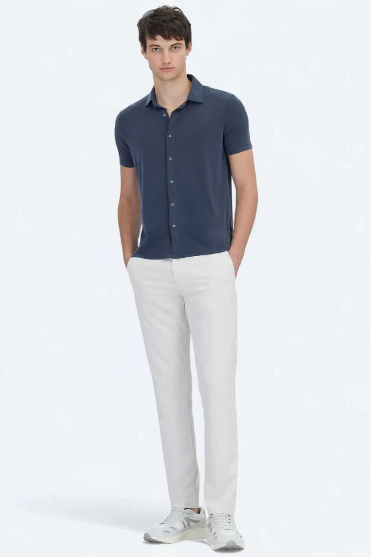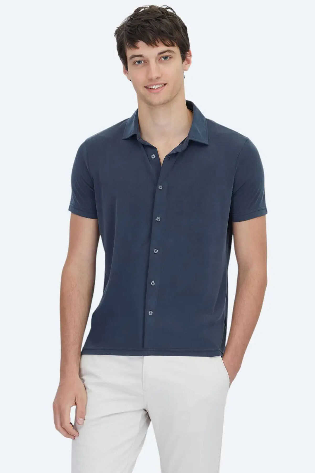 Antrasit rengi ve regular fit kalıbıyla fark yaratan bu gömlek özel günlerden gündelik stile kadar her ana uyum sağlar.-Açık renk keten pantolonlar ve beyaz sneaker’larla yazın hafif ve modern stilini tamamlayabilirsiniz.-Serin akşamlarda üzerine ince dokulu bir overshirt ekleyerek katmanlı bir görünüm de yaratabilirsiniz.-Gömlek-Desen: Düz-Line: Casual-Yaka: Klasik Yaka-Fit: Regular Fit-Karışım: %78 Modal %22 Polyester-Sezon: Yaz-Üretim Yeri: Türkiye-Article: GM-5875