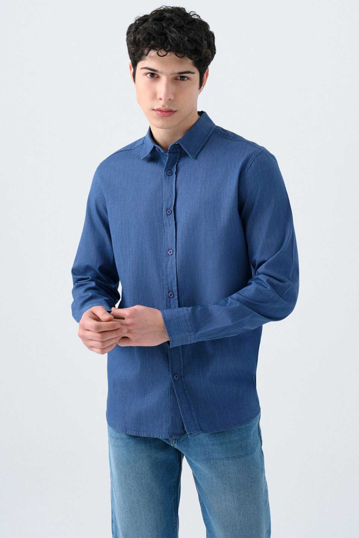 Erkek Gömlek LF2038615 Mavi