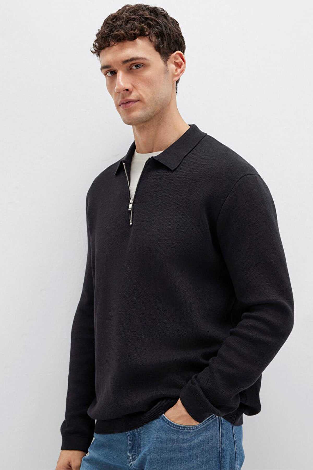 Mavi nin erkek koleksiyonundan Fermuarlı Siyah Triko Polo. - Regular Fit Normal Kesim - Ürün Kodu: 0710337-900 - Kumaş Bilgileri - %100 Pamuk - Manken Ölçüleri - Jean: Bel: 31 Boy: 32 Üst: L - Boy: 189.5 cm Bel: 80 cm Göğüs: 98 cm Kalça: 98 cm - Menşei: Türkiye