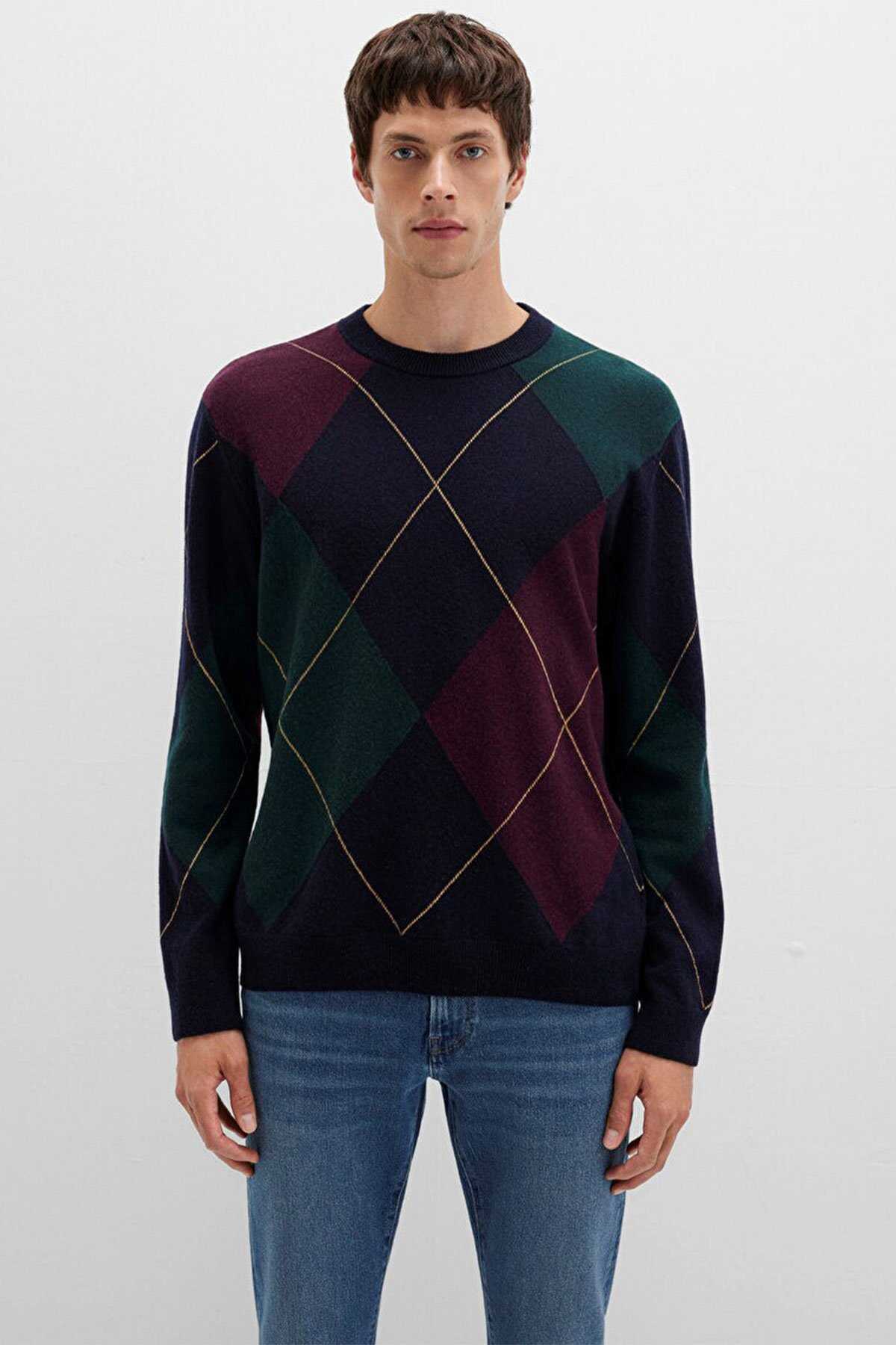 Mavi nin erkek koleksiyonundan Yün Karışımlı Baklava Desenli Lacivert Kazak. - Regular Fit Normal Kesim - Ürün Kodu: 0710334-70497 - Kumaş Bilgileri - %80 Yün - %20 Polyamit - Manken Ölçüleri - Jean: Bel: 31 Boy: 32 Üst: L - Boy: 189 cm Bel: 78 cm Göğüs: 95 cm Kalça: 91 cm - Menşei: Türkiye