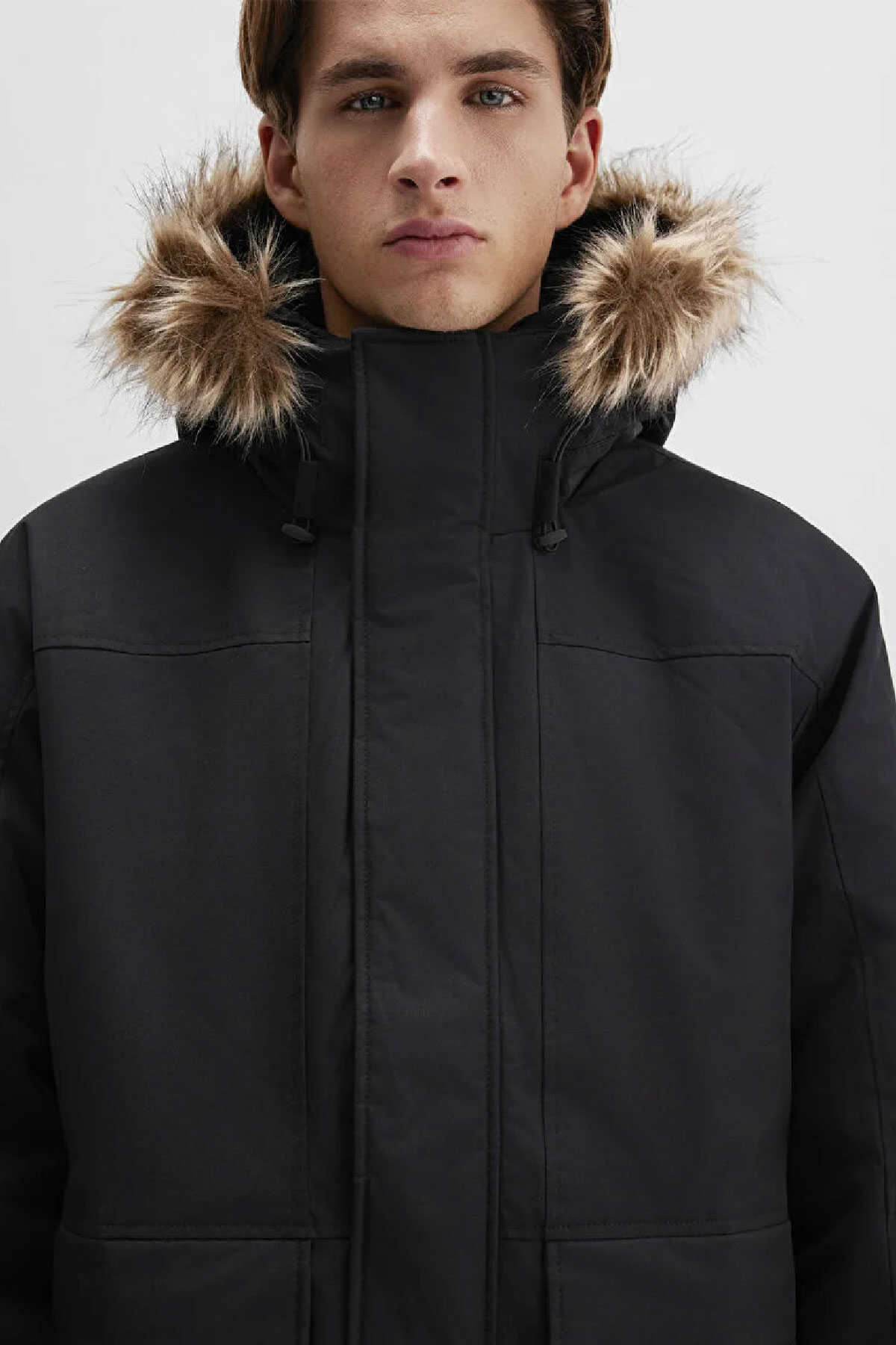 Mavi nin dış giyim koleksiyonundan Kapüşonlu Siyah Parka.-İki adet yan cep iki adet çıt çıtlı kapaklı ön cep stoperli iple ayarlanabilir sabit kapüşon fermuar ile çıkabilir kürk cırt cırtla ayarlanabilir manşet bir adet iç cep.-Ürün Kodu: 0110472-900-Kumaş Bilgileri-Kumaş: %100 Polyester-Astar 1: %100 Polyamit-Astar 2: %100 Polyester-Dolgu: %100 Polyester-İmitasyon Kürk: %48 Polyester %42 Akrilik %10 Modakrilik-Manken Ölçüleri-Jean: Bel: 31 Boy: 31 Üst: L-Boy: 190 cm Bel: 74 cm Göğüs: 92 cm Kalça: 90 cm-Menşei: Çin
