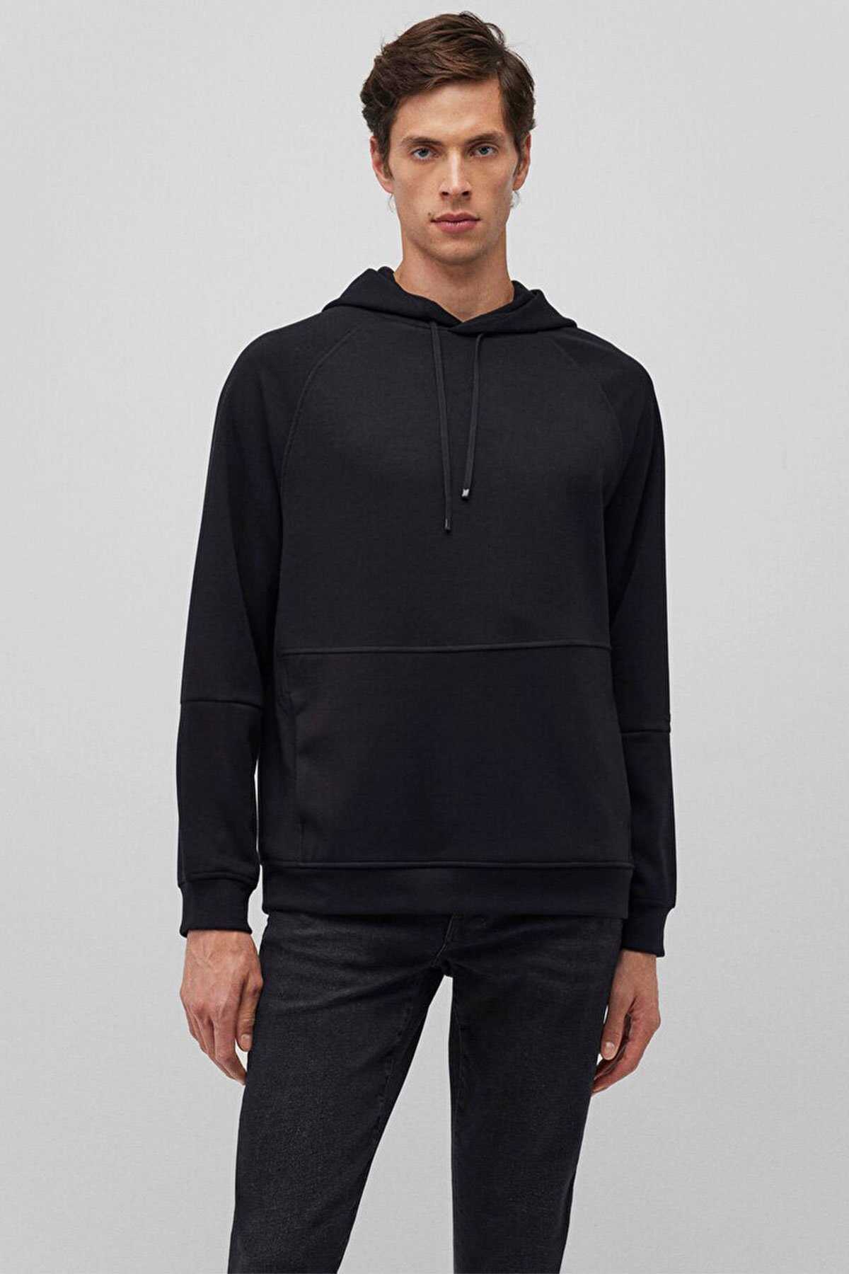 Mavi Black koleksiyonundan Kapüşonlu Siyah Sweatshirt. -Şardonsuz iple ayarlanabilir kapüşon kanguru cep. -Mavi nin karakteristik serisi Black farklı tekniklerle zenginleştirilen logo uygulamalarıyla premium bir görünüm sunuyor. -Tencel karışımlı kumaşlar oversize kesimler şık ve zamansız parçalarda hayat bulan yeni Mavi Black koleksiyonu şehirli erkeğin stil kodlarını yeniden tanımlıyor.-Regular Fit Normal Kesim-Ürün Kodu: 0S10250-900-Kumaş Bilgileri-%78 Polyester-%15 Viskoz-%7 Elastan-Manken Ölçüleri-Jean: Bel: 31 Boy: 32 Üst: L-Boy: 189 cm Bel: 78 cm Göğüs: 95 cm Kalça: 91 cm