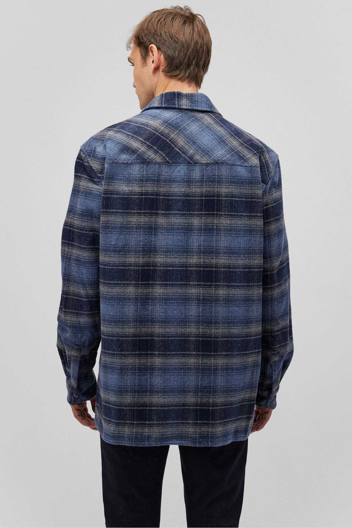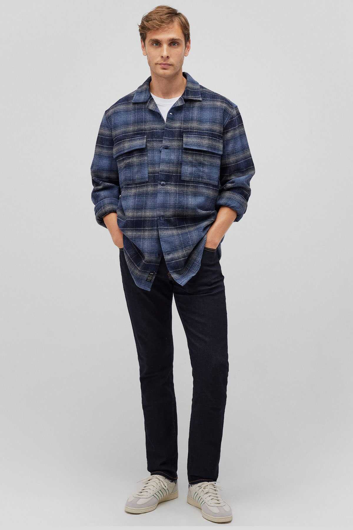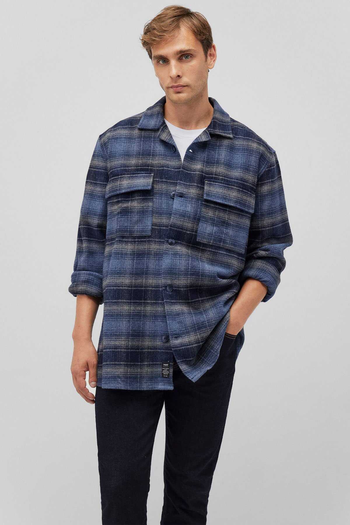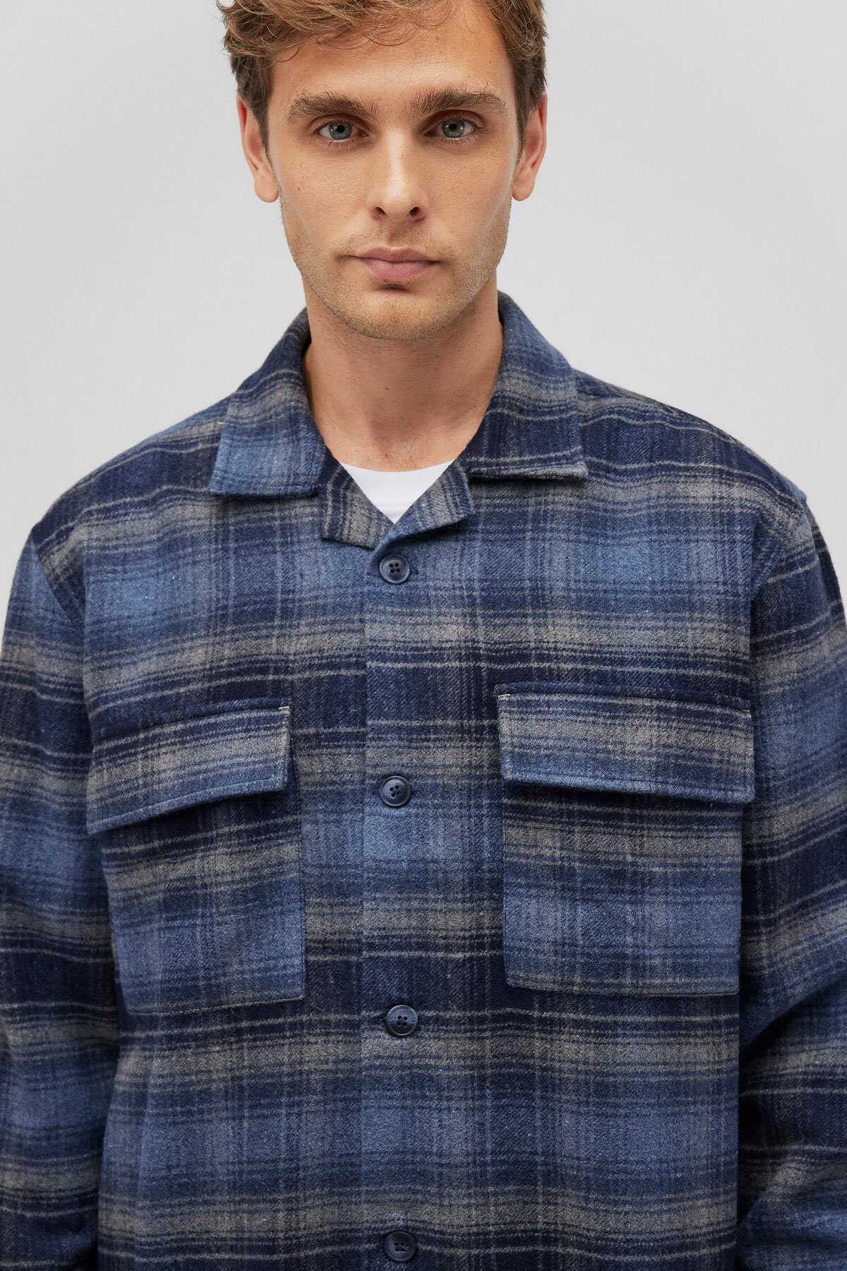 Gevşek kesim uzun kollu-%80 poliakrilonitril-%11 polyester-%5 pamuk-%2 viskon-%1 poliamid-Yama göğüs cepli ve düğme patlı ince ceket-Malzemelerin hoş karışımı-Mavi logo yamalı kontrol deseni-Ürün Kodu: 0211264-88665
