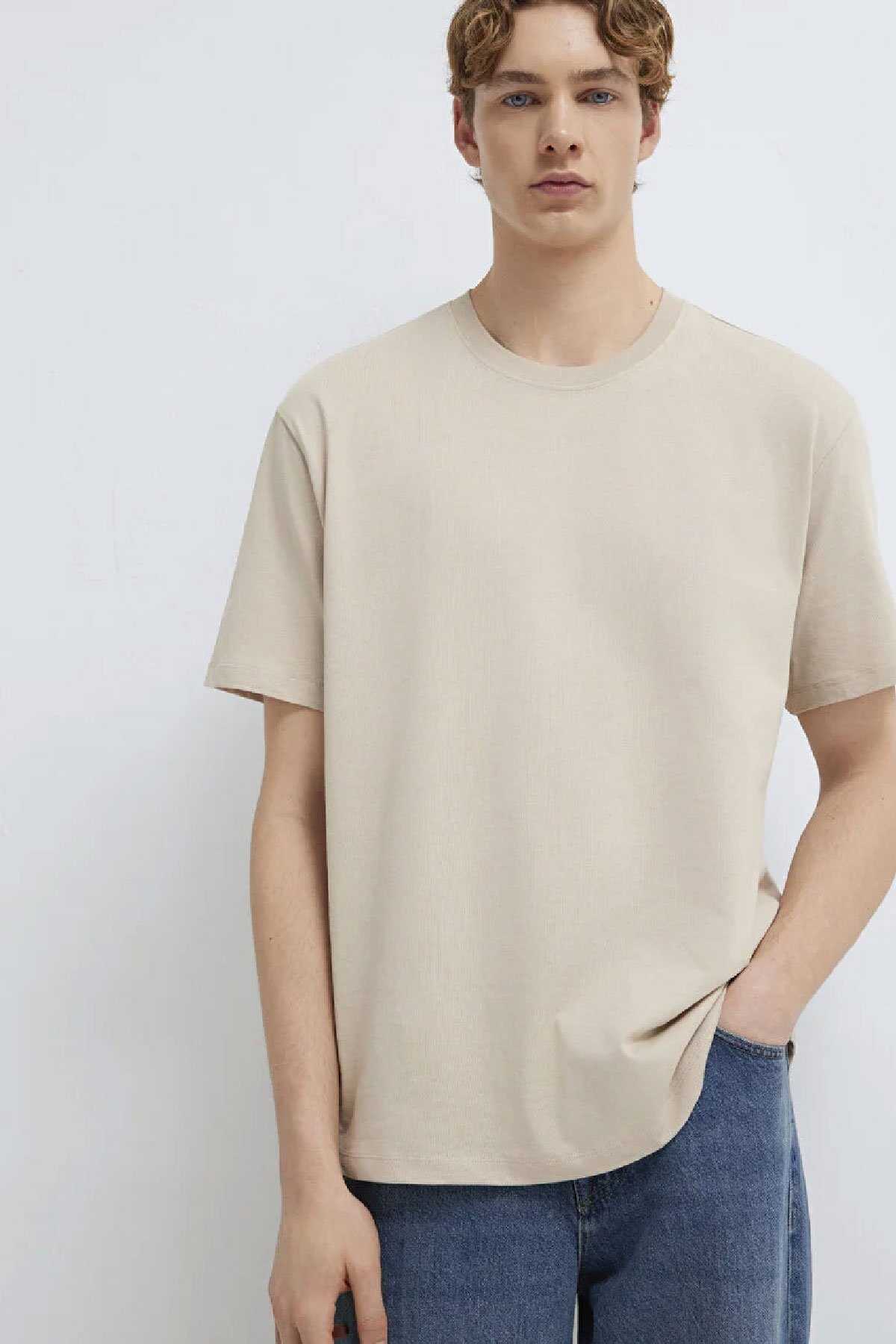 Bej Basic Tişört.Yüzde yüz pamuk loose fit rahat kesim tişört. Bisiklet yaka. Kısa kol.-Loose Fit Bol Rahat Kesim-%100 Pamuk-Manken Ölçüleri-Jean: Bel: 31 Boy: 32 Üst: L-Boy: 190 cm Bel: 77 cm Göğüs: 96 cm Kalça: 94 cm-Ürün Kodu: 066249-70004-Menşei: Türkiye
