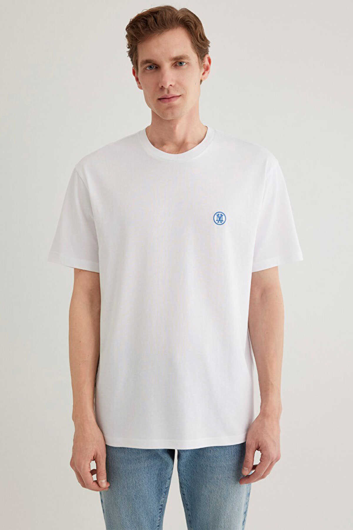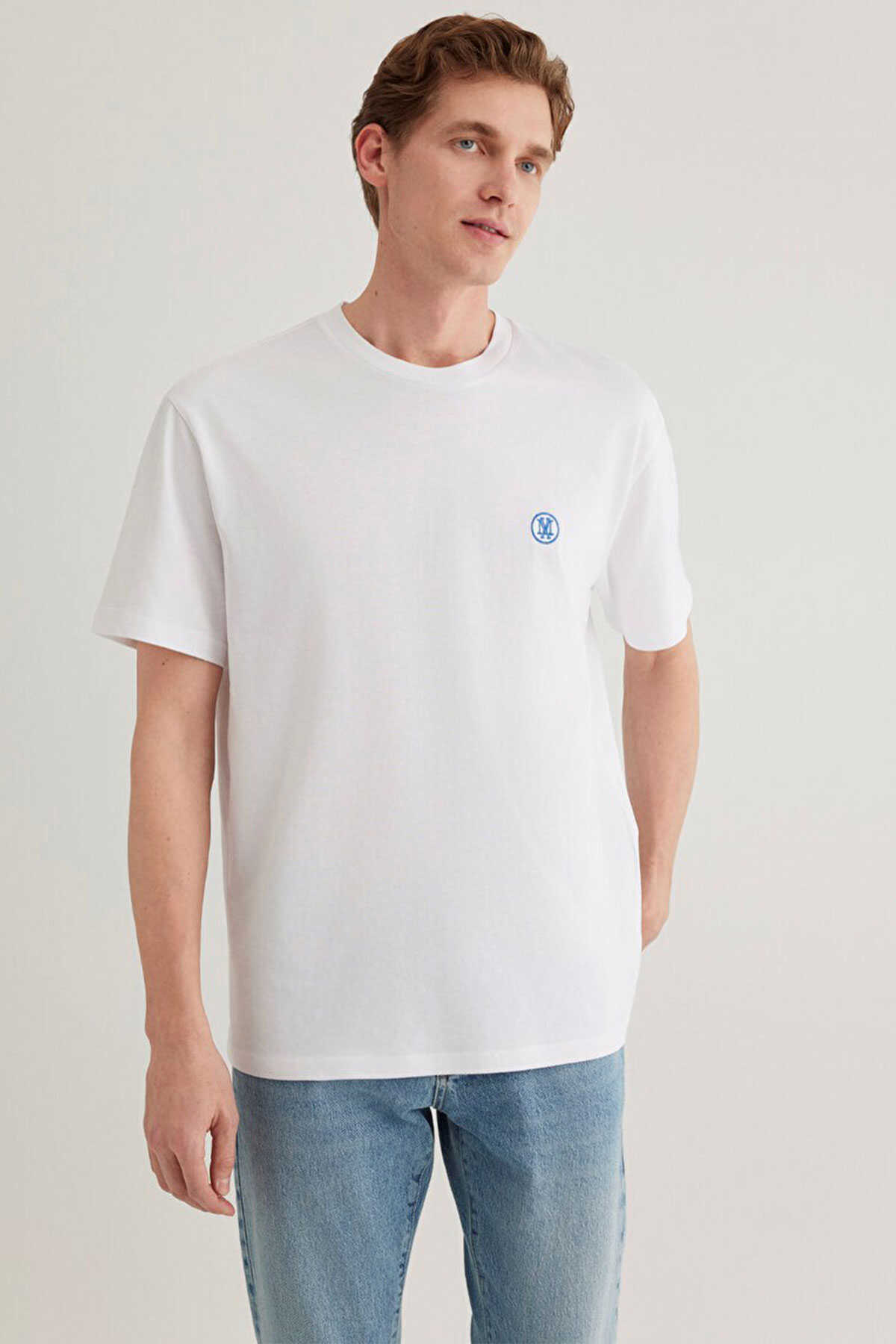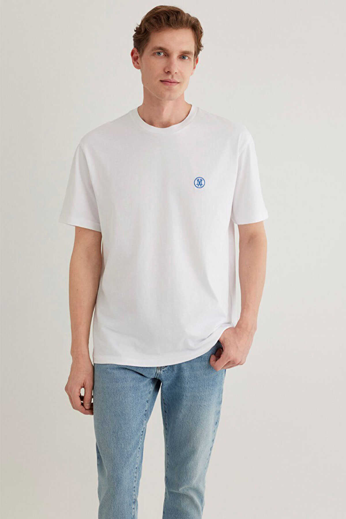 Yüzde yüz pamuk loose fit rahat kesim logo nakışlı tişört. -Bisiklet yaka. Kısa kol. Mavi Logo İşlemeli Beyaz Basic Tişört.-Ürün Kodu: 067074-620-Kumaş Bilgileri-%100 Pamuk-Manken Ölçüleri-Jean: Bel: 31 Boy: 32 Üst: S-Boy: 186 cm Bel: 76 cm Göğüs: 99 cm Kalça: 88 cm
