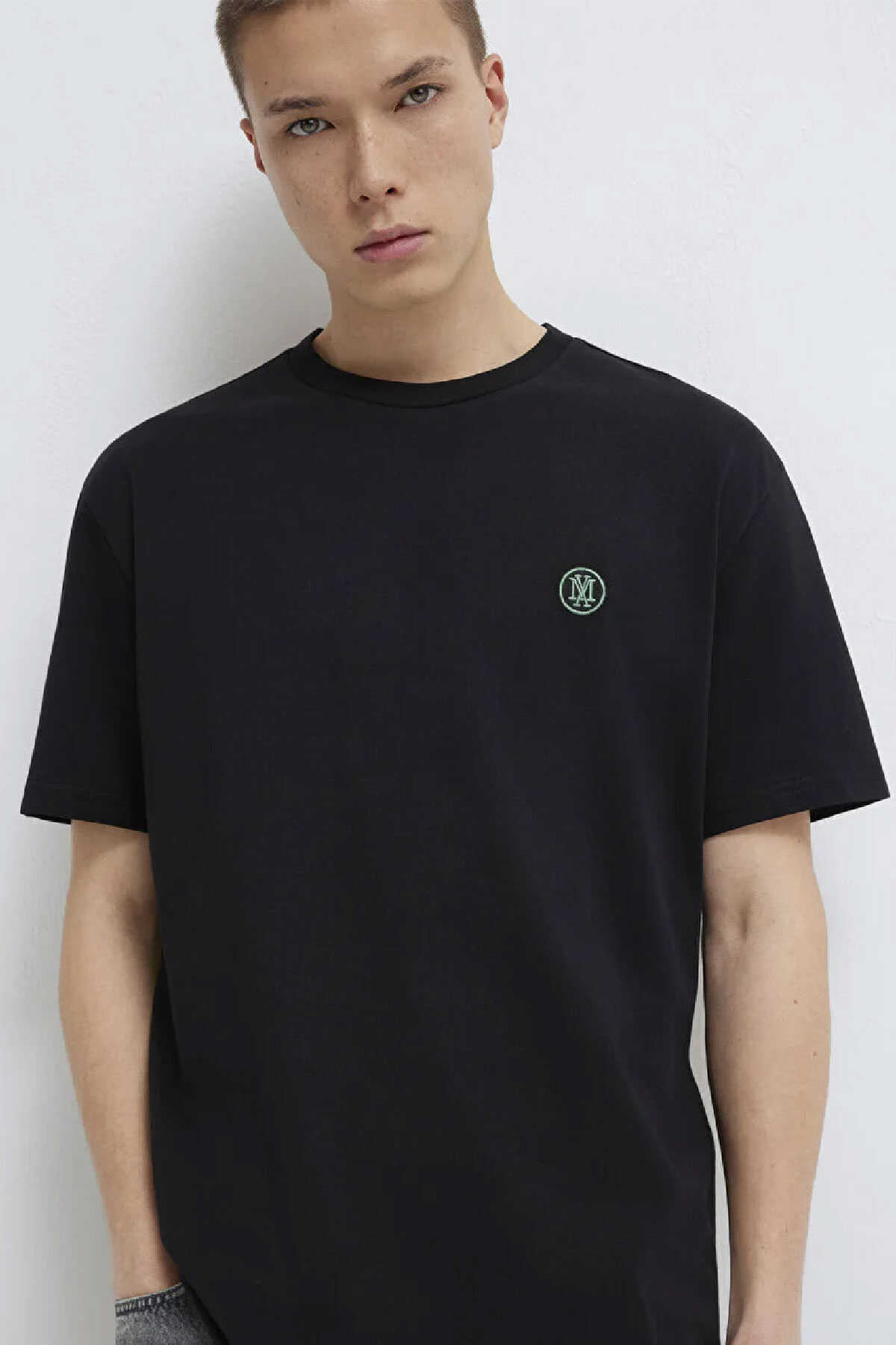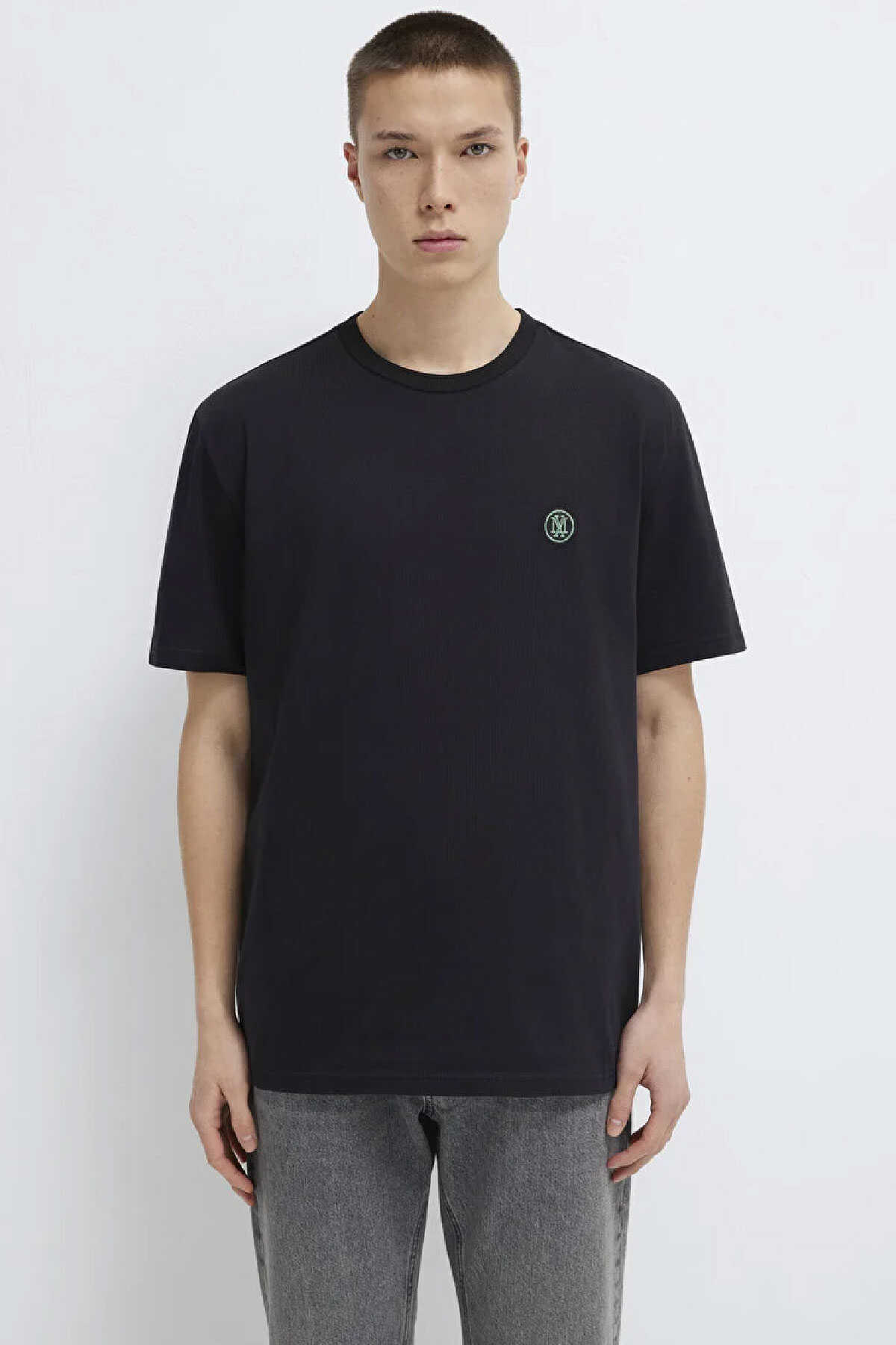 Yüzde yüz pamuk loose fit rahat kesim logo nakışlı tişört. -Bisiklet yaka. Kısa kol. Mavi Logo İşlemeli Siyah Basic Tişört.-Ürün Kodu: 067074-900-Kumaş Bilgileri-%100 Pamuk-Manken Ölçüleri-Jean: Bel: 31 Boy: 31 Üst: L-Boy: 189 cm Bel: 78 cm Göğüs: 94 cm Kalça: 88 cm